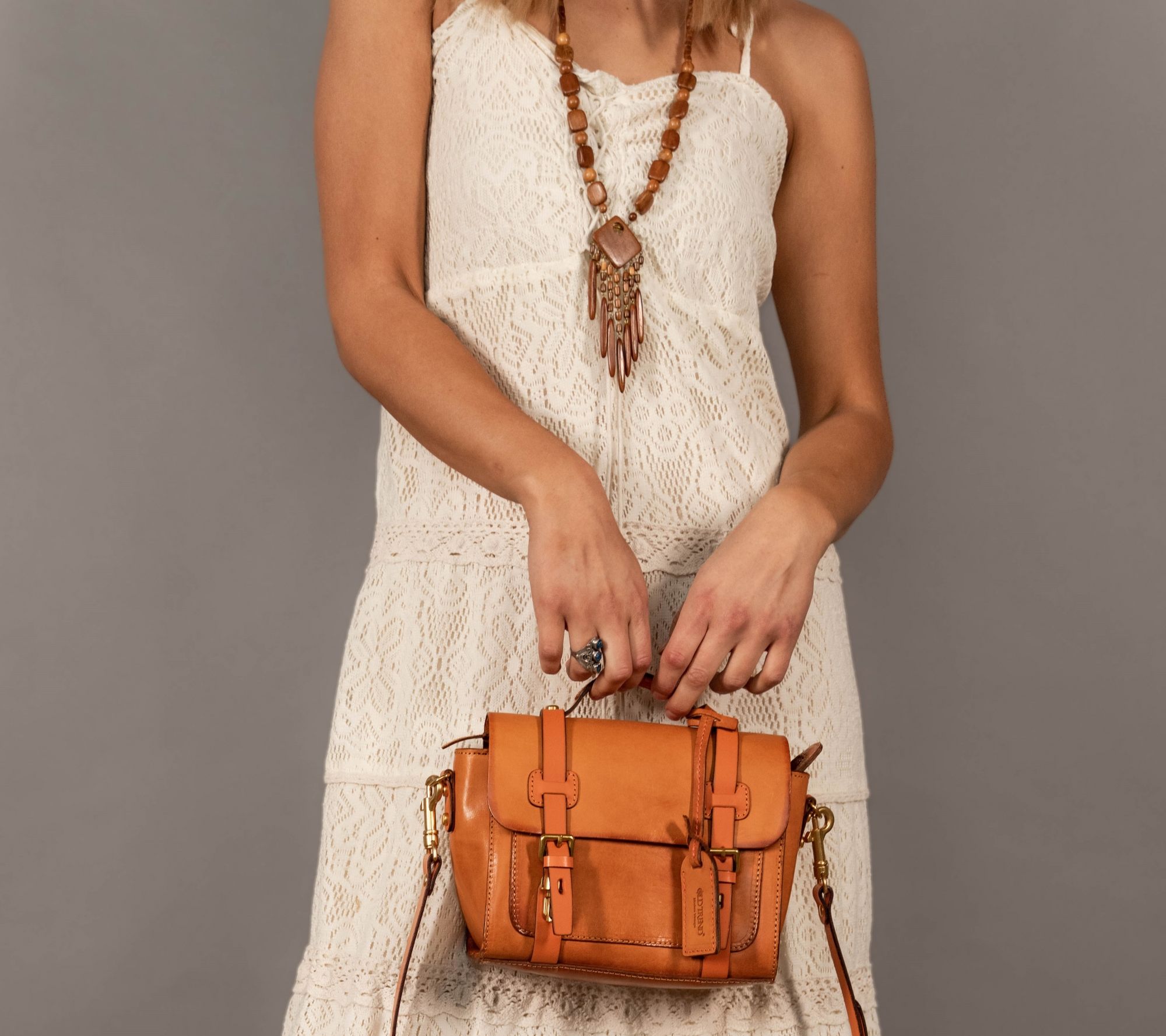 Whether you're heading to brunch or running errands, this Ficus Mini Leather Satchel offers just the right blend of sophistication and functionality. With its satchel silhouette and handy shoulder strap, you'll find it easy to switch up your look from day to night with effortless style. From Old Trend.