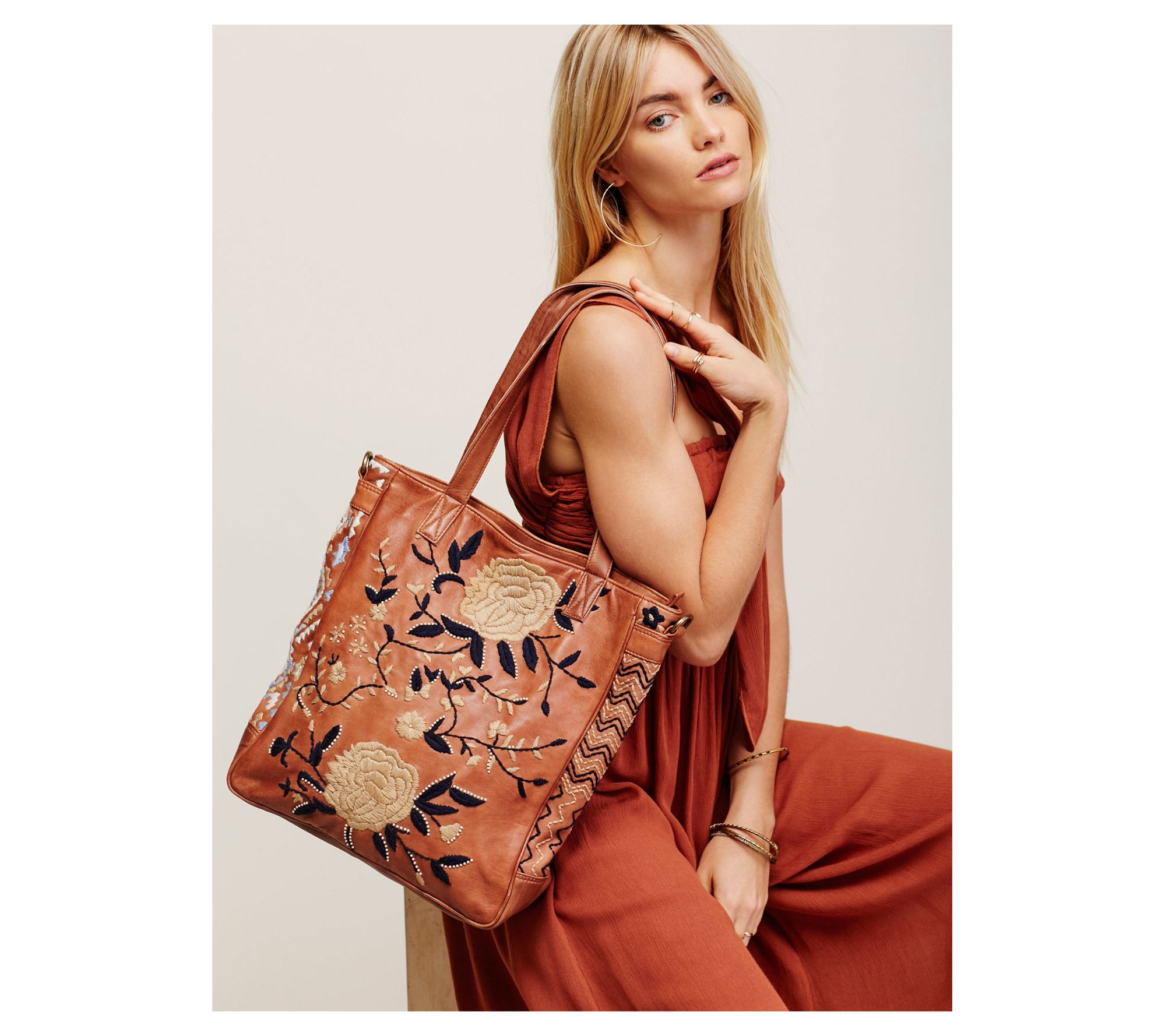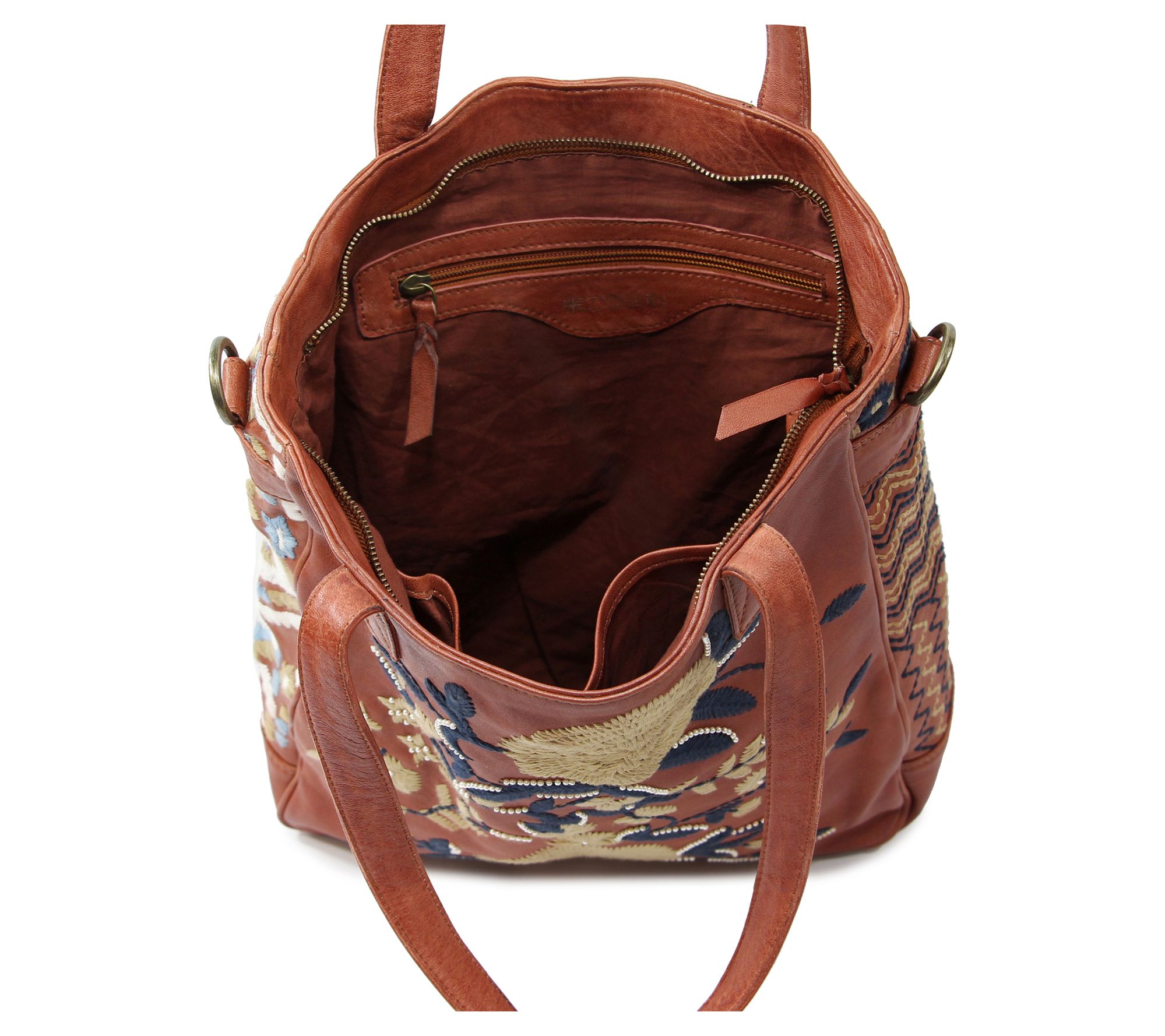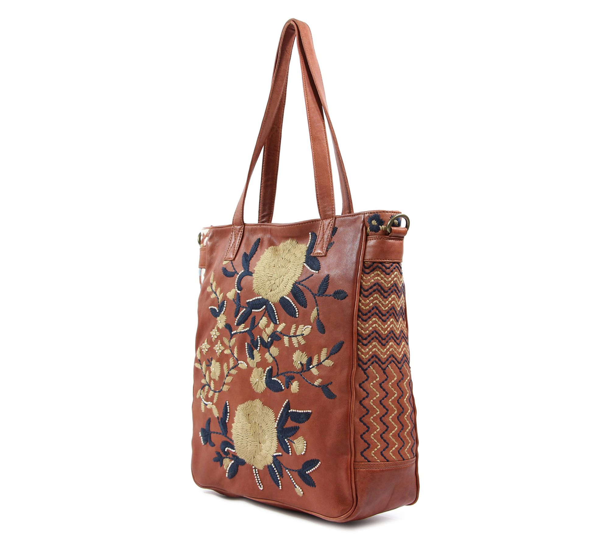Embrace a touch of artistry in your everyday with the Flora Soul embroidered leather tote, designed to carry your essentials in style whether you're heading to brunch or planning a weekend shopping trip. Beautiful embroidery lends a whimsical look, while soft leather and spacious interior offer practicality for busy days on the go. From Old Trend.