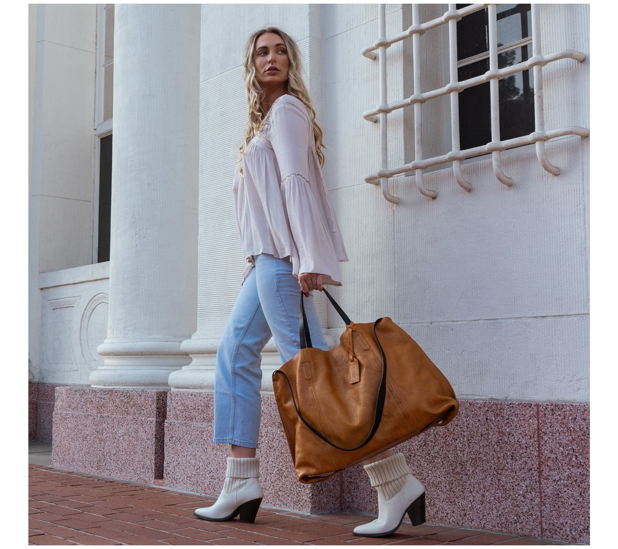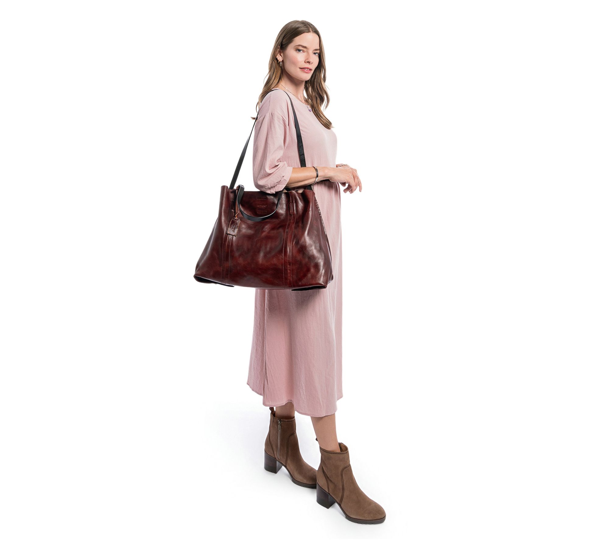 Whether you're running errands, commuting to work, or meeting friends after hours, this chic leather tote keeps everything organized and easy to access. Multiple detachable compartments and interior pockets help you stay on top of your busy day, while brass hardware and generous handles add a fashionable touch to your look. From Old Trend.