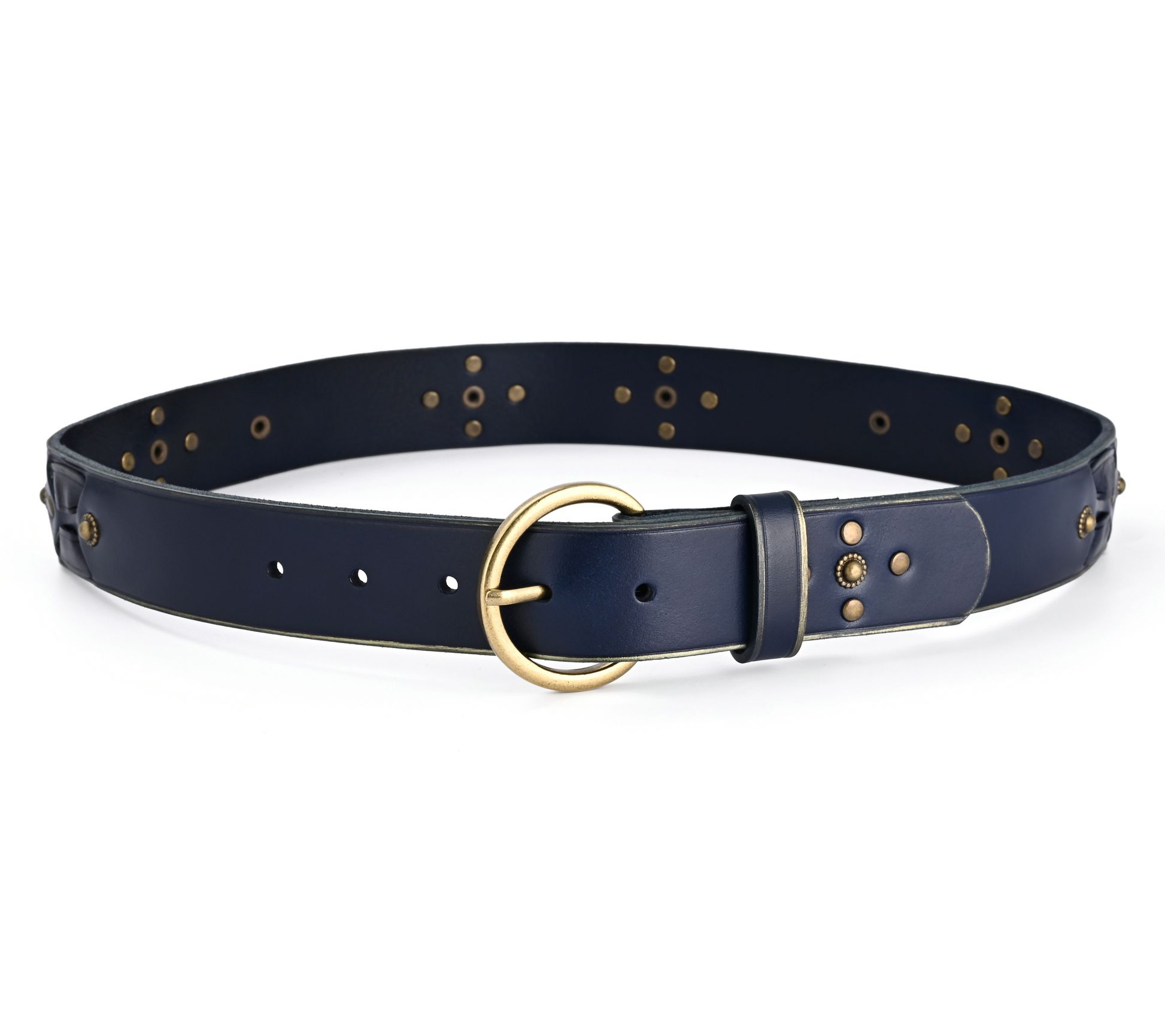 Vintage charm meets modern sophistication with this Gia leather belt. Imagine draping this finely stitched accessory around your favorite jeans or dress, instantly adding a touch of elegance with its antiqued-look stud details. Perfect for any occasion, it’s designed to elevate your wardrobe effortlessly. From Raw Text.