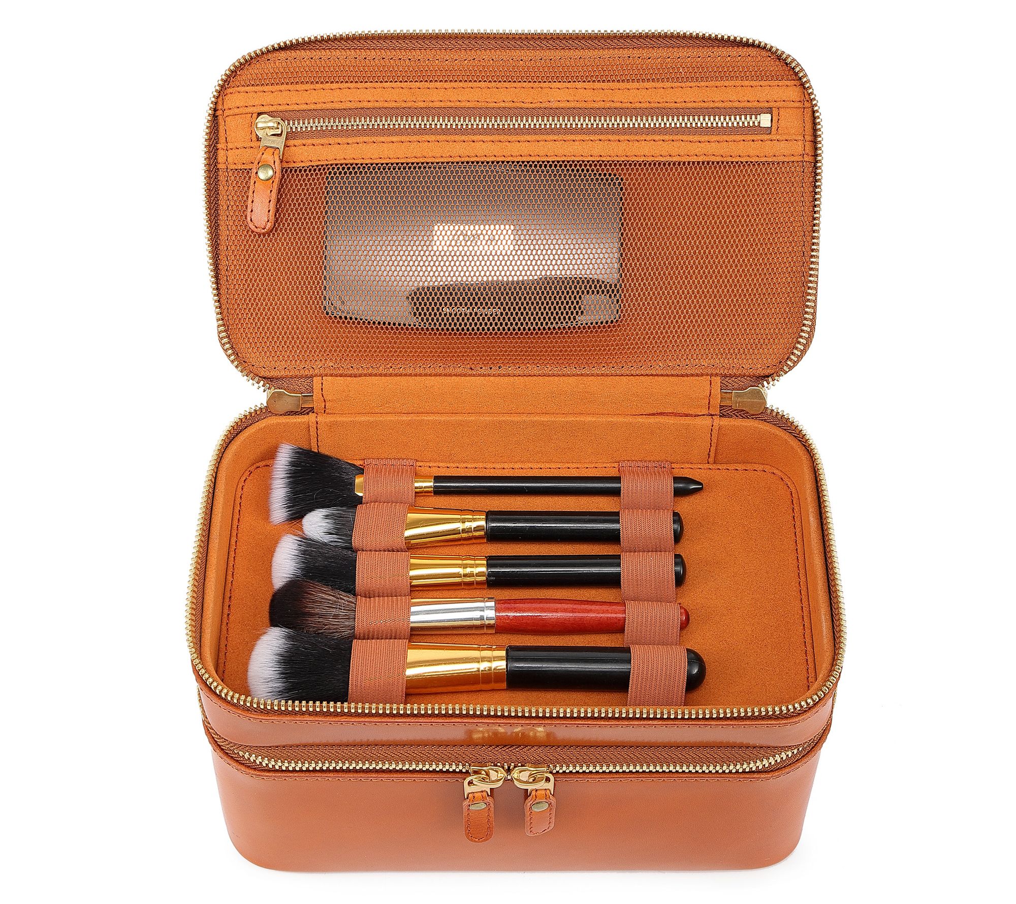 • Velvety lining, adjustable hook-and-loop dividers, five adjustable compartments, ten elastic straps, mesh pocket, three brush sleeves