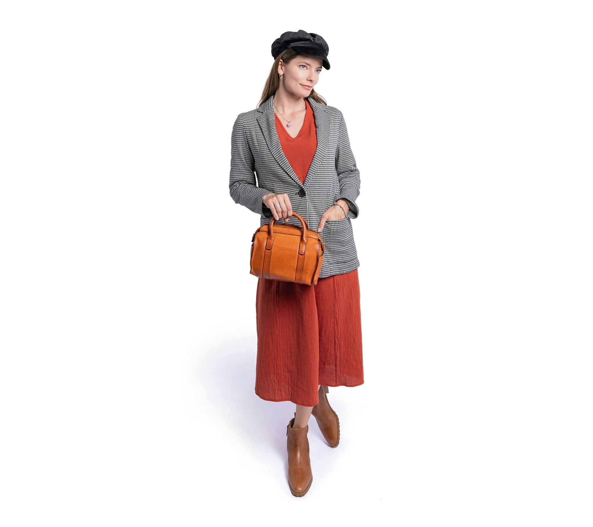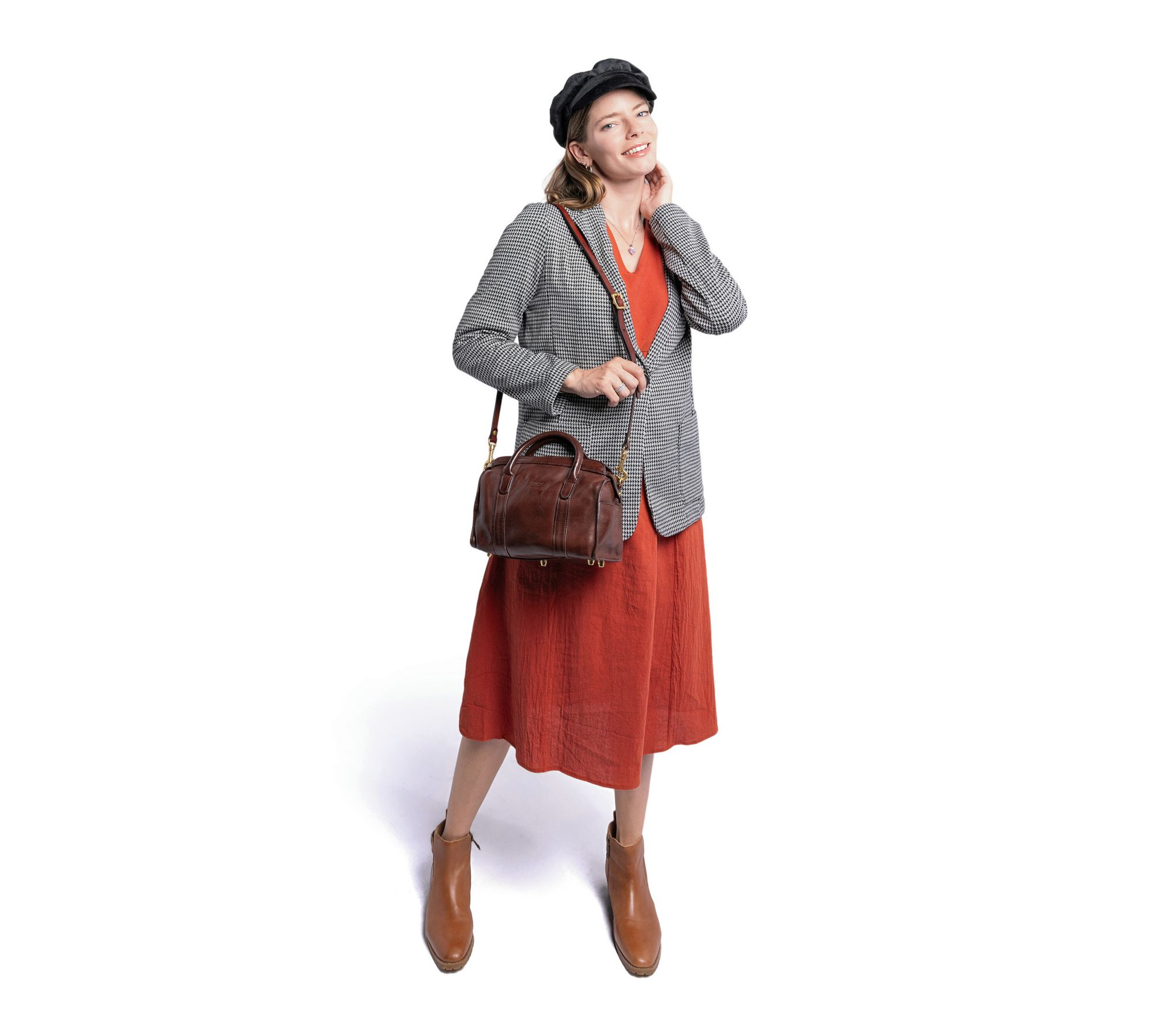 Versatility meets elegance in this Larkspur leather crossbody bag, ready to take you from coffee dates to busy commutes. With double handles for a polished handheld look and a detachable strap for easy shoulder wear, it adapts effortlessly to your day. Multiple pockets, protective metal feet, and a roomy interior help keep essentials organized and within reach. From Old Trend.
