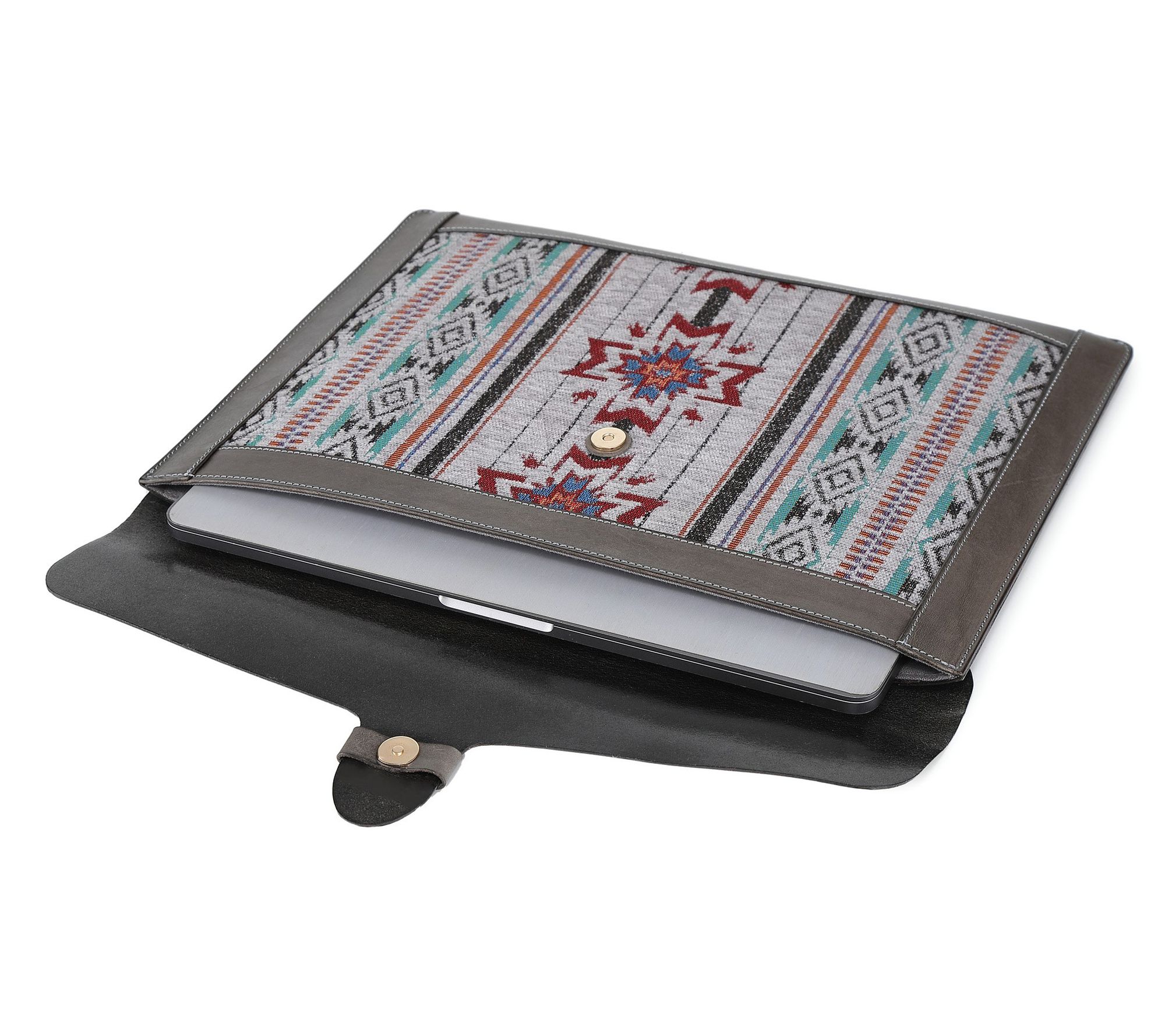 Bring sophistication to your everyday routine by safeguarding your laptop in this leather sleeve, where artisan details and boho-inspired accents meet practical function. A slim design makes it easy to slip into your favorite tote, while the soft microfiber interior cushions your device during commutes, client meetings, or creative days at a local cafe. From OLD TREND.