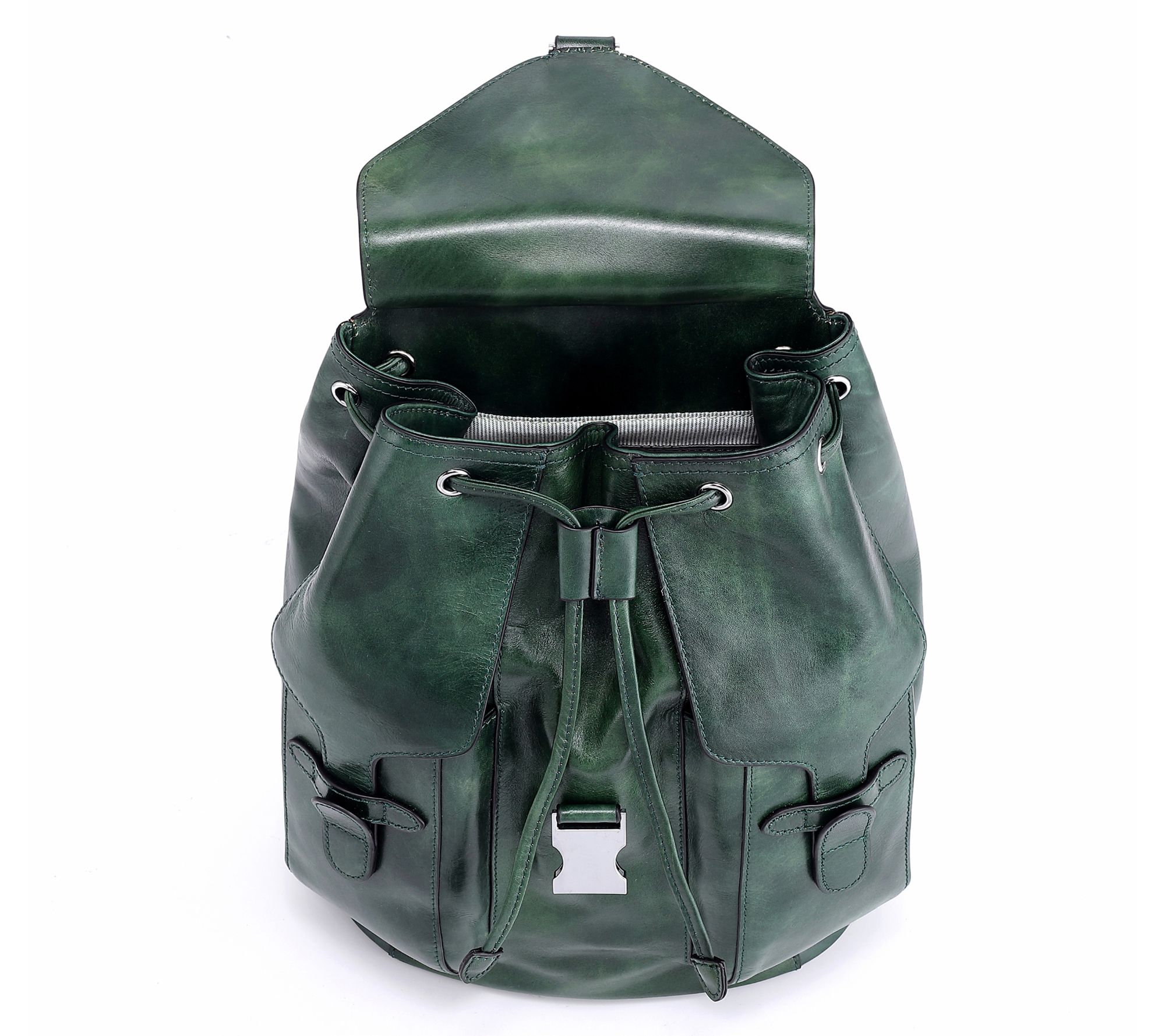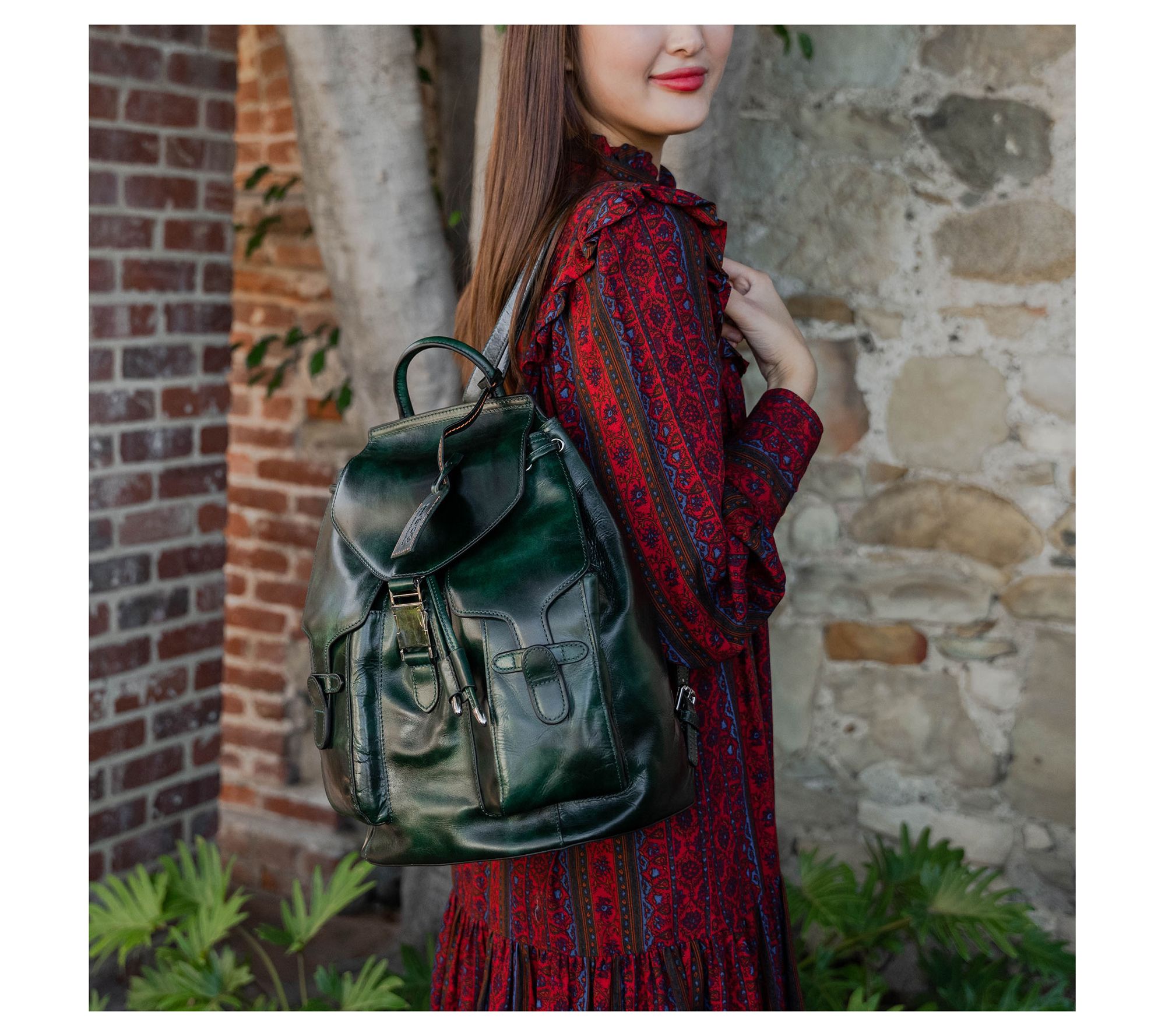 A stroll through the city or a trek to work, the Rock Valley leather backpack is designed to complement every journey. The elegant fold-over flap and practical buckle closure make it a stylish companion for both urban landscapes and casual outings. Its beautifully crafted lambskin leather provides a premium touch, while various pockets keep your essentials perfectly organized and within reach. Enjoy versatility and style in one chic package. From Old Trend.