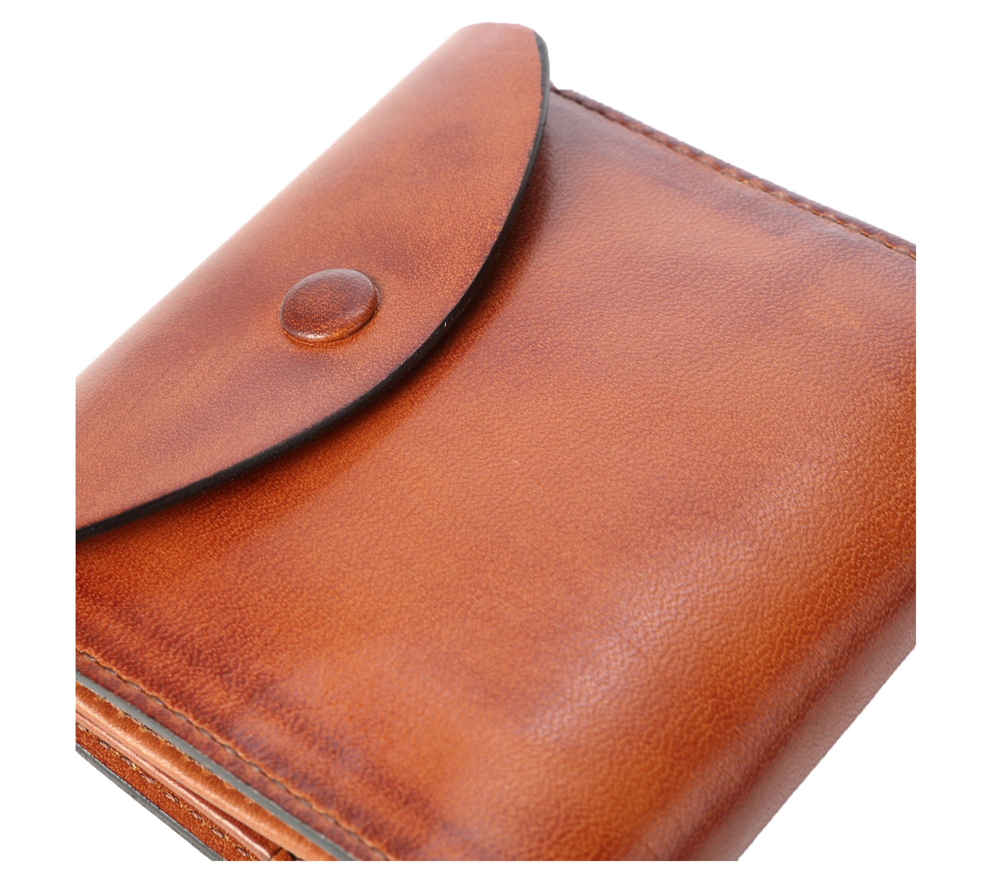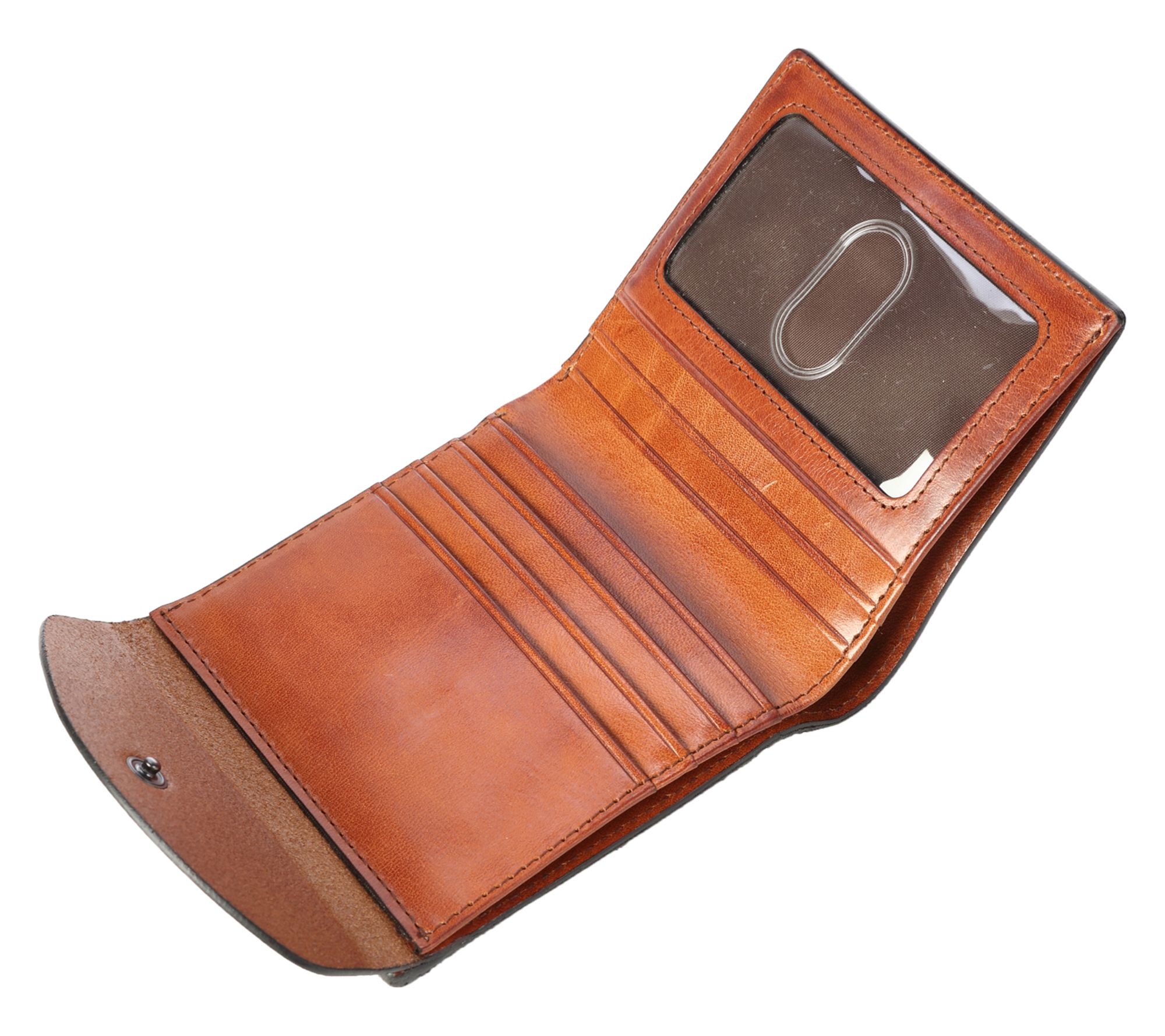 Ever feel like you're searching for your cards at the most inconvenient time? This leather wallet brings rustic charm and reliable organization to your everyday routine, with a coin-snap closure that makes access effortless. Six card slots, an ID window, and a bill compartment keep your essentials secure, whether it's a coffee run or a night out. From Old Trend.