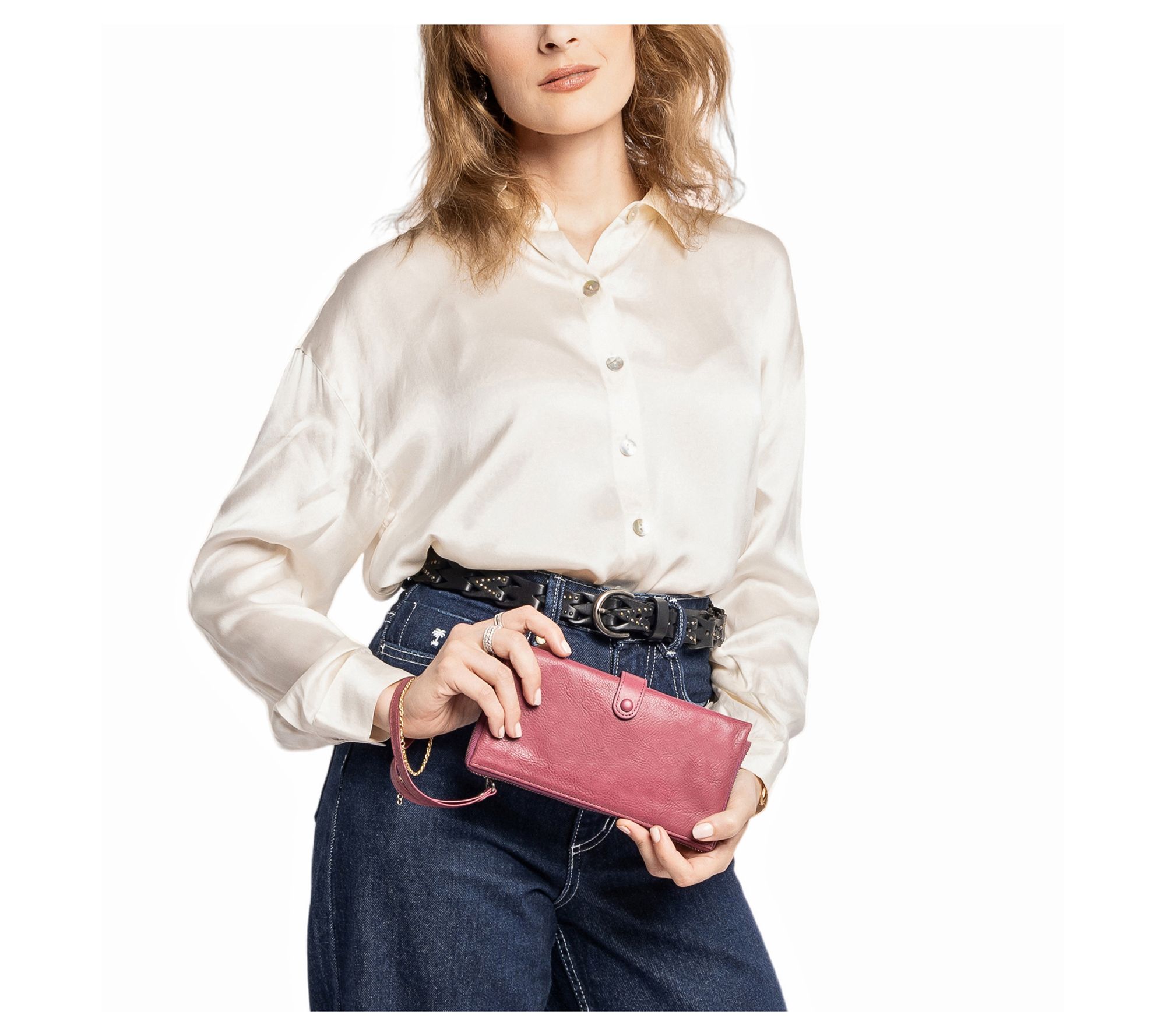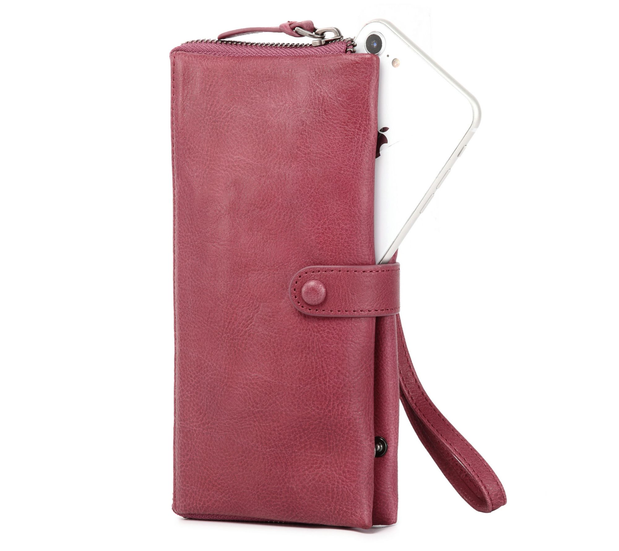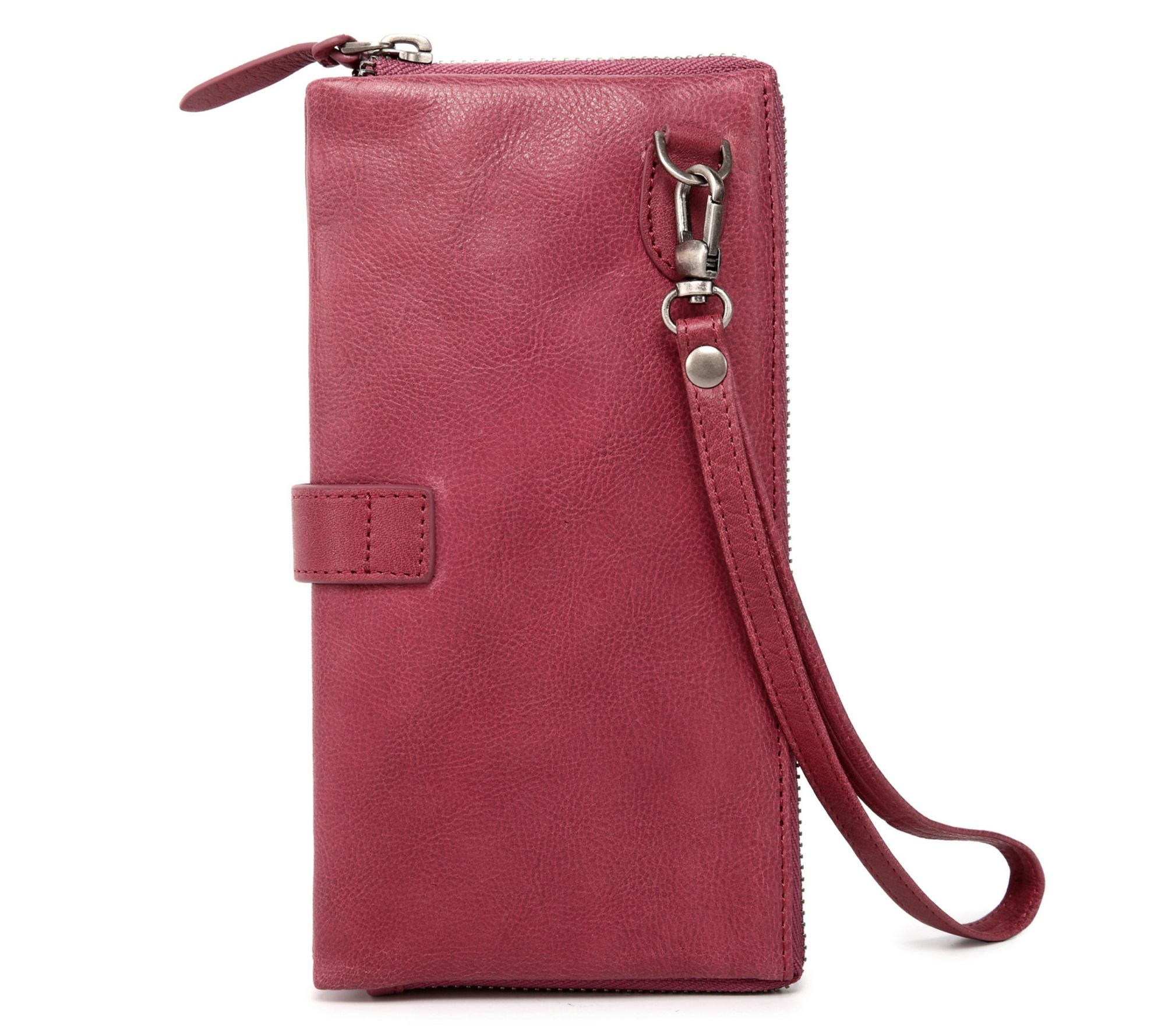 Whether you're running errands or heading out for a night with friends, this leather wristlet wallet brings stylish organization in a compact design. Keep cards, cash, and essentials close at hand, while the snap closure secures your valuables with ease. From Old Trend.