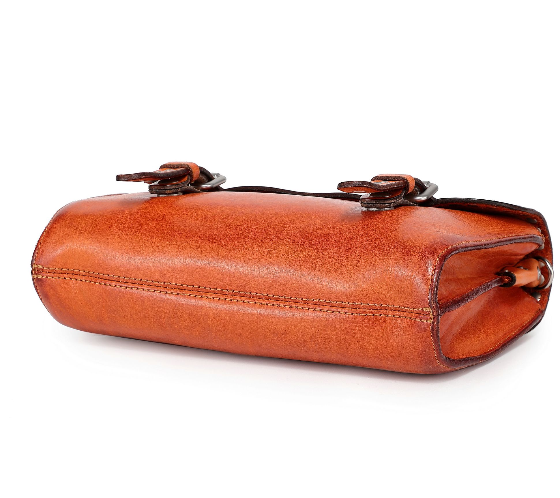 • Magnetic snap closure with decorative buckle detail; detachable, adjustable single strap