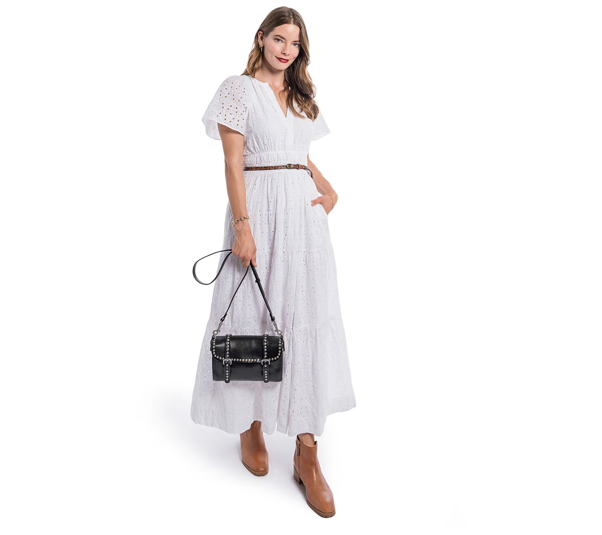 From running errands downtown to catching up with friends over coffee, the Soul Stud Leather Convertible Crossbody adds a splash of bold character to every look. Gleaming stud details and smooth leather give this handbag an edge, while convertible straps offer styling versatility to carry it just the way you like. From Old Trend.
