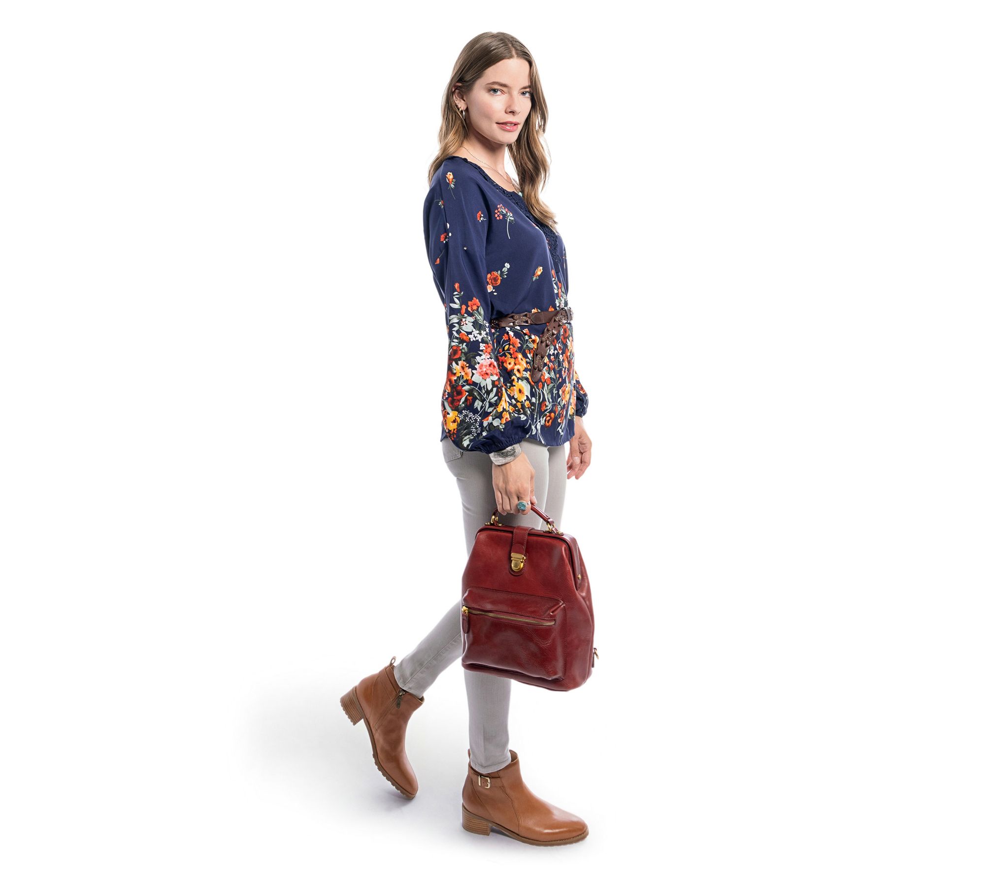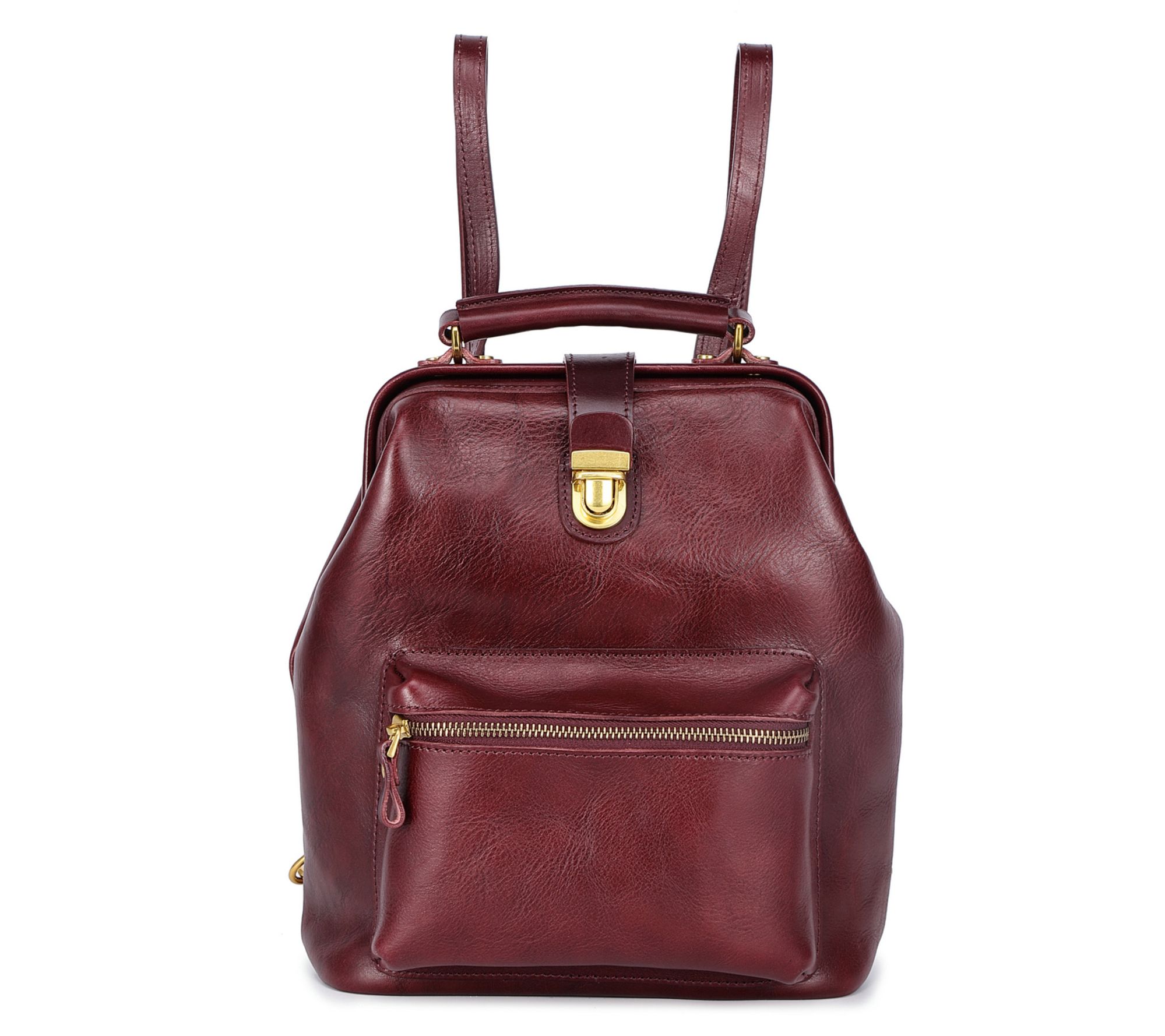 Whether you're heading to a coffee meeting or exploring the city, this leather top handle doctor backpack delivers timeless style and hands-free convenience. Versatile and easy to carry with a structured silhouette, it keeps essentials organized while turning daily errands into a fashion statement. From Old Trend.