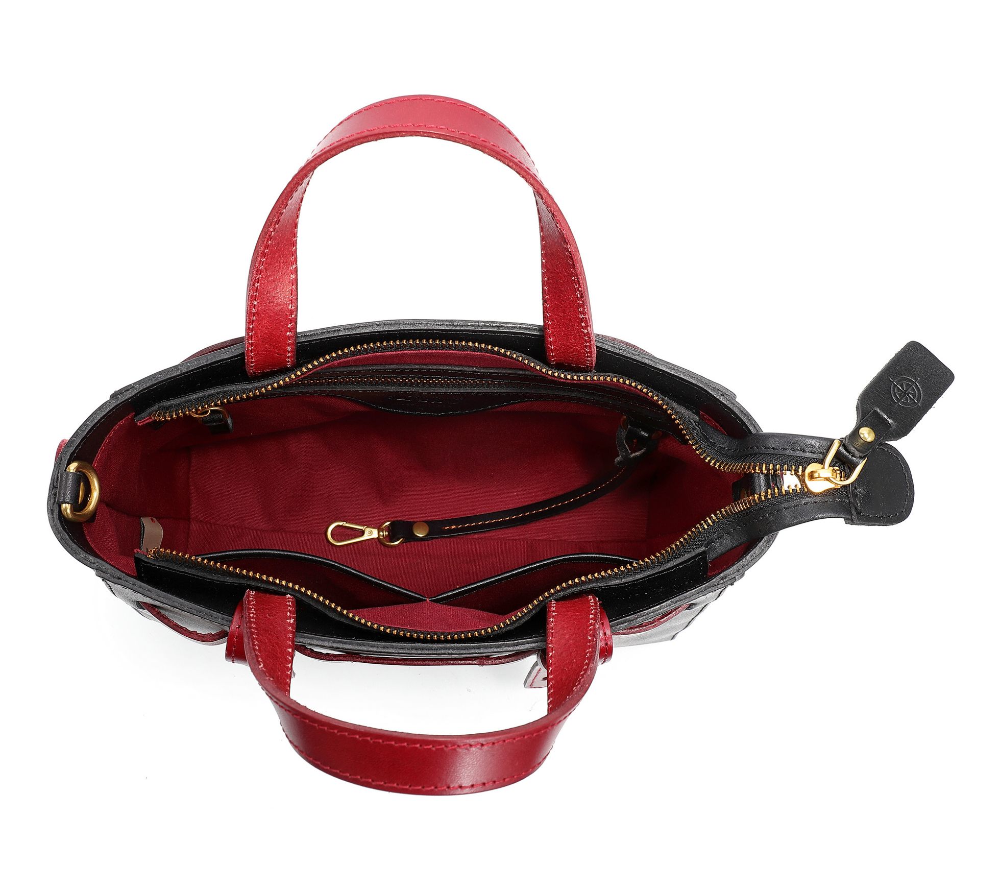 • Double handles; zip top closure; detachable, adjustable single strap