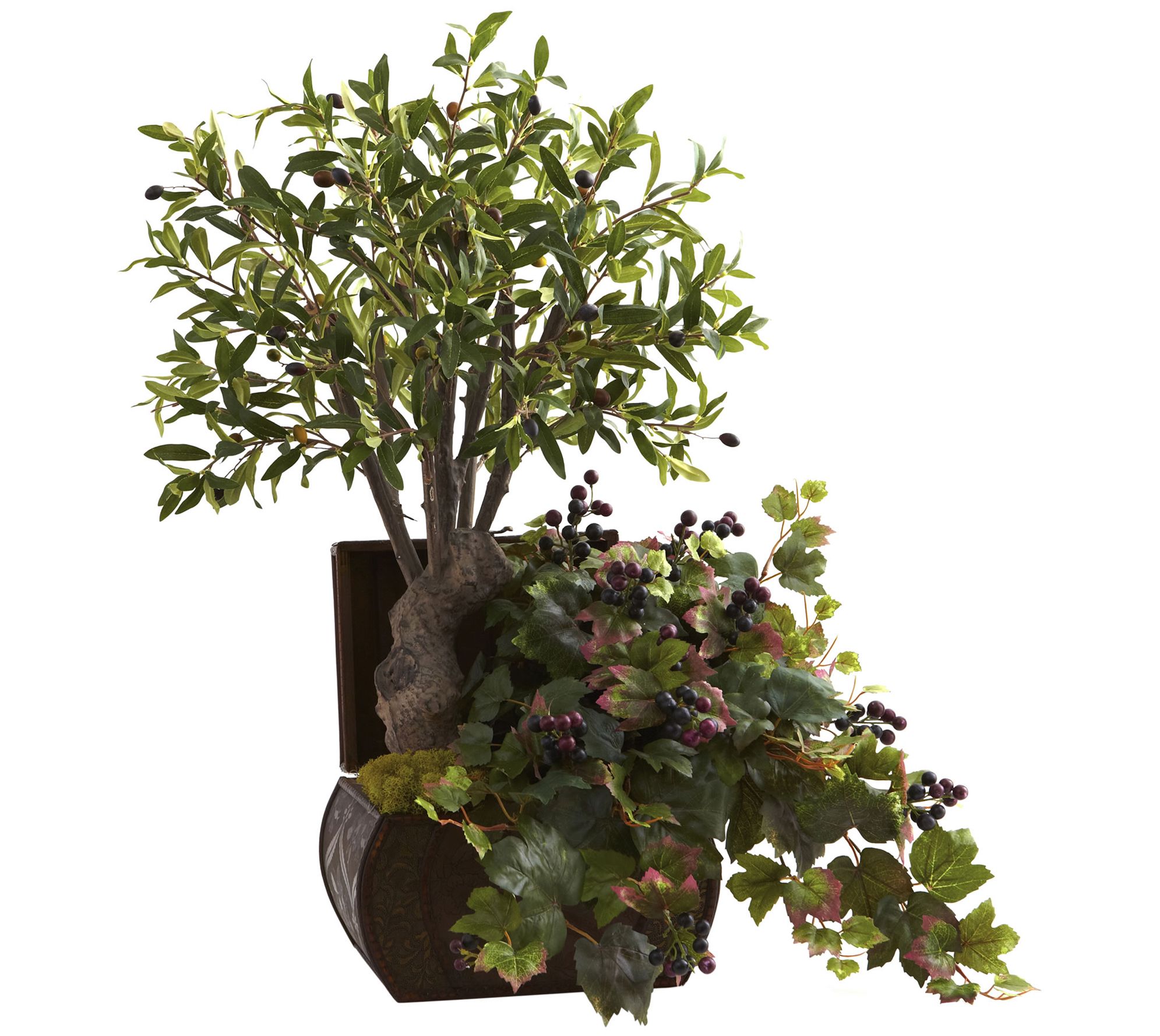 Olive Tree & Grape Leaf w/Chest by Nearly Natural