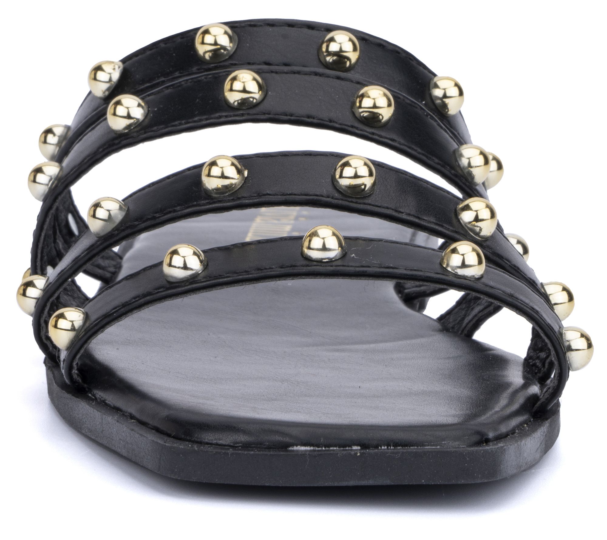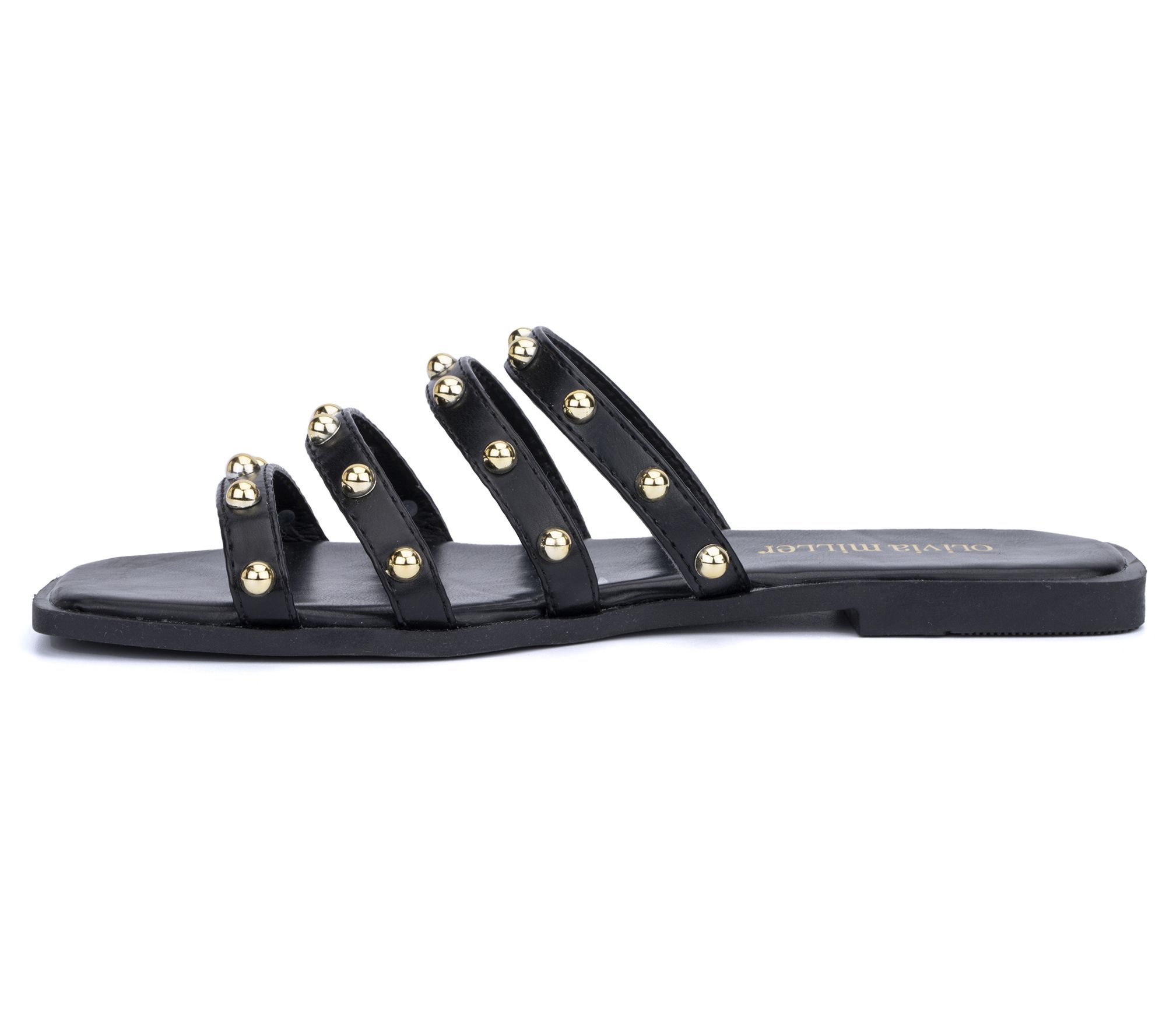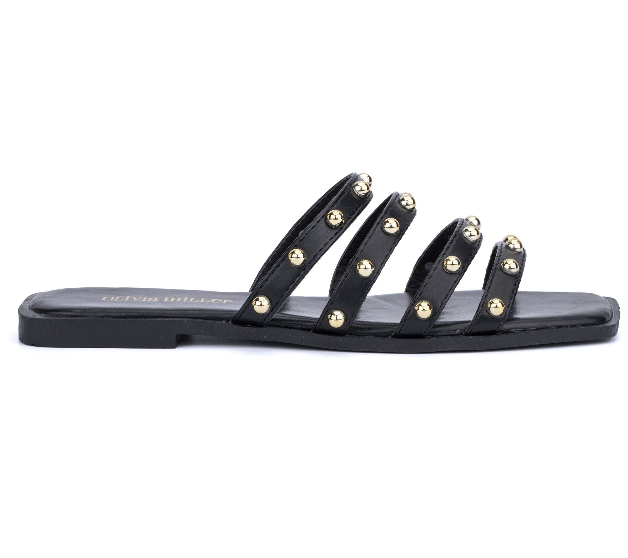 Spruce up your steps with these shimmering studded sandals that slip on in a flash so they won't slow you down. And their open-toe strappy design shows off your fresh new pedicure. From Olivia Miller.