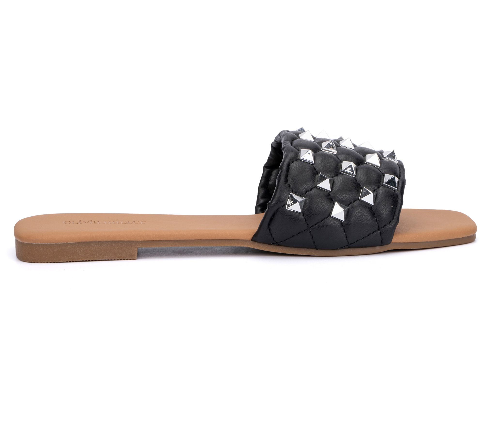 Put a little sparkle in your step with these slip-on sandals adorned with a bevy of shimmering studs. From Olivia Miller.