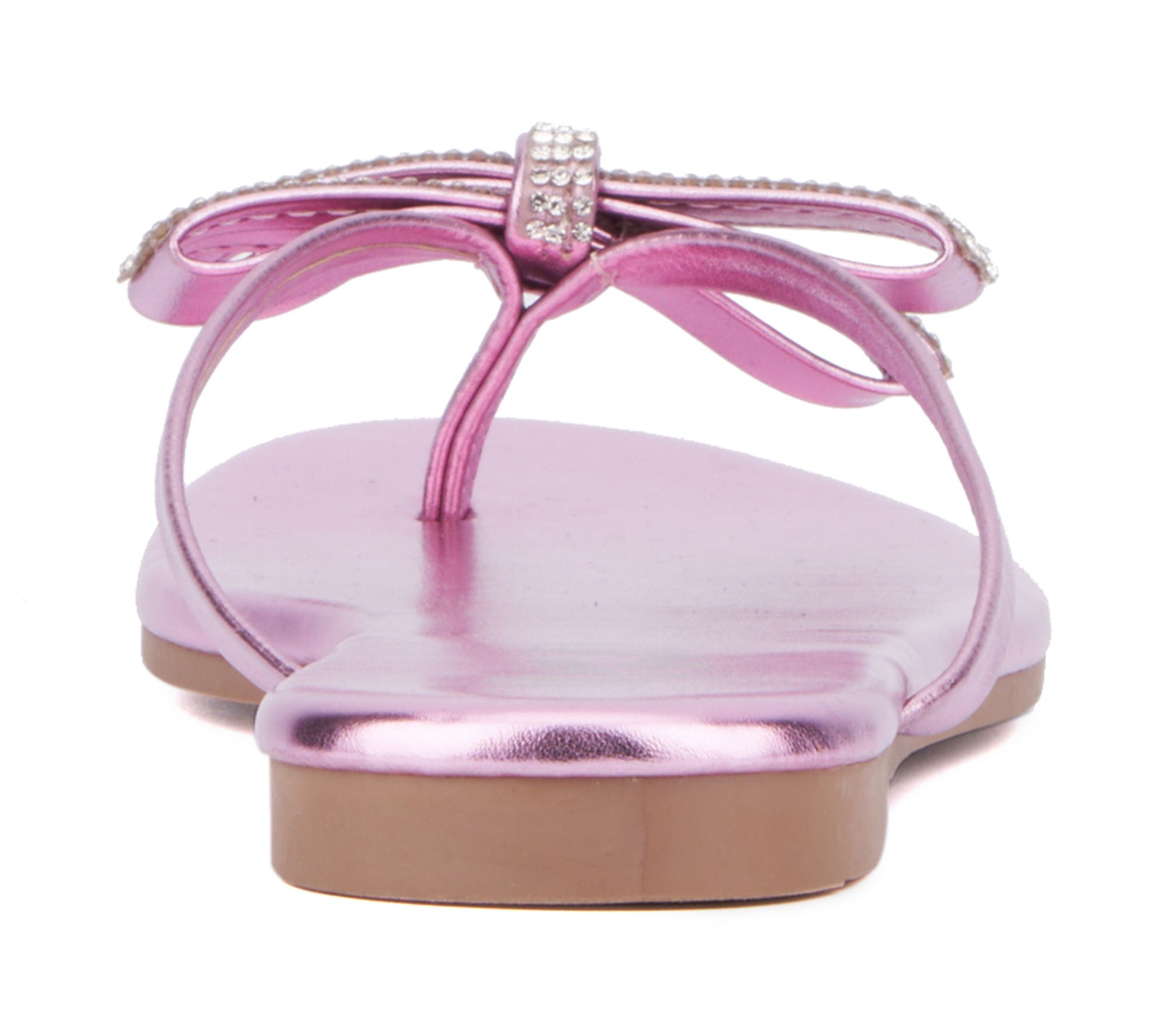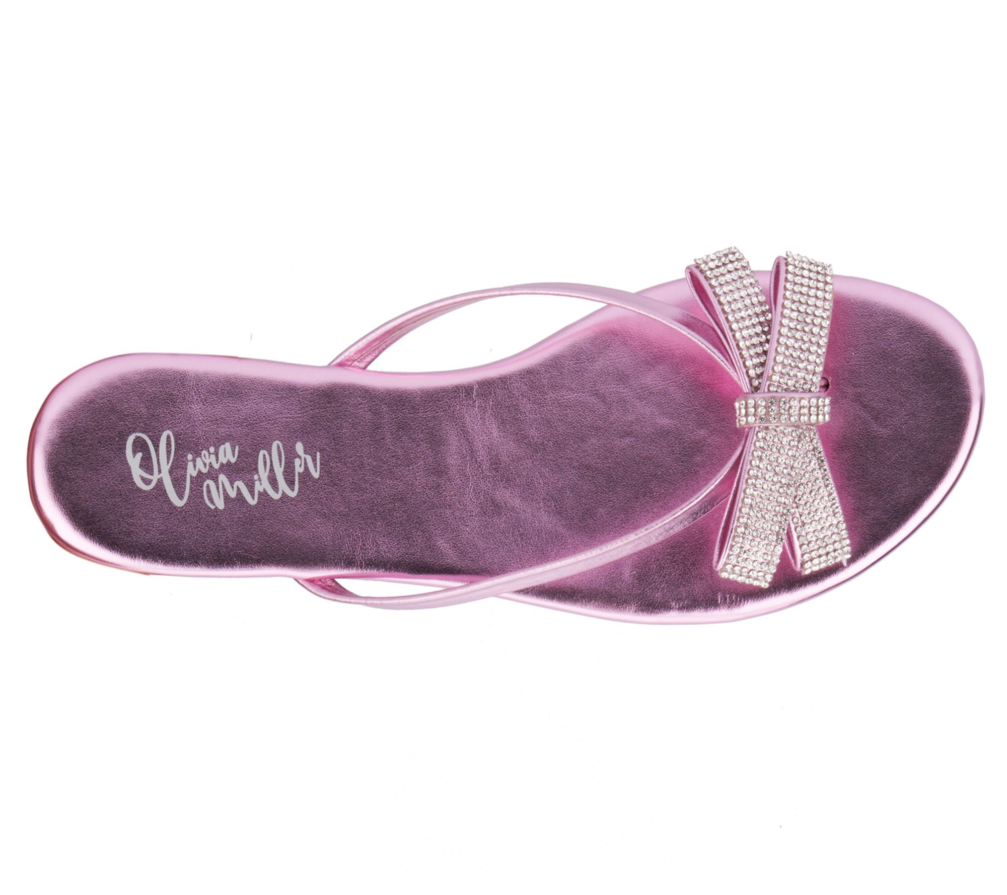 Embrace the sweet simplicity of summer with the Frosting flat sandal. Featuring charming bow detailing, this slide sandal effortlessly pairs with everything from your favorite denim shorts to breezy skirts and sundresses, making it a versatile addition to your warm-weather wardrobe. From Olivia Miller.