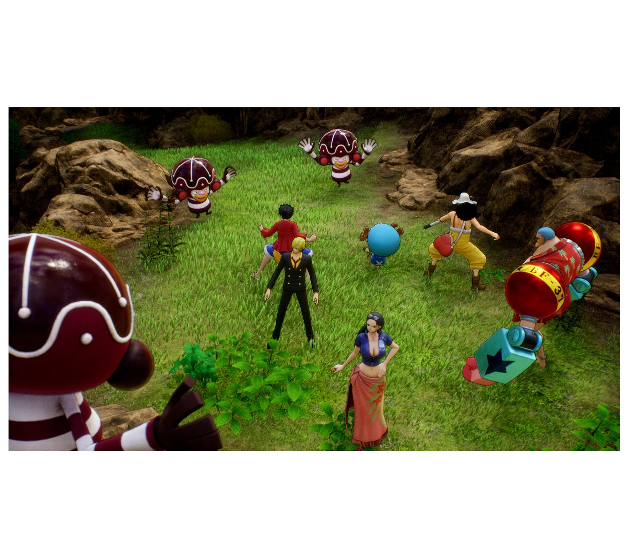In One Piece Odyssey, in the midst of their latest ocean voyage, the Straw Hat Pirates saw their ship swallowed by a mighty storm. Shipwrecked, the crew members wash ashore on the mysterious island of Waford -- one that is blessed with natural gifts and protected by a ring of storms all around.