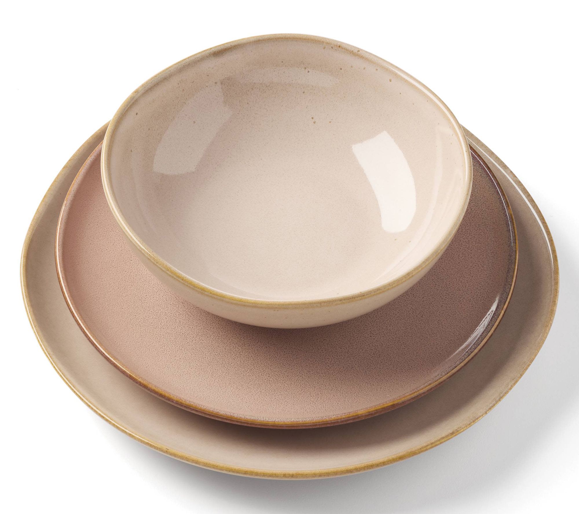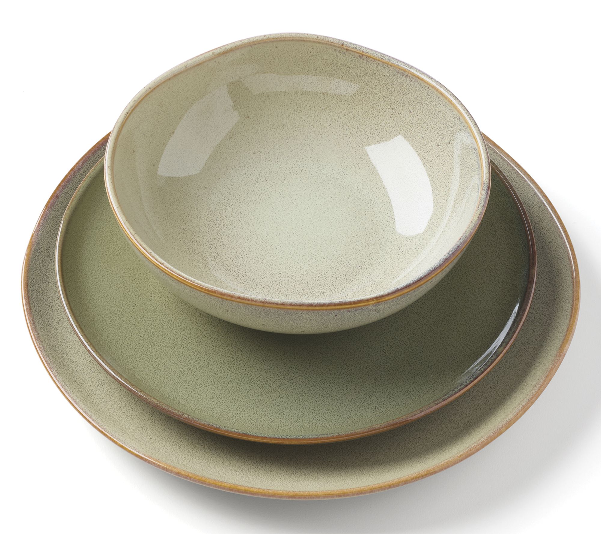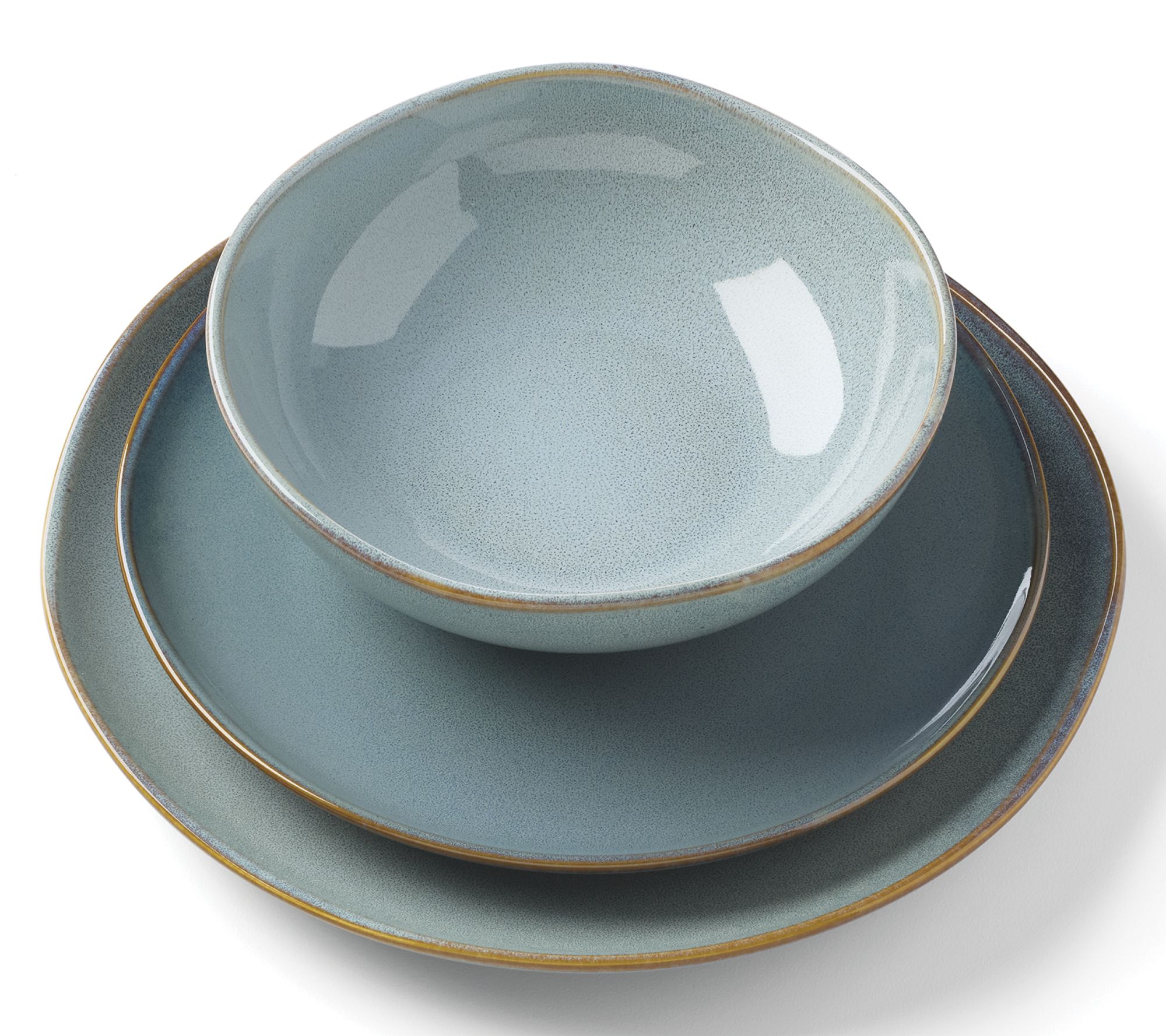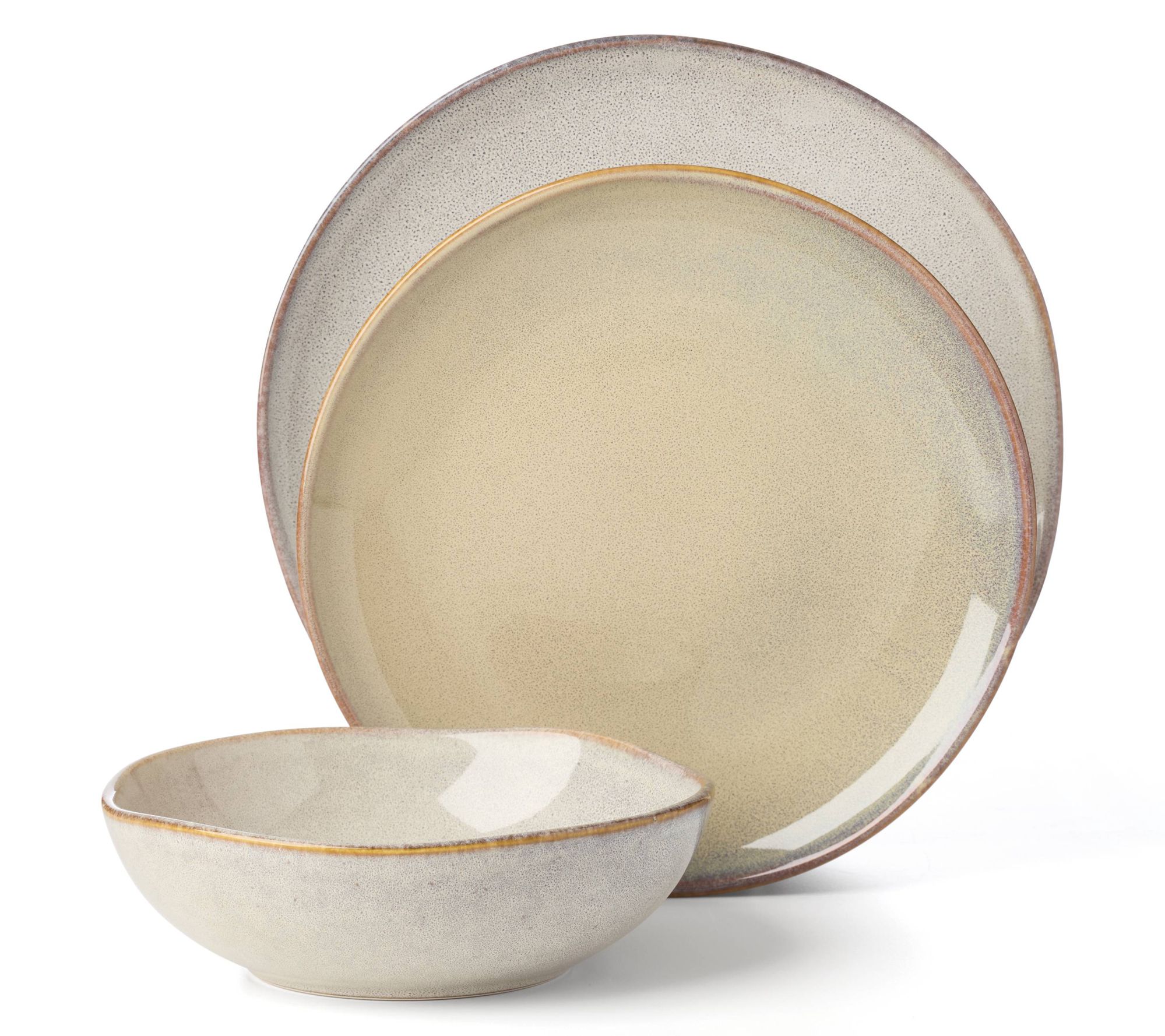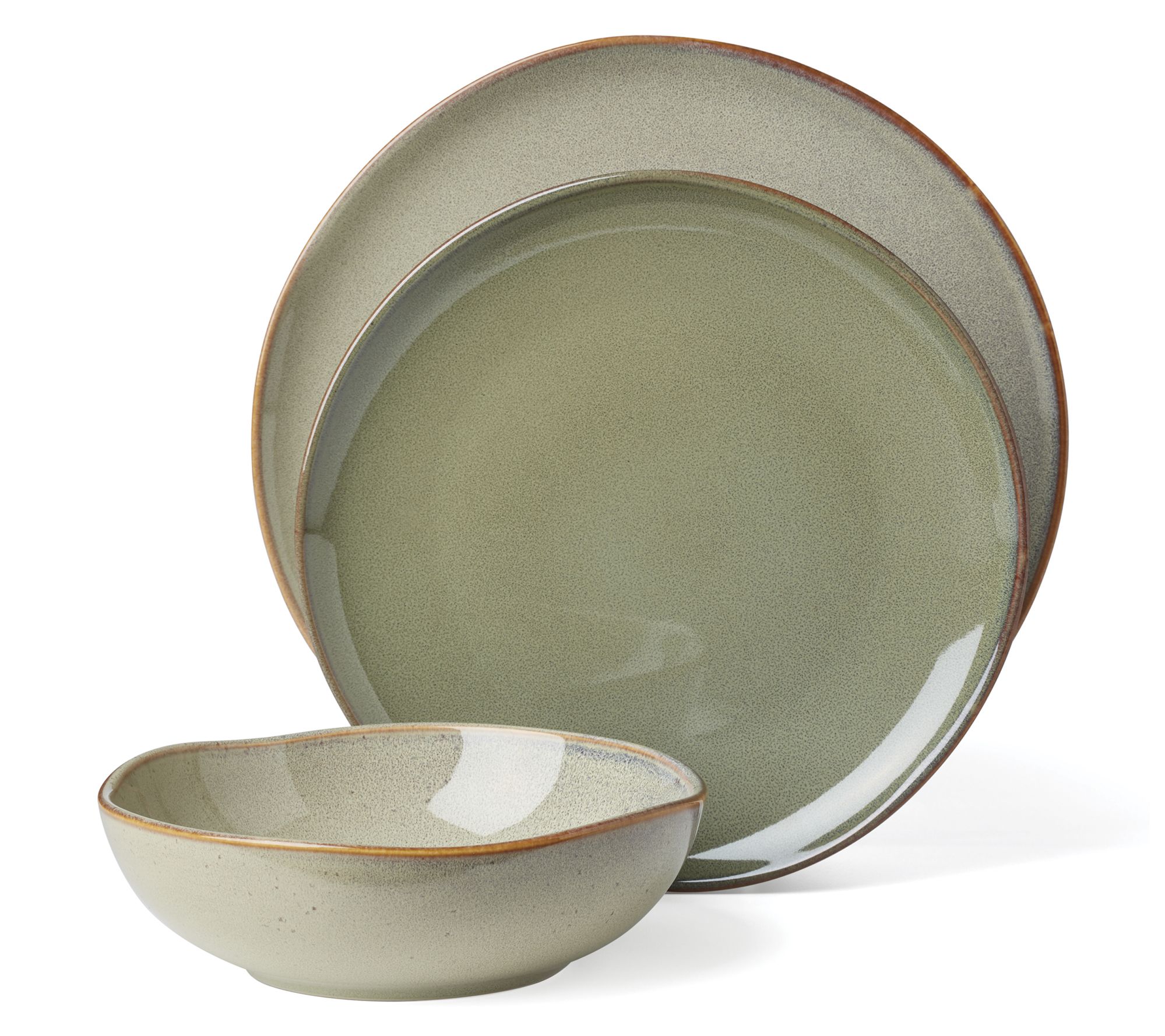 Experience the serene and tranquil vibe of the Oneida Organic Shades 12-piece dinnerware set, perfect for both casual family meals and special gatherings. This beautifully glazed stoneware set, featuring an earthy palette, adds a touch of natural elegance to your table. From Oneida.