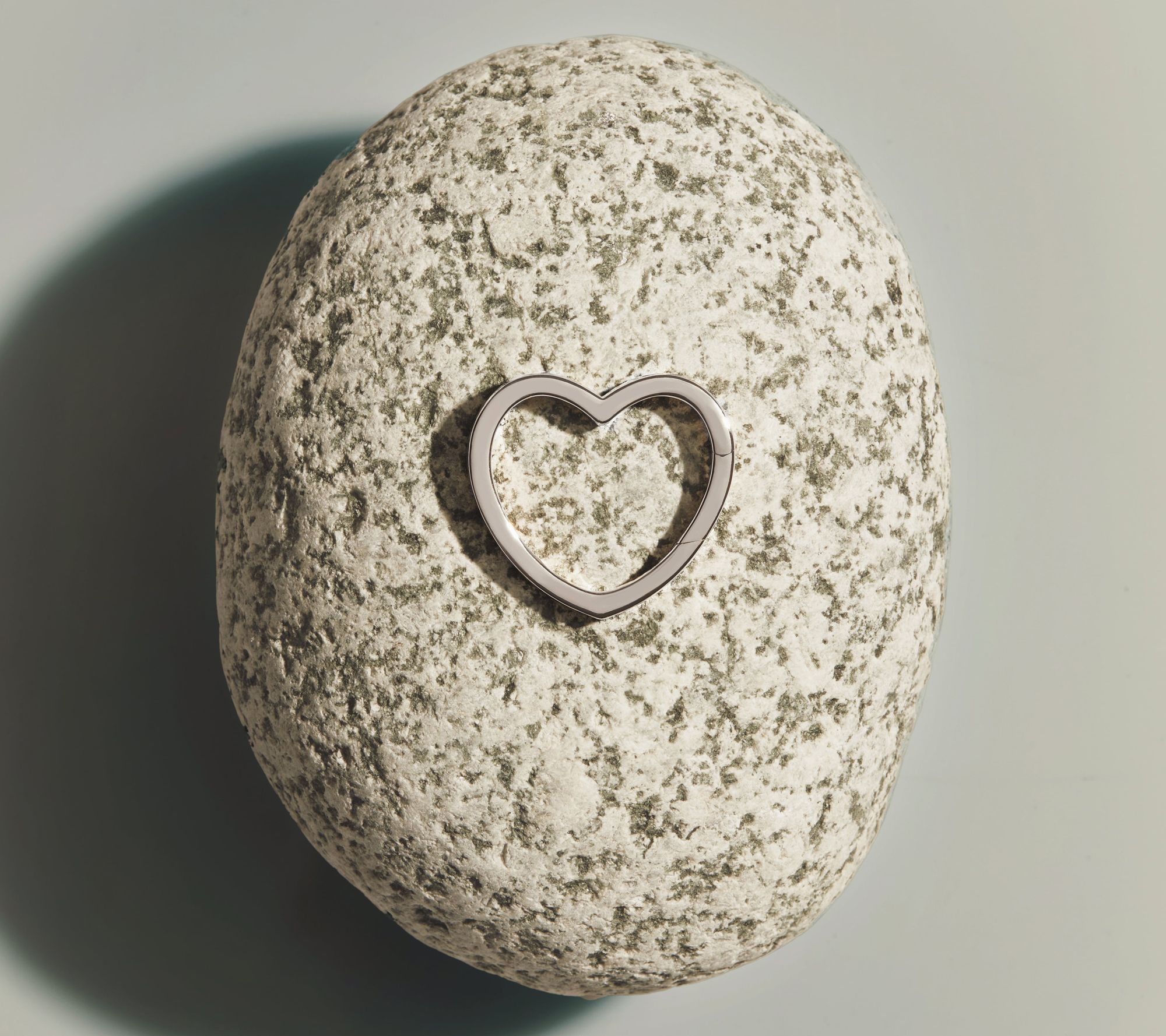• Charm holder; heart silhouette; seamless spring mechanism; stackable and modular design