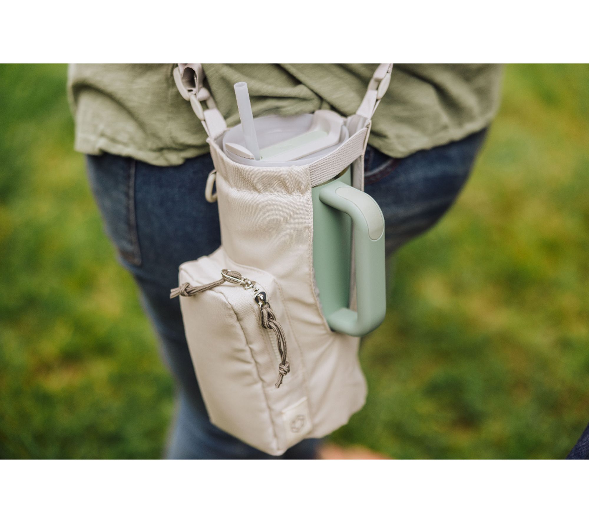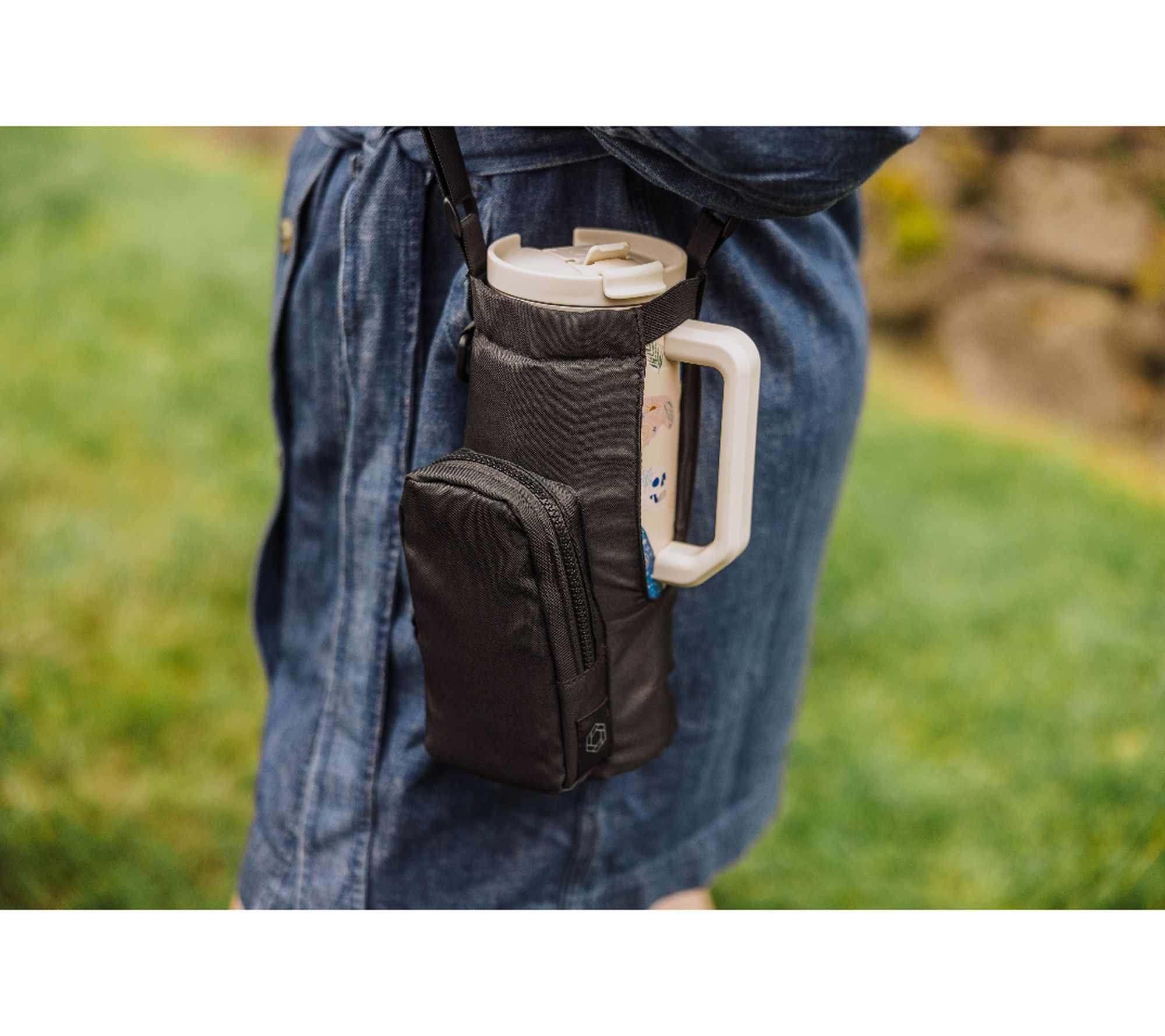Whether you're heading to the park, running errands, or exploring a festival, this crossbody bag keeps your favorite 40-oz tumbler and daily essentials close at hand. The zippered front pocket offers quick access to your phone, keys, or cards, while the adjustable shoulder strap ensures a comfortable fit for any adventure. From Oniva.