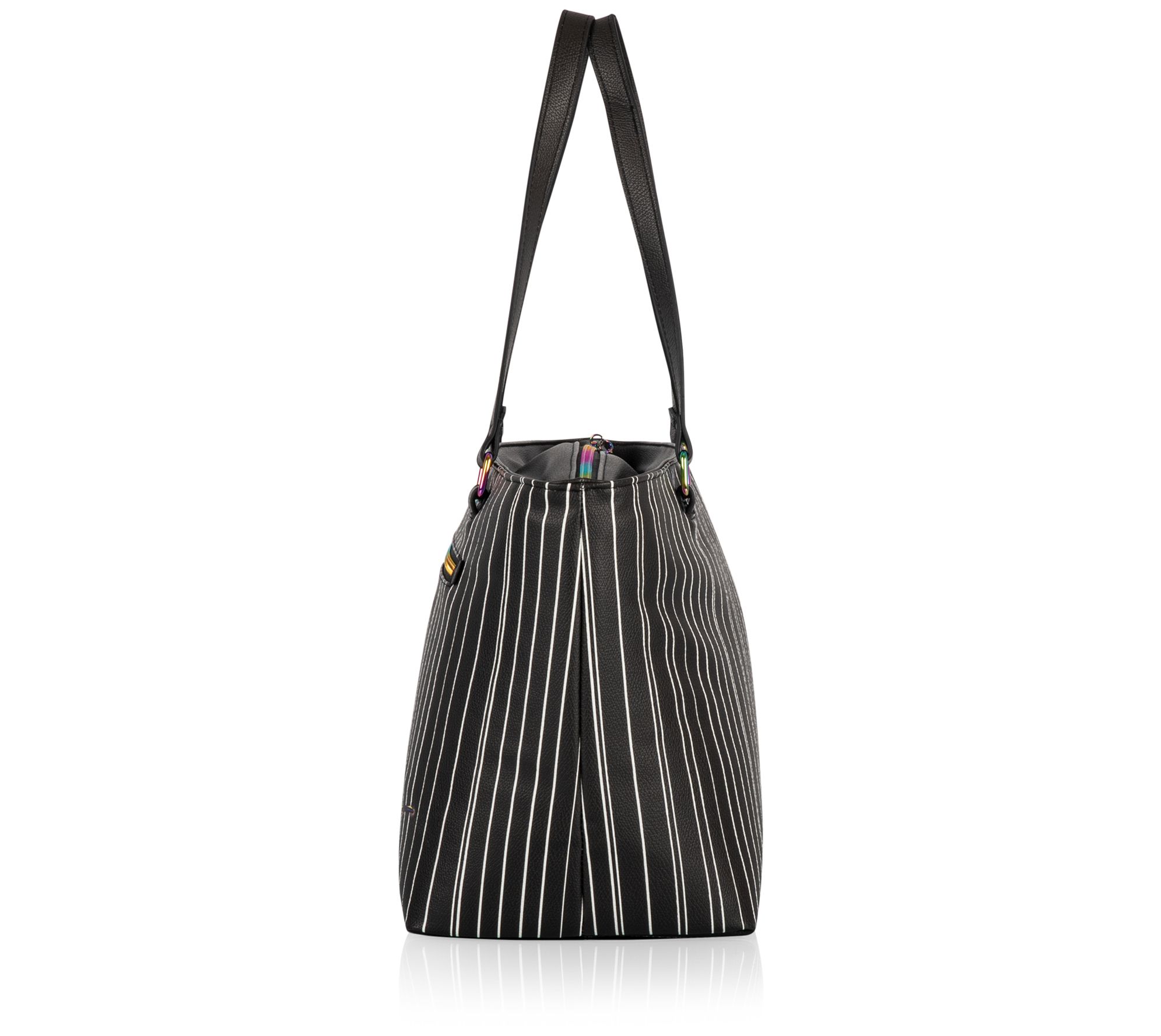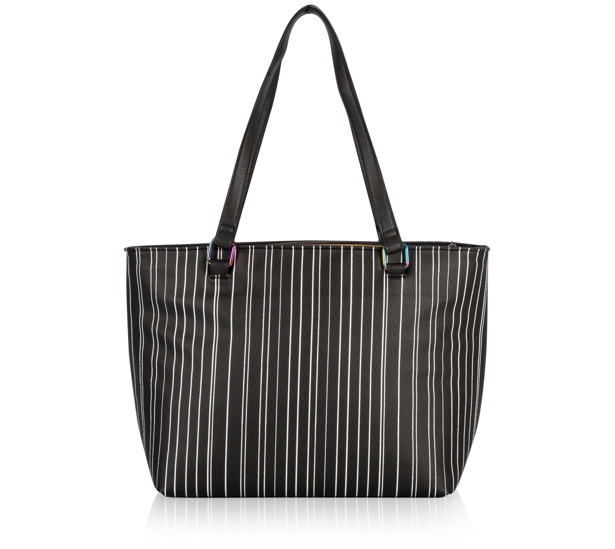 • Zip-top closure; double shoulder straps; rainbow hardware