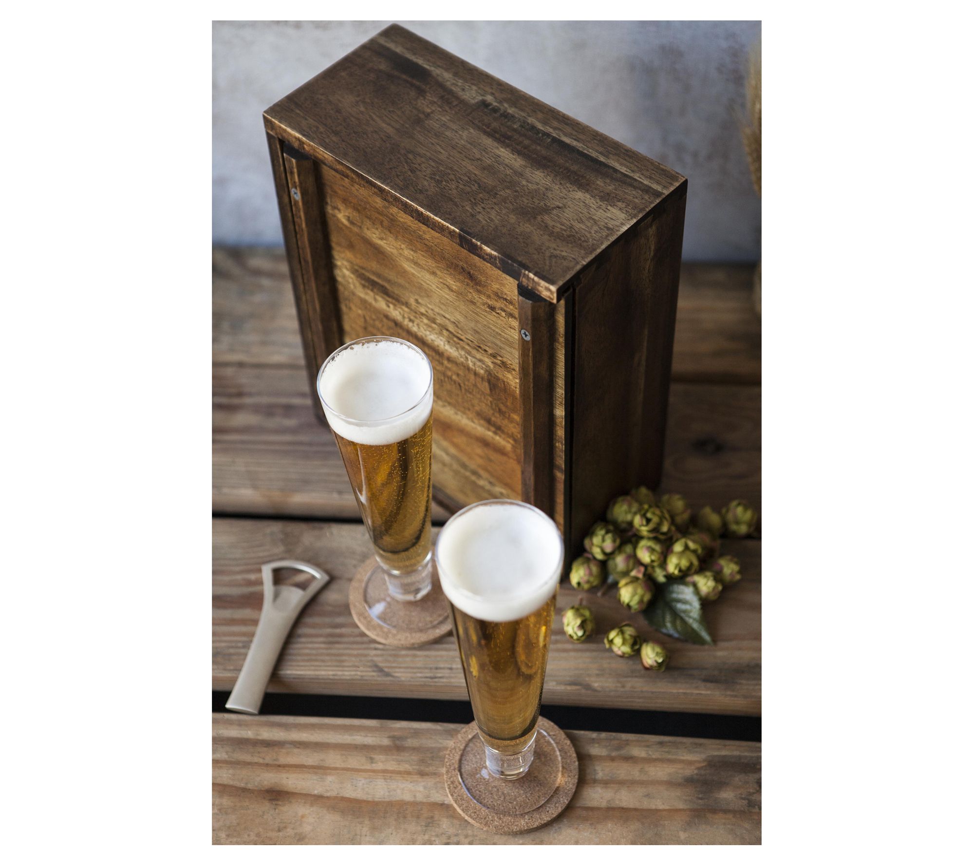 • Includes case, two 12-oz fluted beer glasses, two 3.5" natural cork coasters, and 5.1" steel deluxe bottle opener
