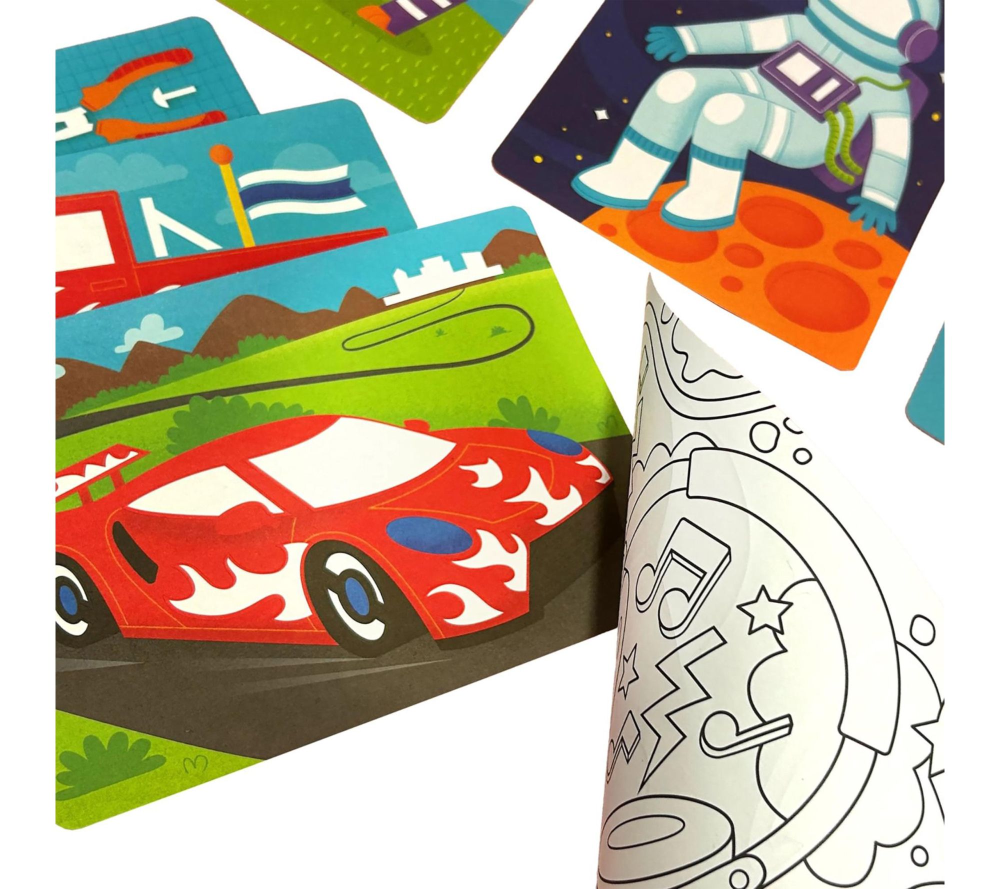 Creative minds can embark on a voyage through space and tech with this arts & crafts kit, featuring dazzling foil art and imaginative coloring activities. Each double-sided page invites kids to make robots, rockets, and galactic scenes shimmer, then flip for even more coloring adventures -- making rainy days or travel time fly by with hands-on fun. From OOLY.