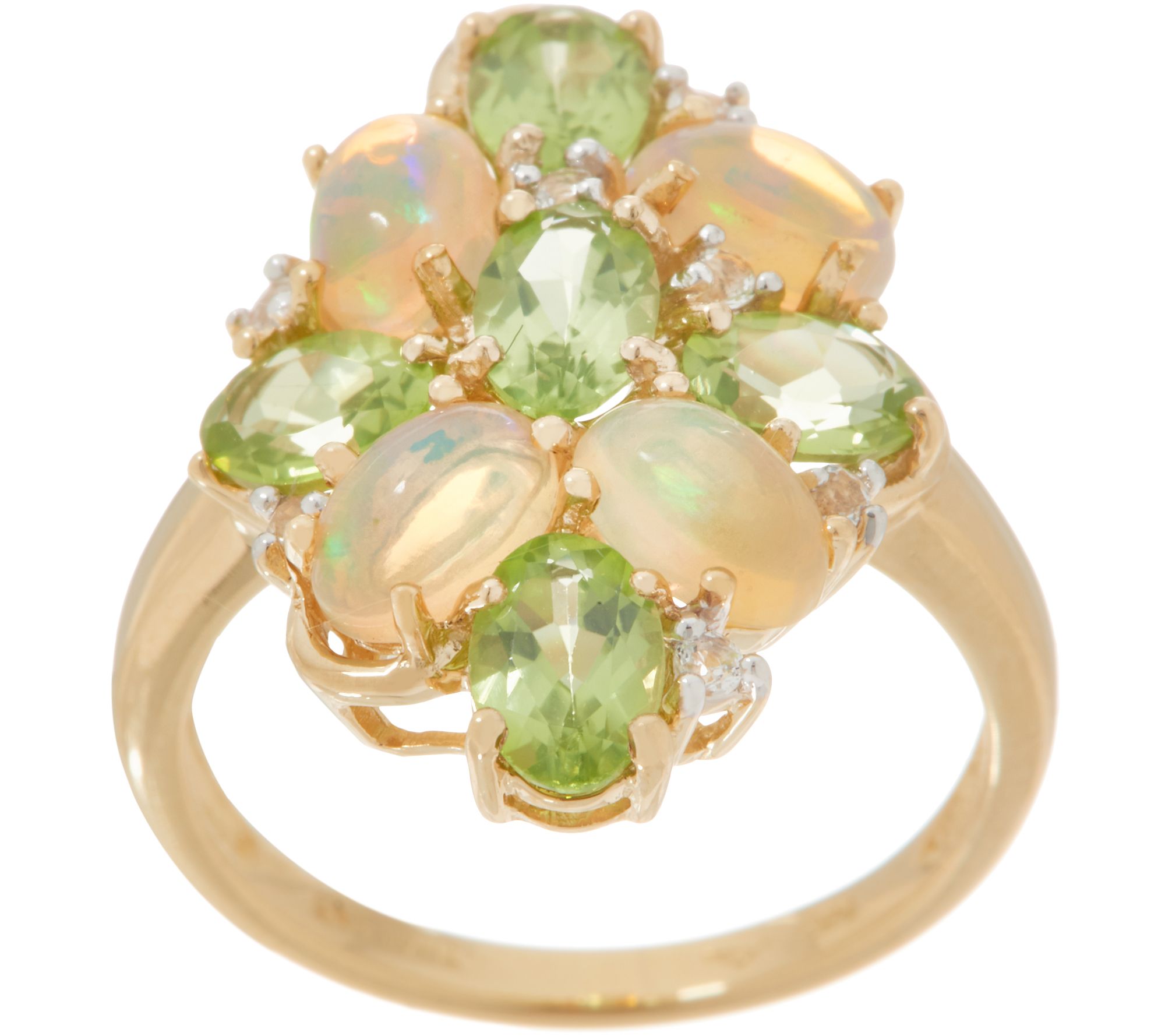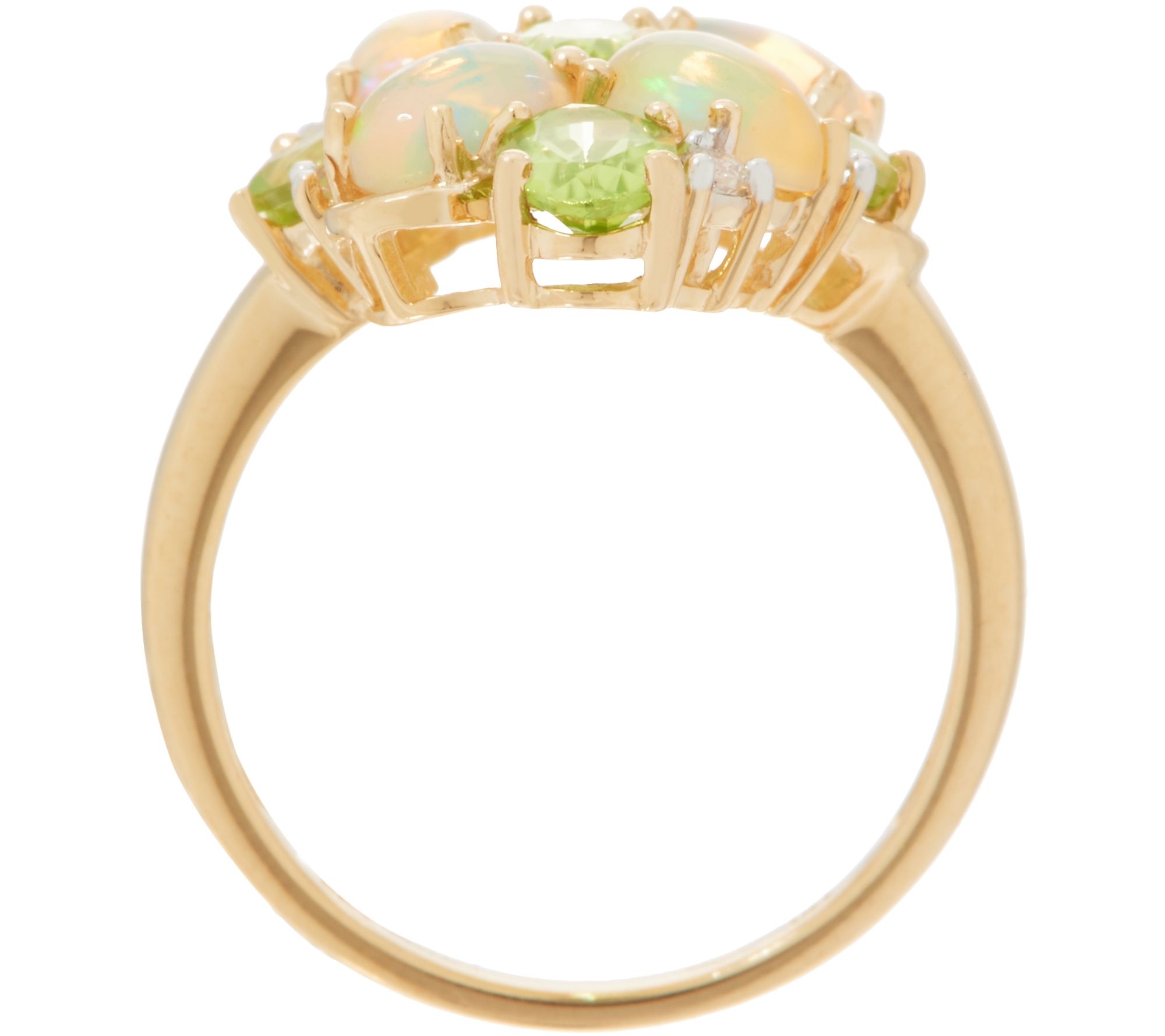 Add a bold piece to your already-impressive collection with this breathtaking 14K yellow gold and opal gemstone ring.