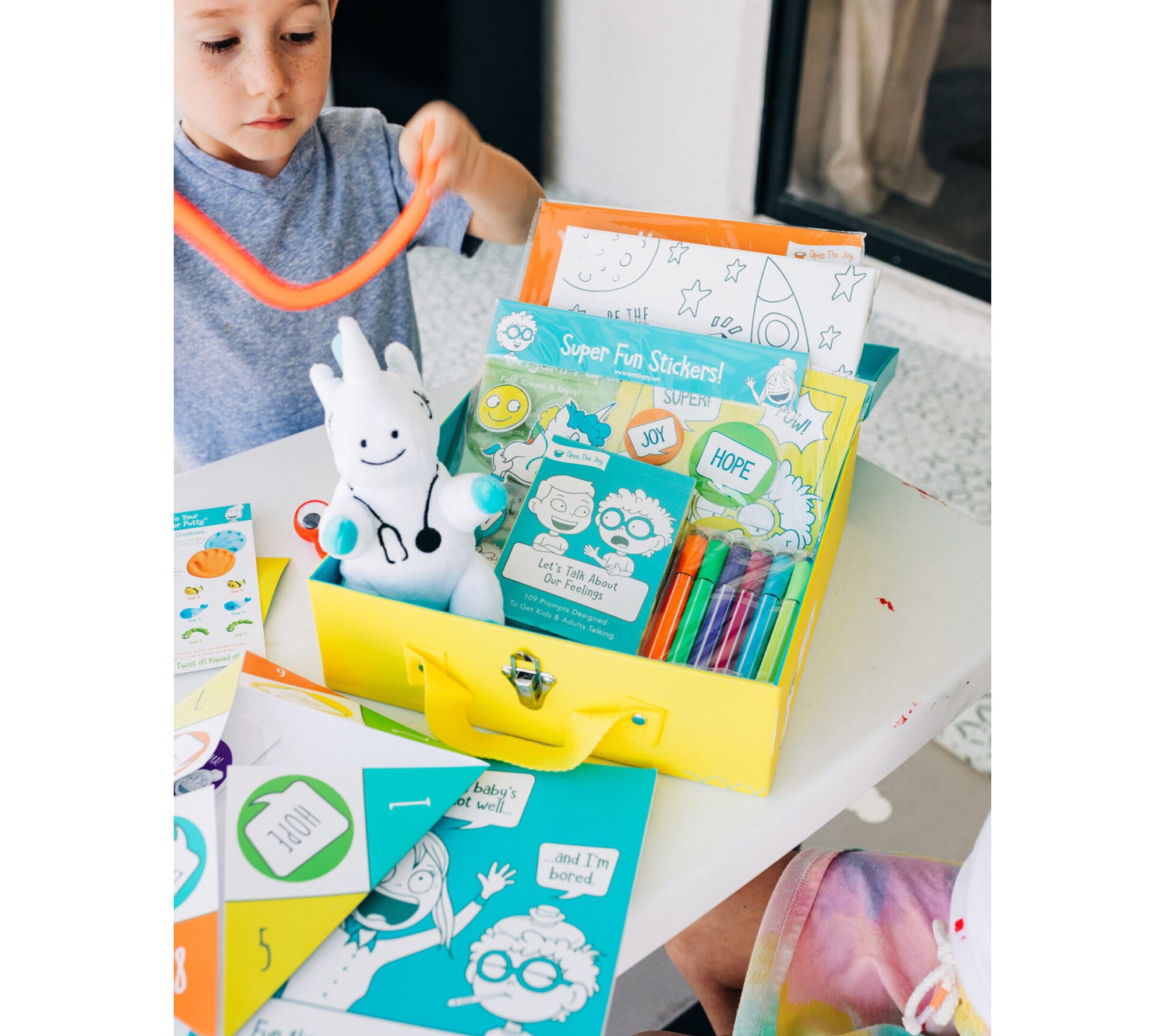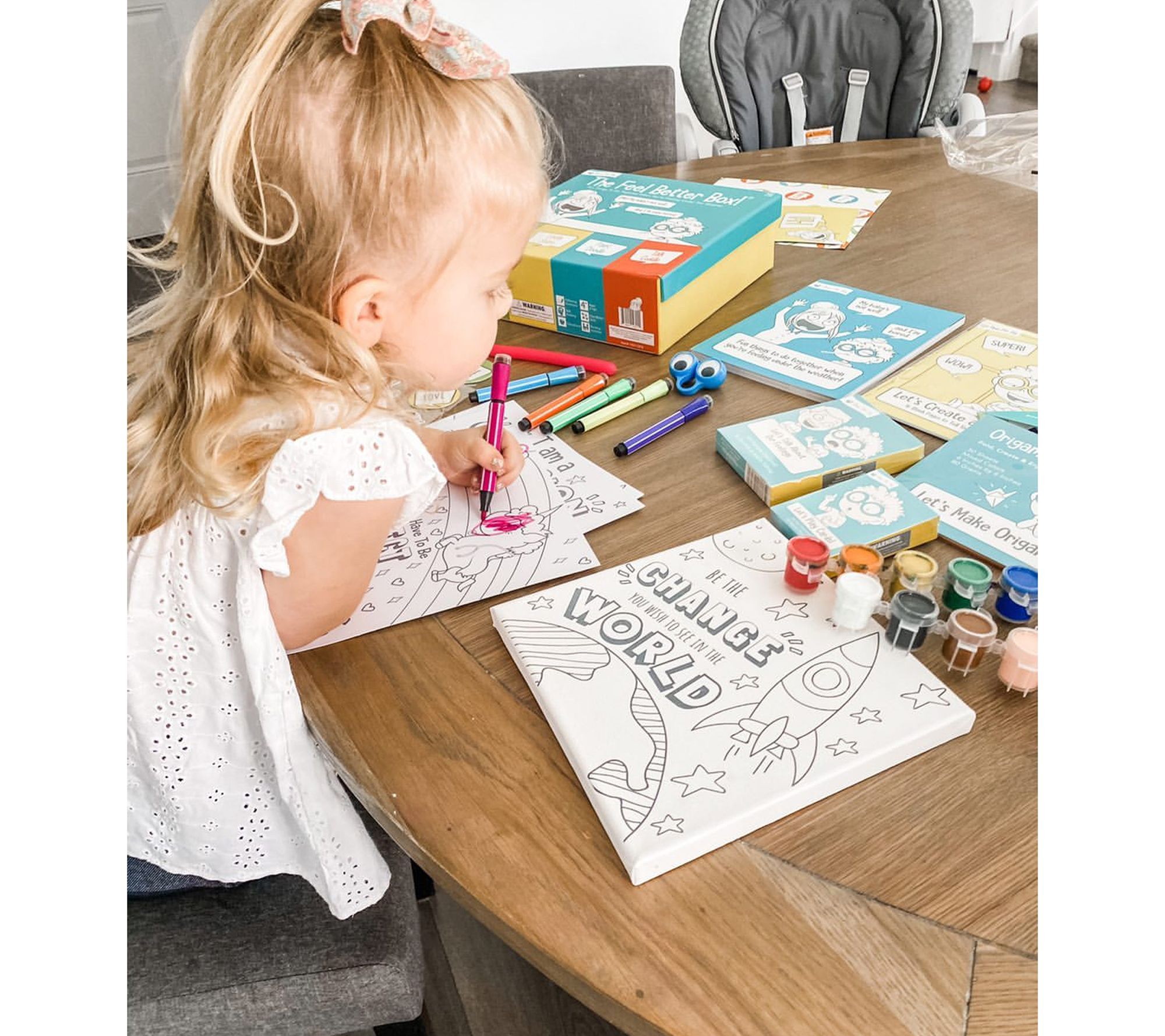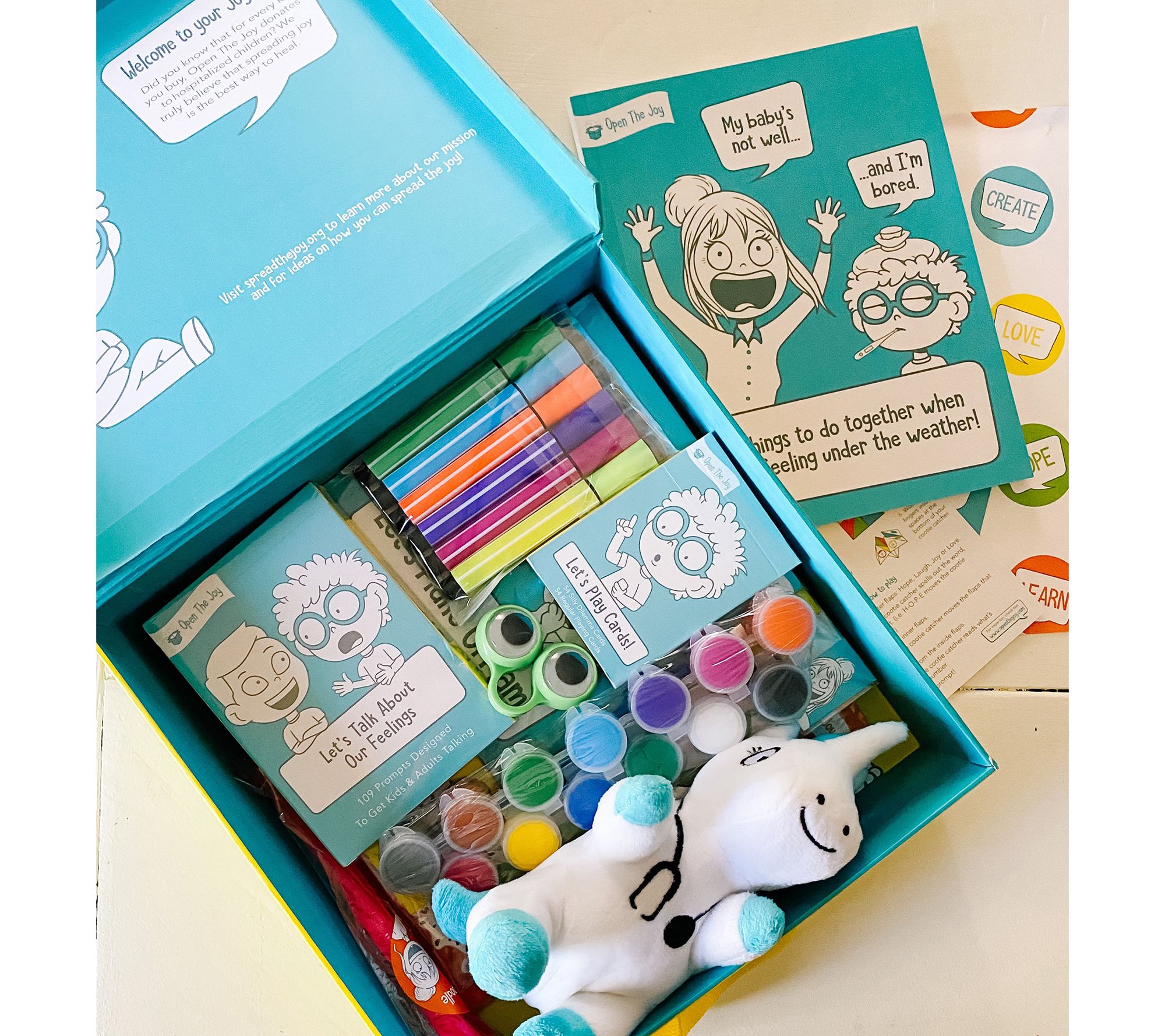 Your kiddo will never run out of things to do with this incredible activity kit featuring paints, cards, toys, and more, all designed to excite their imagination and encourage play. From Open the Joy.