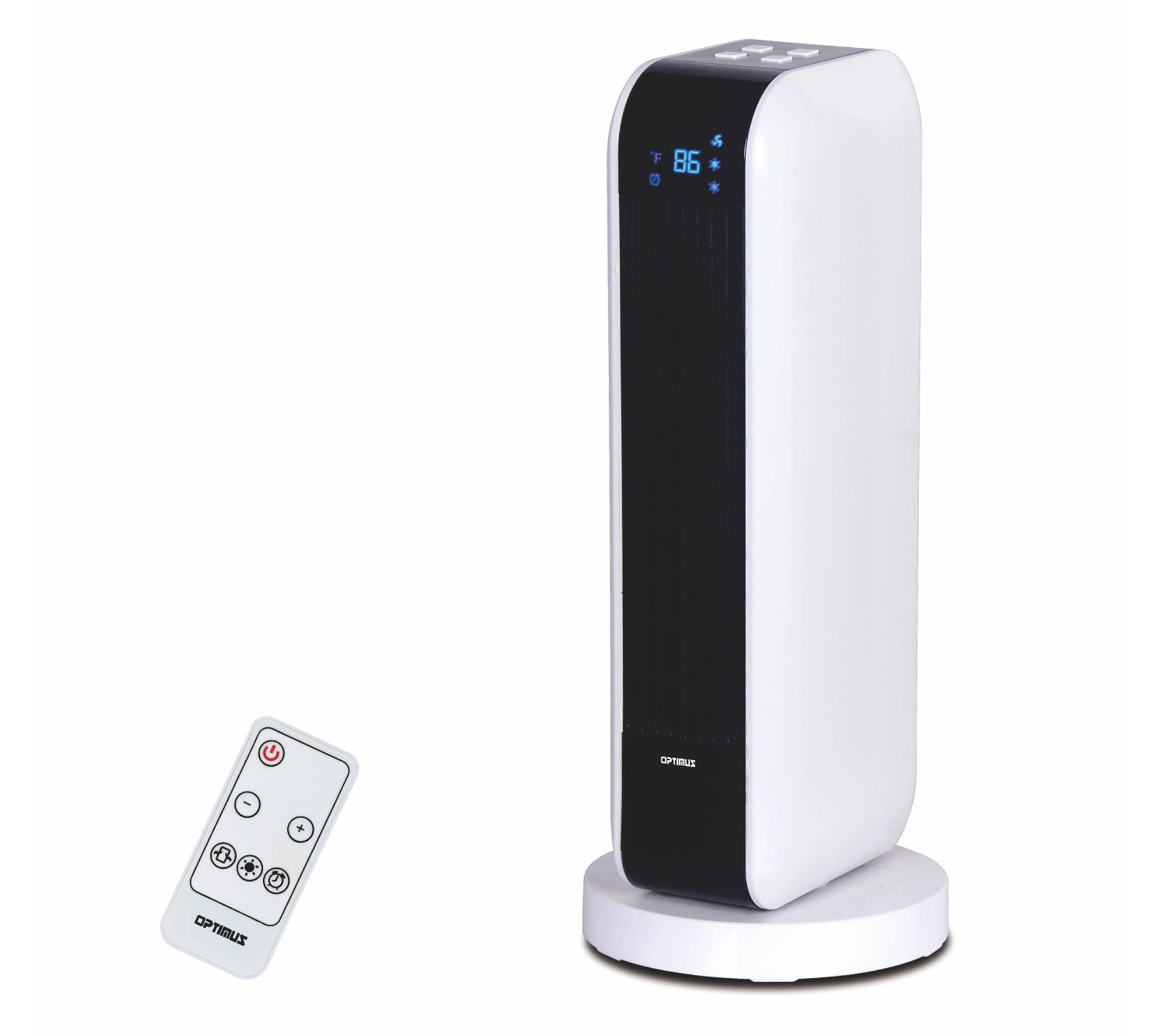 Keep your space toasty and comfortable with this modern-design, remote-controlled ceramic oscillating tower heater. From Optimus.