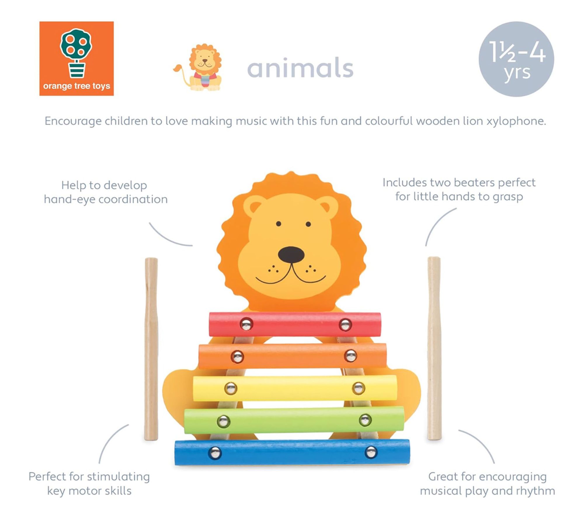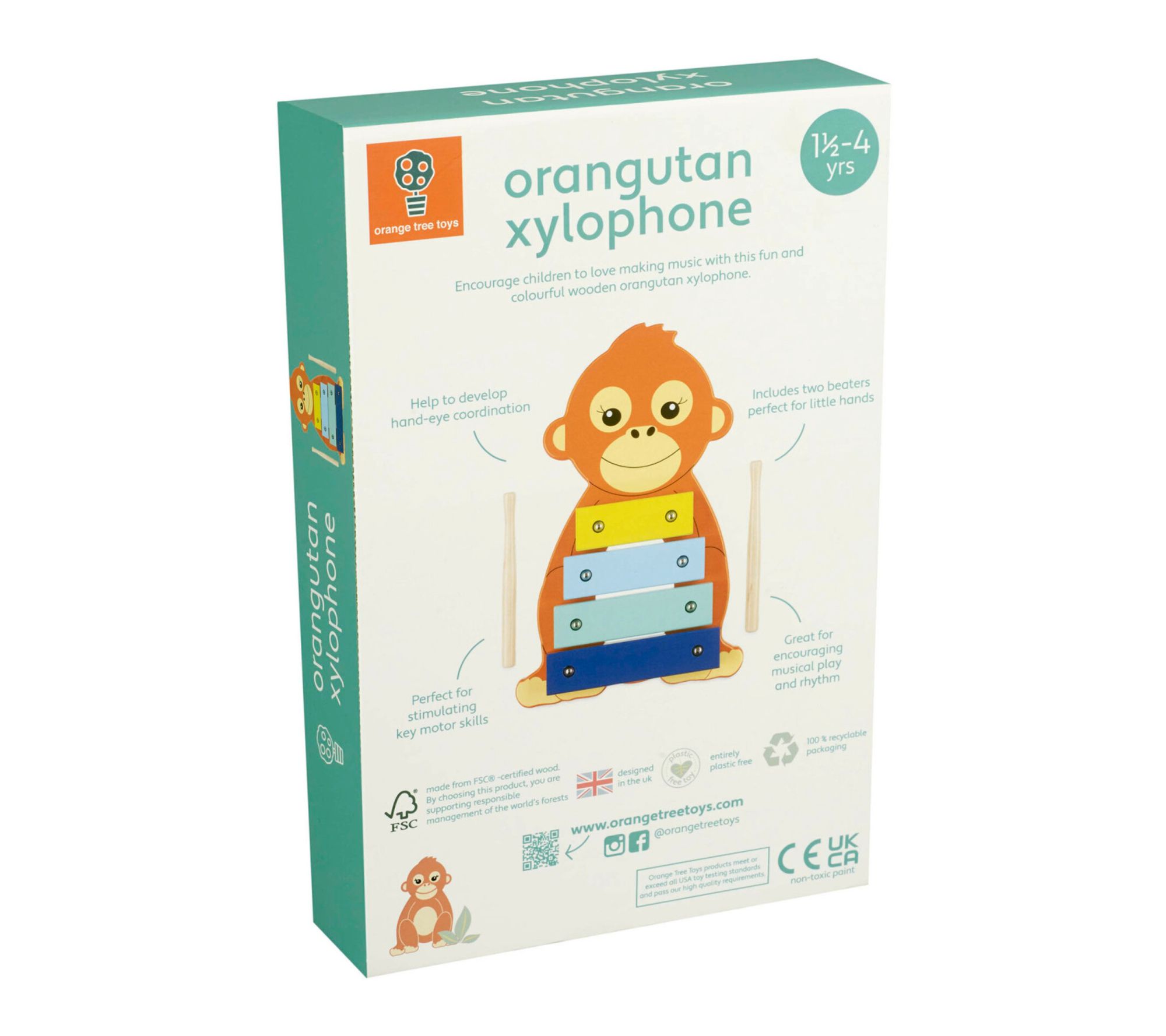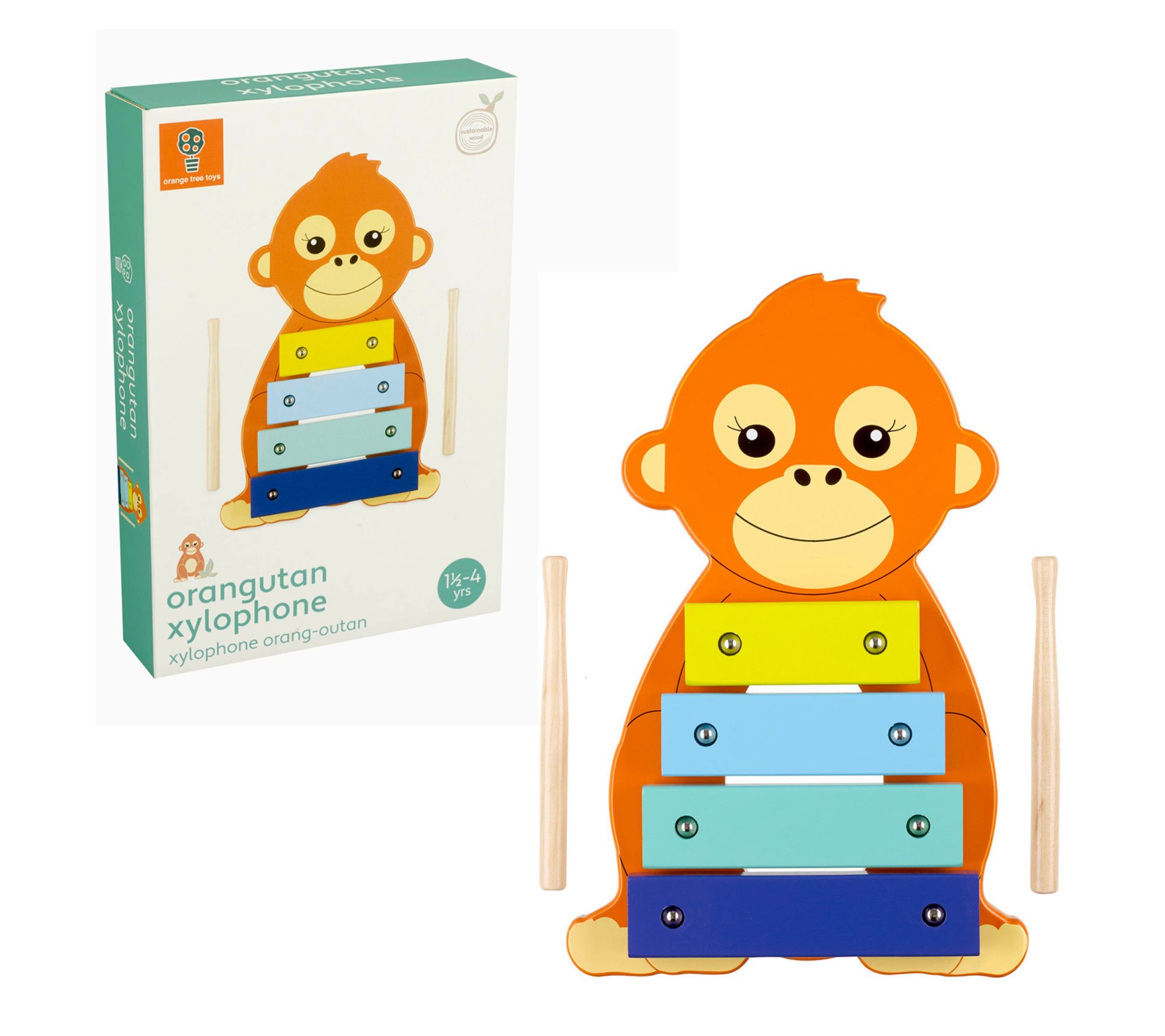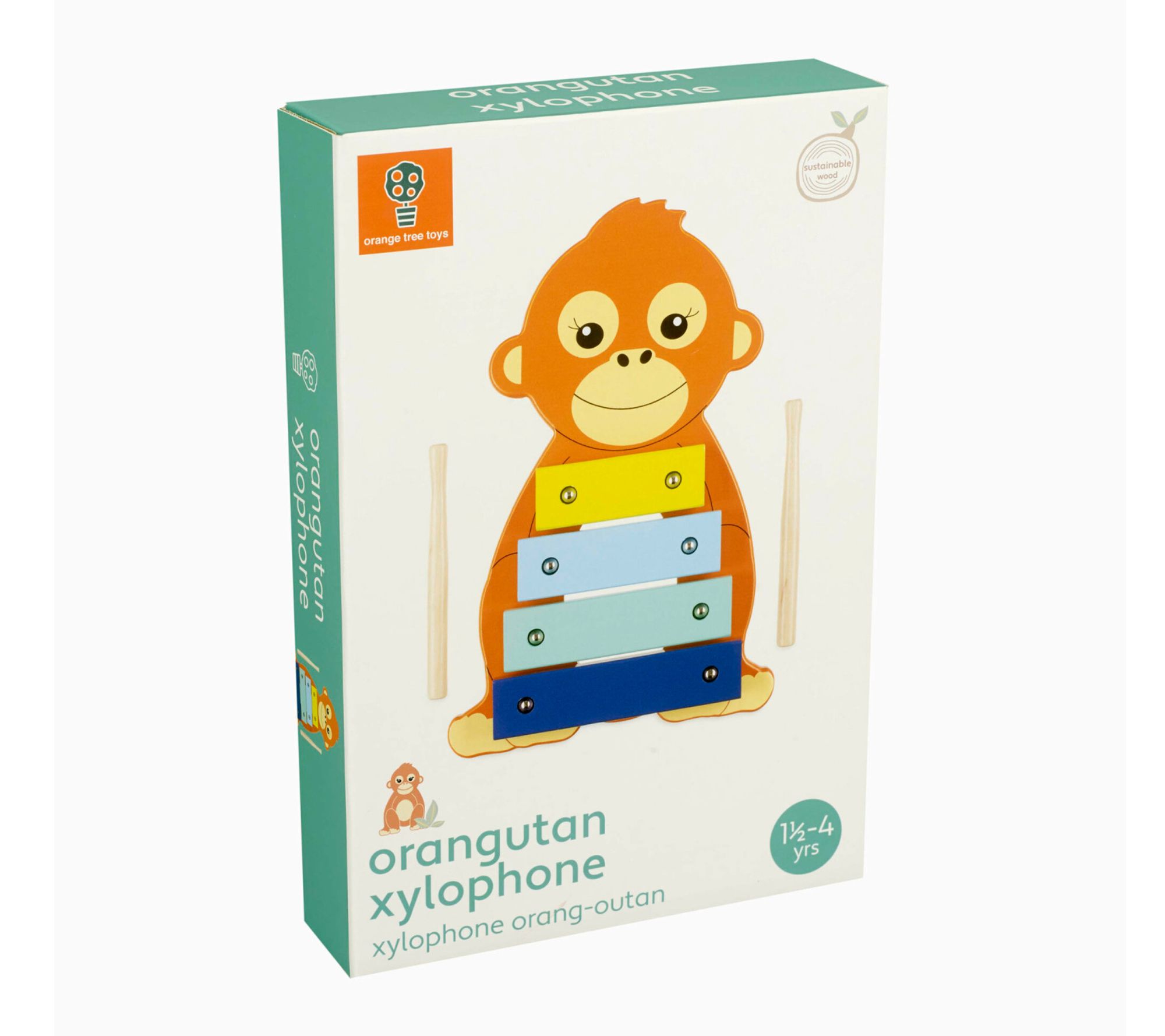 Brighten any playroom with this delightful xylophone toy, styled as a cheerful orangutan. Little ones can explore rhythm and sound, sparking creativity and encouraging movement with every tap of the drumsticks. Whether it's a solo session or a spontaneous family jam, musical toys like this bring lasting joy and learning to everyday moments. From Orange Tree Toys.