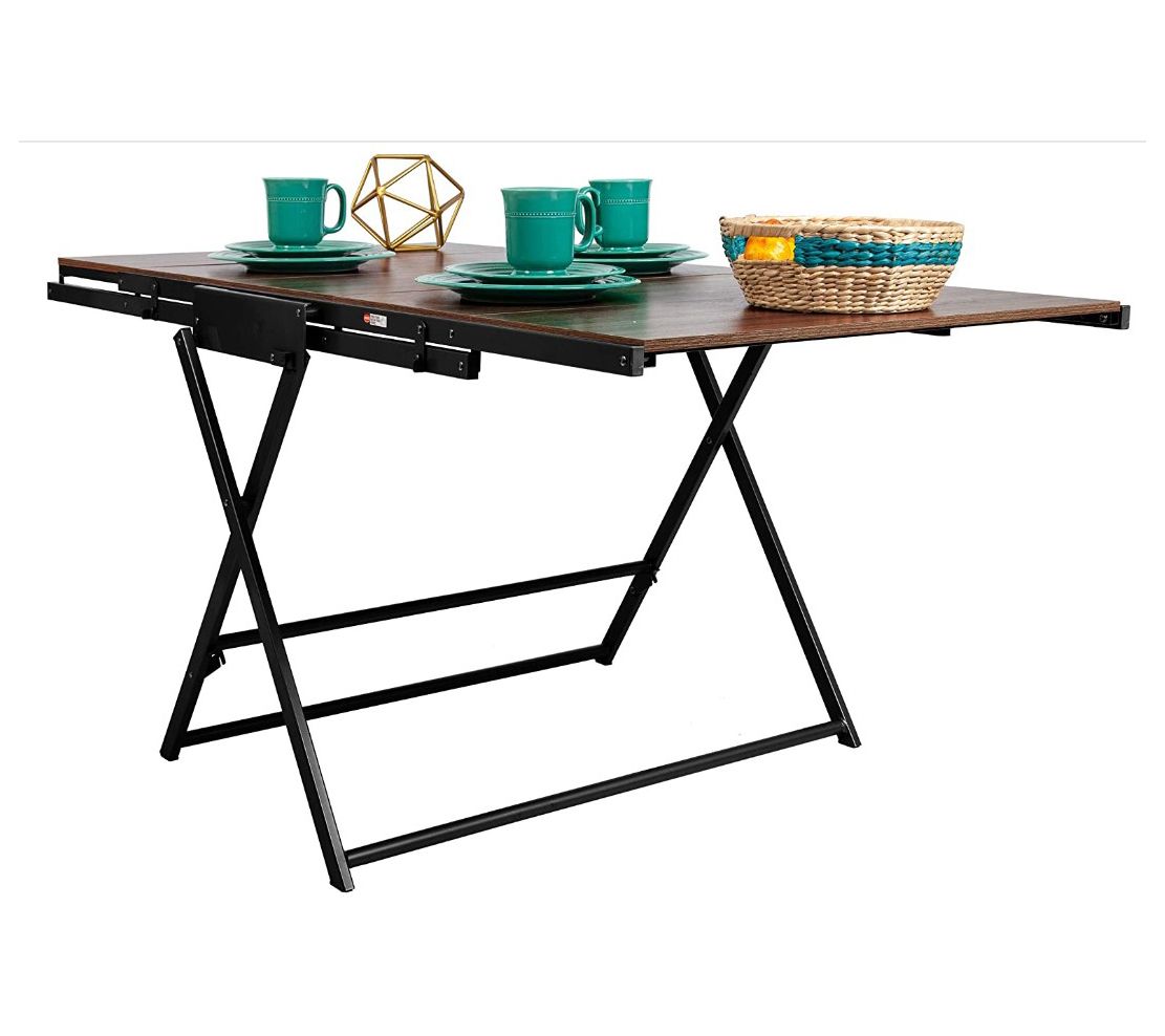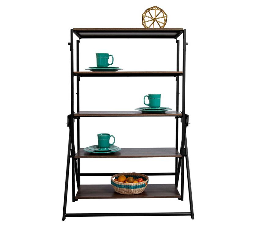 Create ample workspace with this combination shelf and table that folds up in a flash to save space. From Baxton Studio.