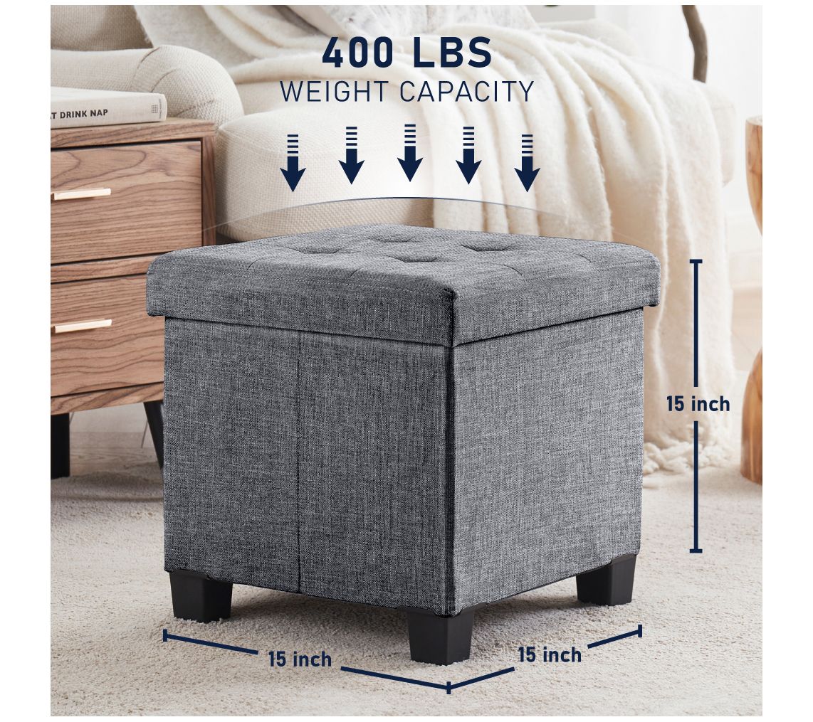 Ornavo Home Collapsible Square Cube Storage Ottoman with Legs