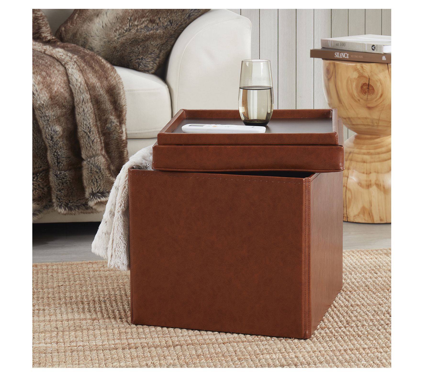 Ornavo Home Faux Leather Square Storage Ottomanw/ Table Tray