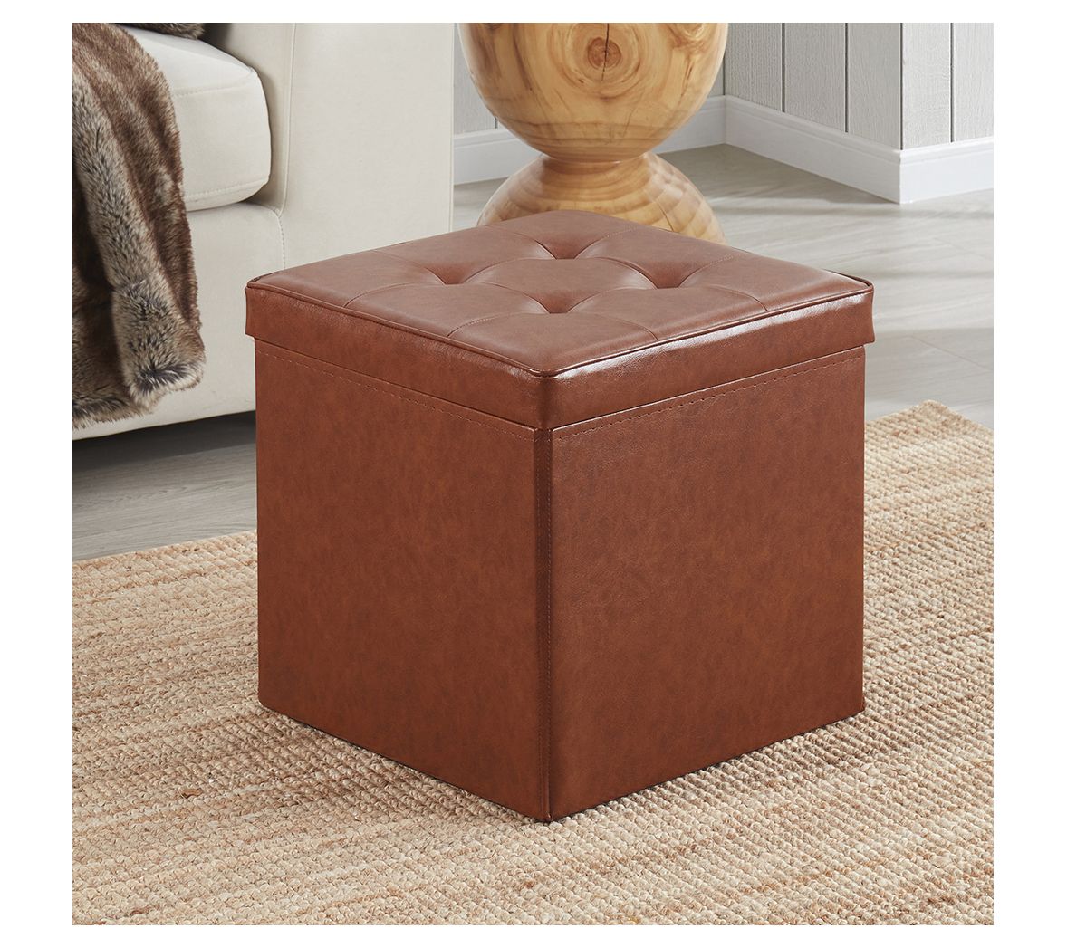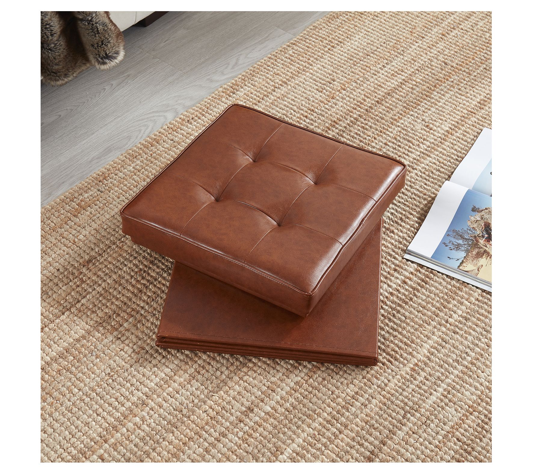 Add a touch of elegance and functionality to your living space with this faux leather square storage ottoman with table tray. This versatile piece features a foldable design for easy storage and a tufted top that doubles as extra seating when needed. The table top lid offers a convenient surface for snacks, drinks, or reading material. From Ornavo Home.