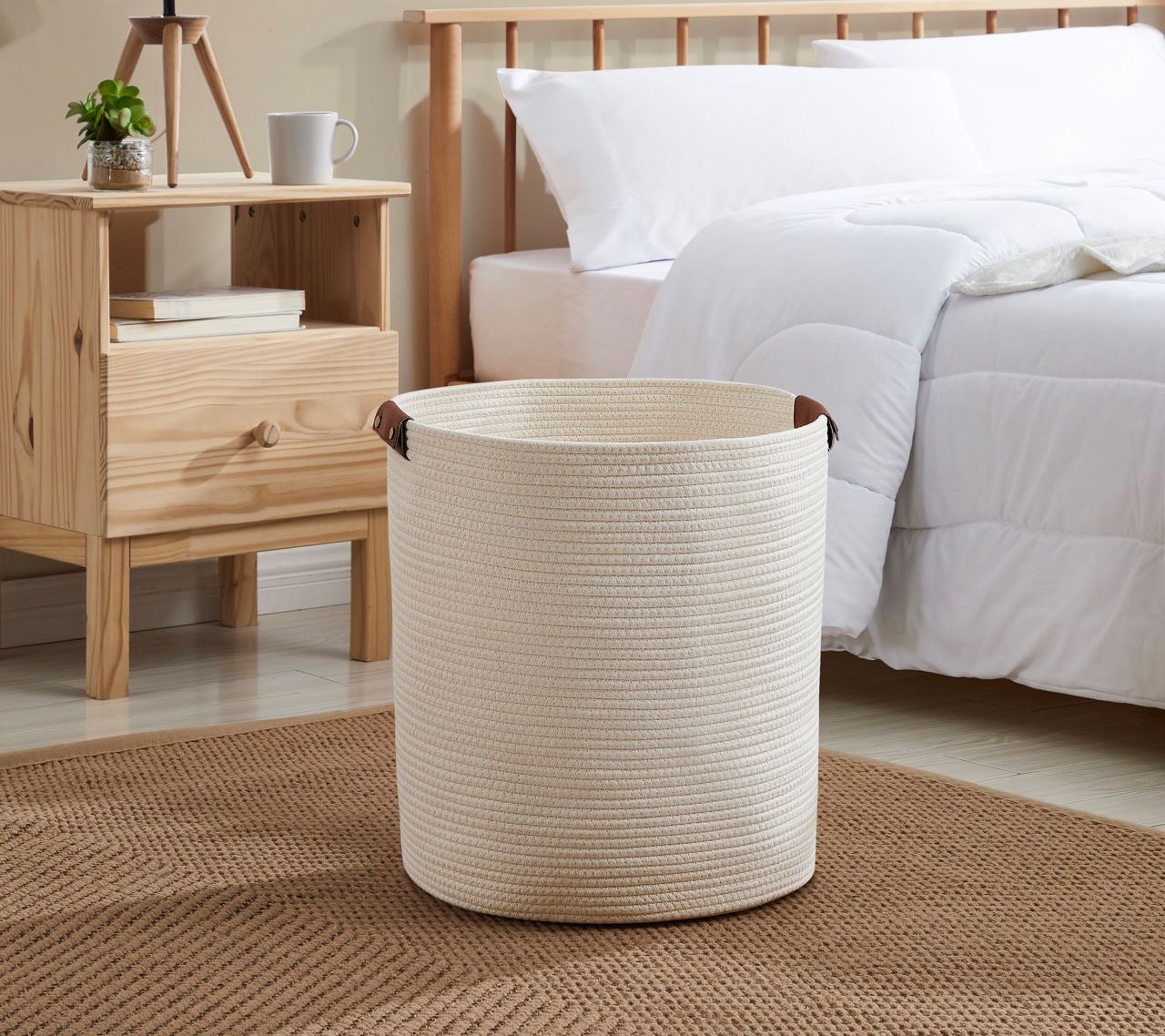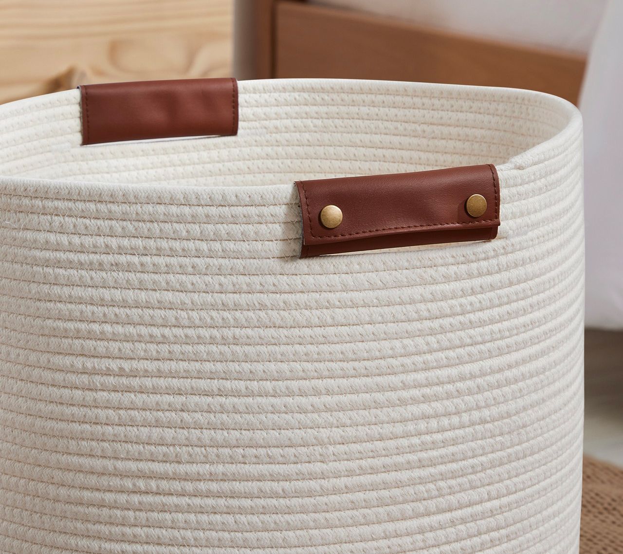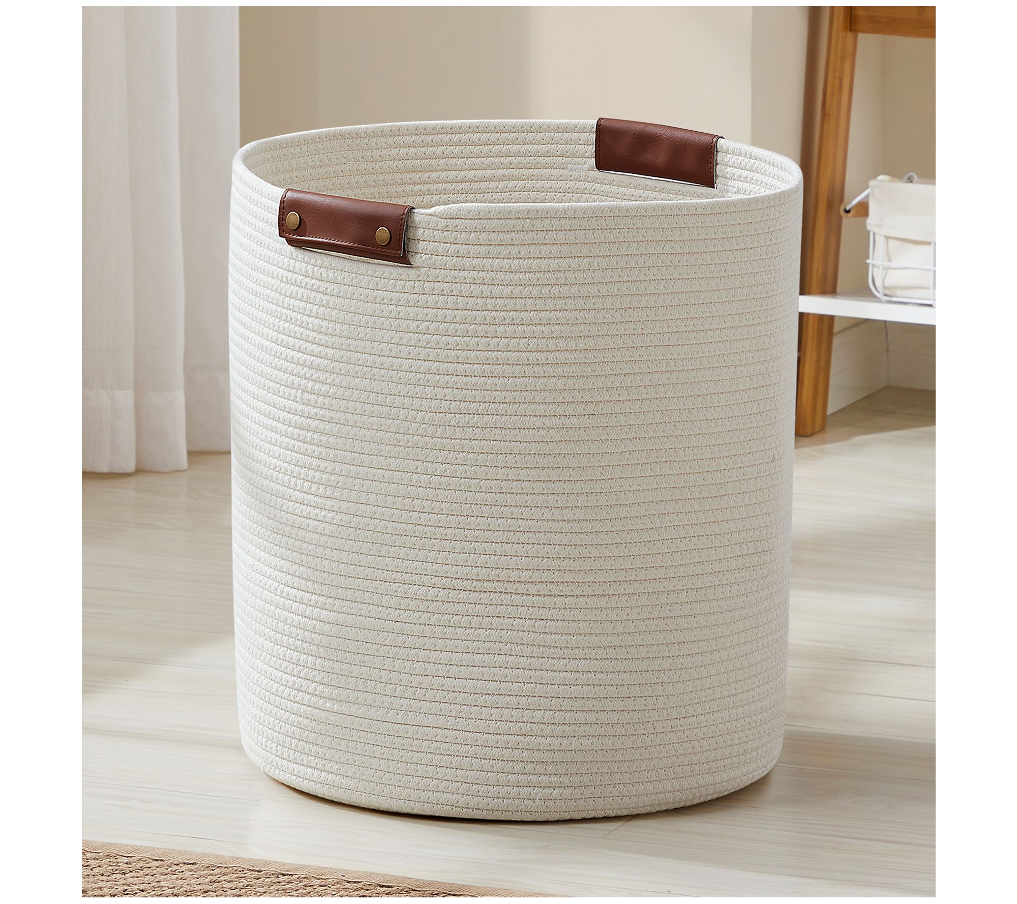 Ornavo Home L Rope Laundry Storage Basket withLeather Handles