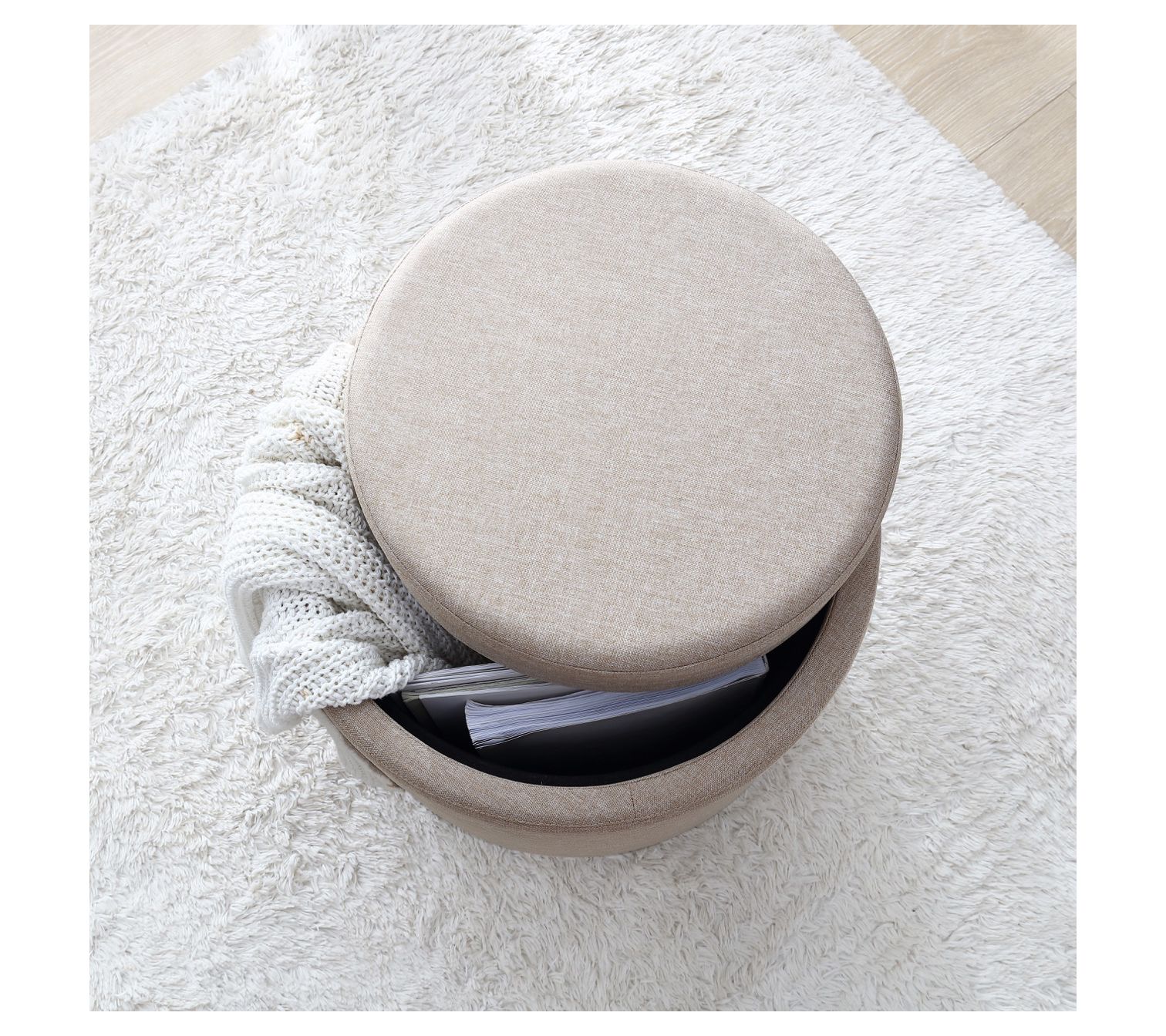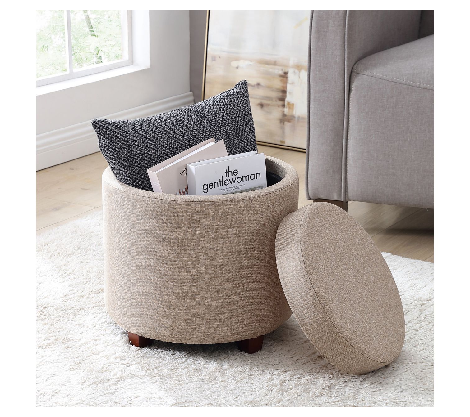 Ornavo Home Lawrence Round Storage Ottoman with Tray Lid