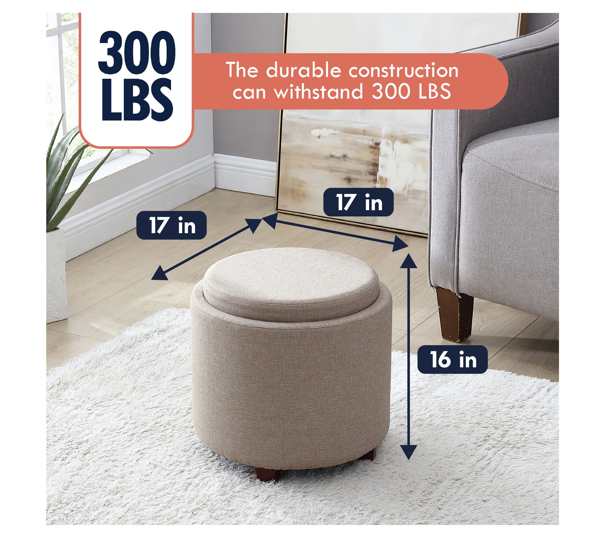 • Measures 17" x 17" x 16"; Supports up to 300 lbs