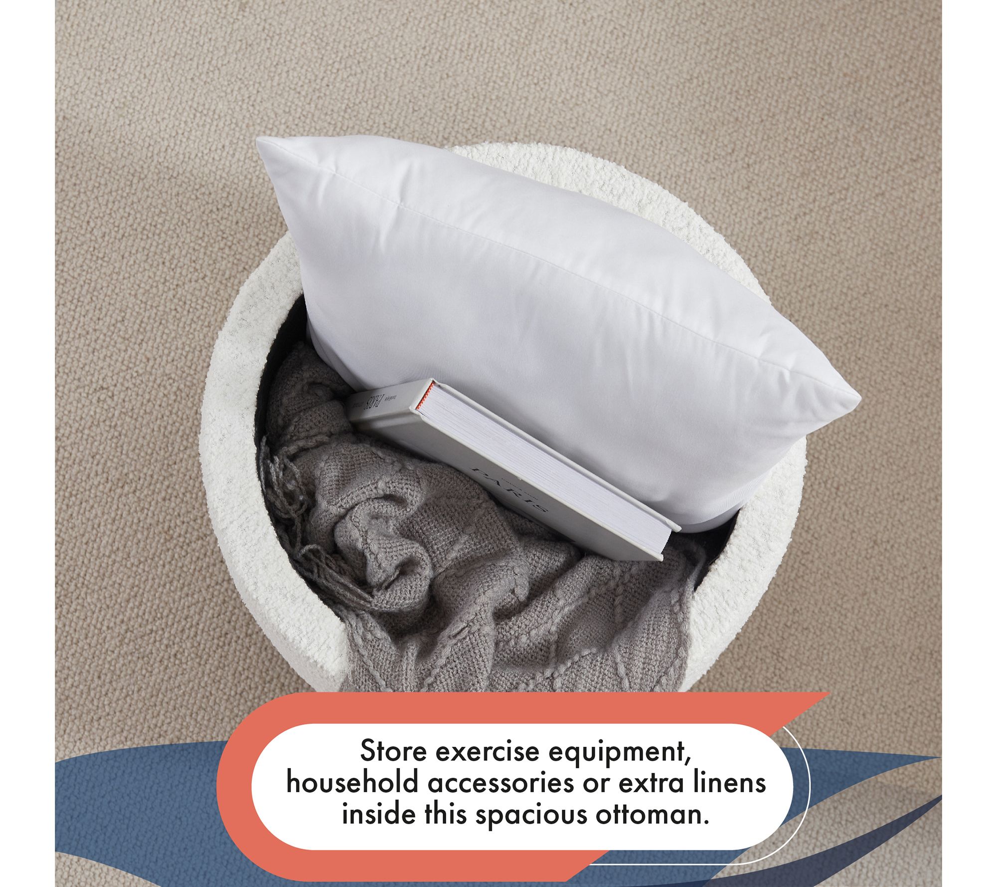 Wrapped in luxuriously soft boucle fabric, this round ottoman offers a touch of elegance and comfort that invites you to unwind. Its contemporary flair makes it a standout piece in any room, while hidden storage helps keep your space clutter-free. From Ornavo Home.