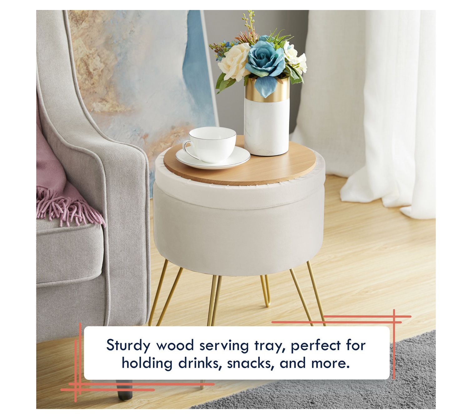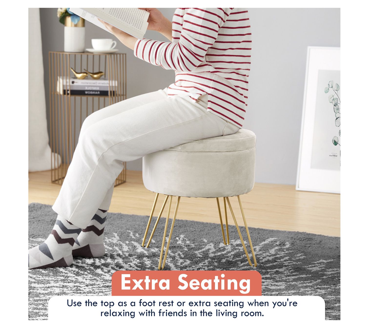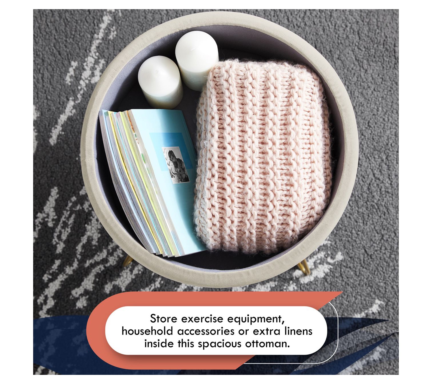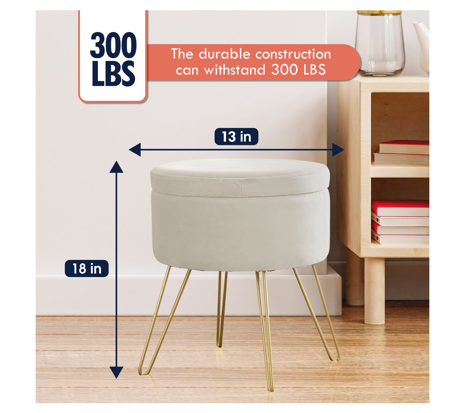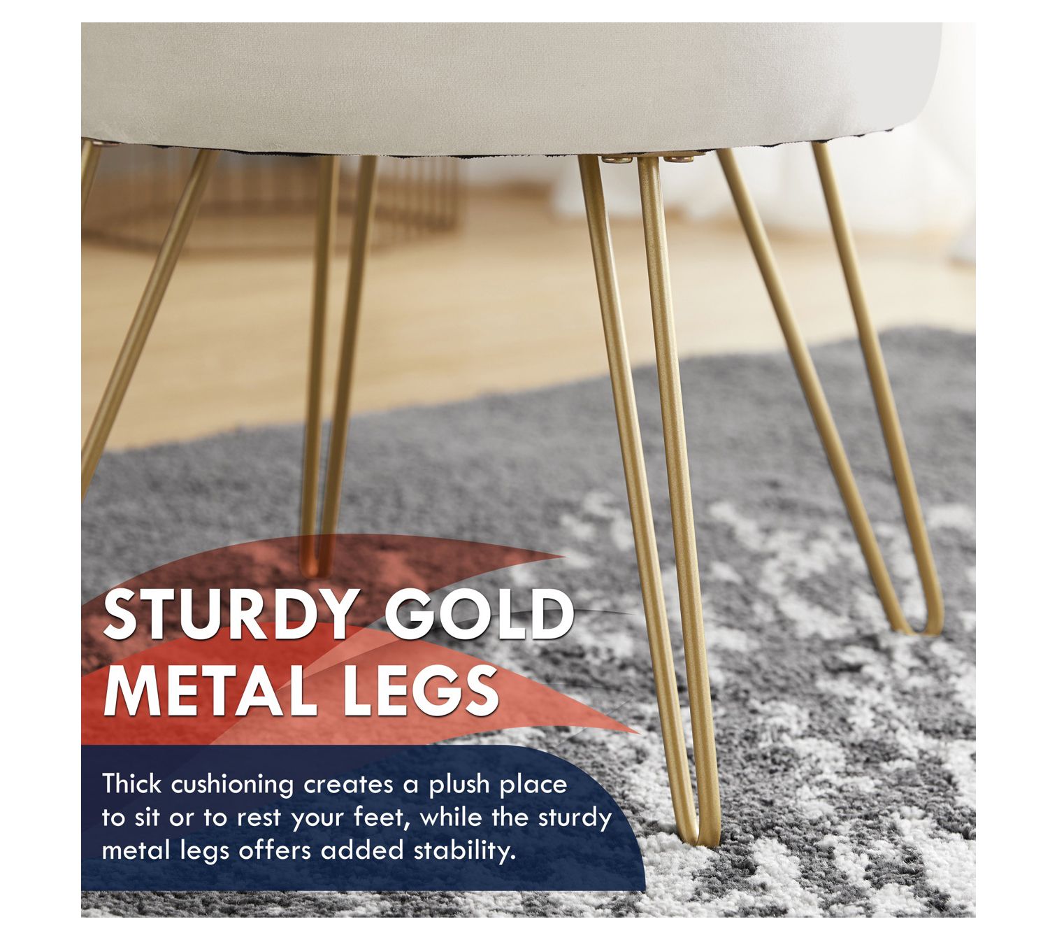 Ornavo Home Round Velvet Storage Ottoman with Gold Metal Legs