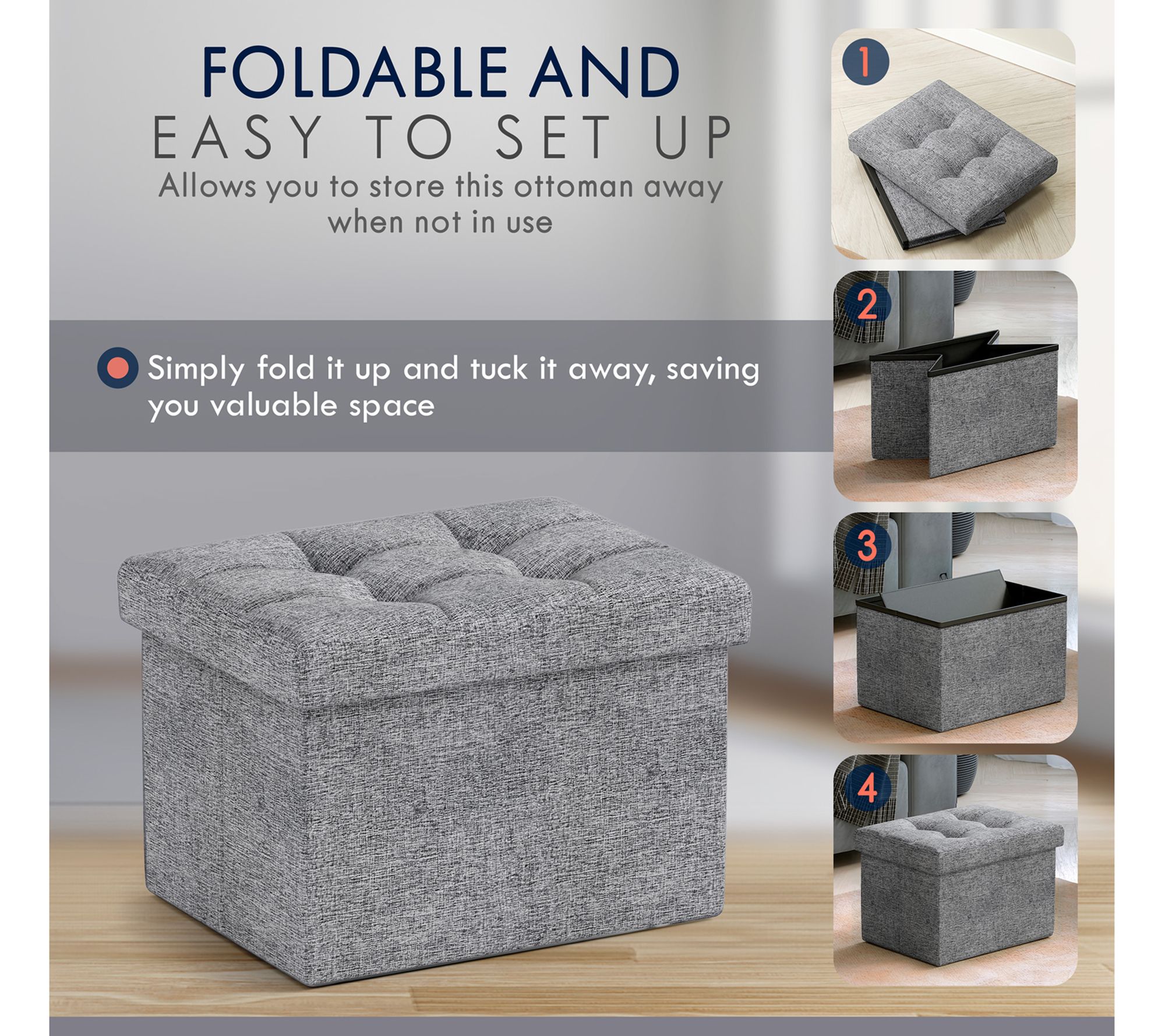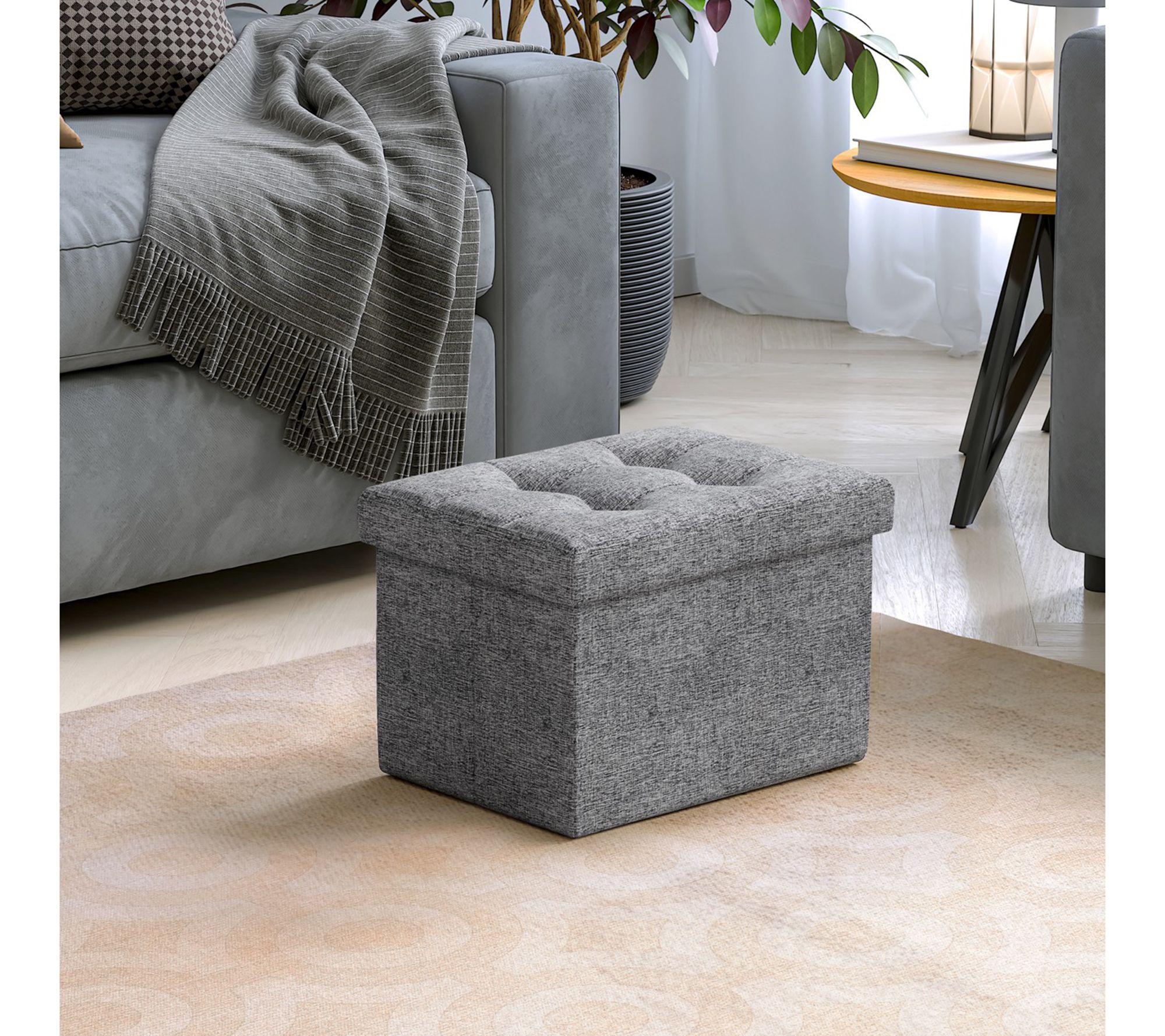 Ornavo Home Small Foldable Tufted Linen StorageOttoman