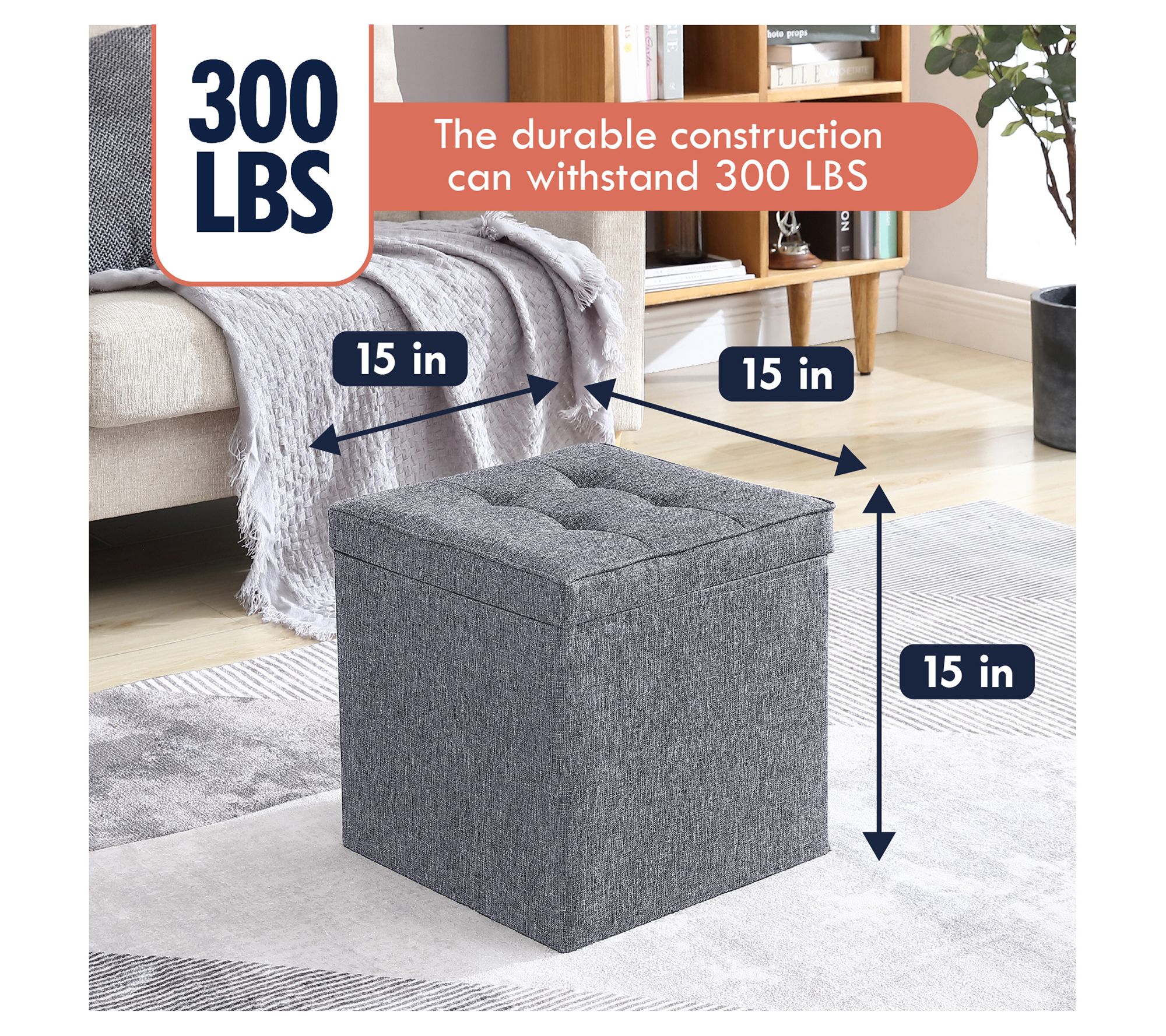 • Measures 15" x 15" x 15"; Supports up to 300 lbs
