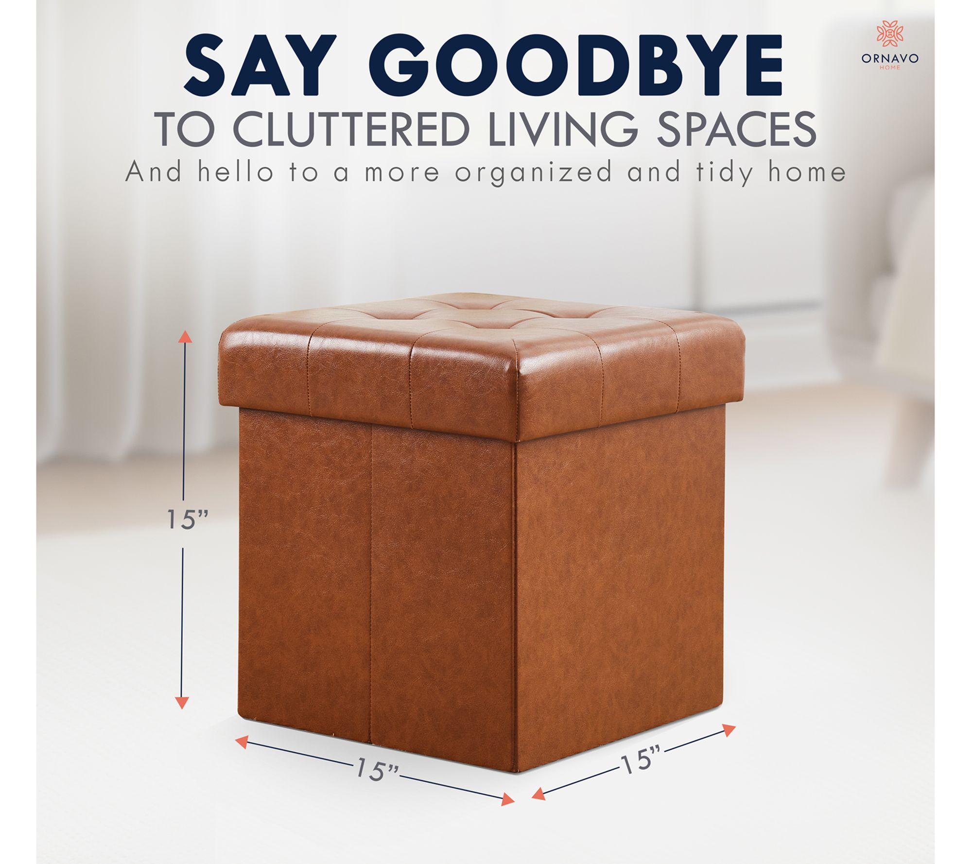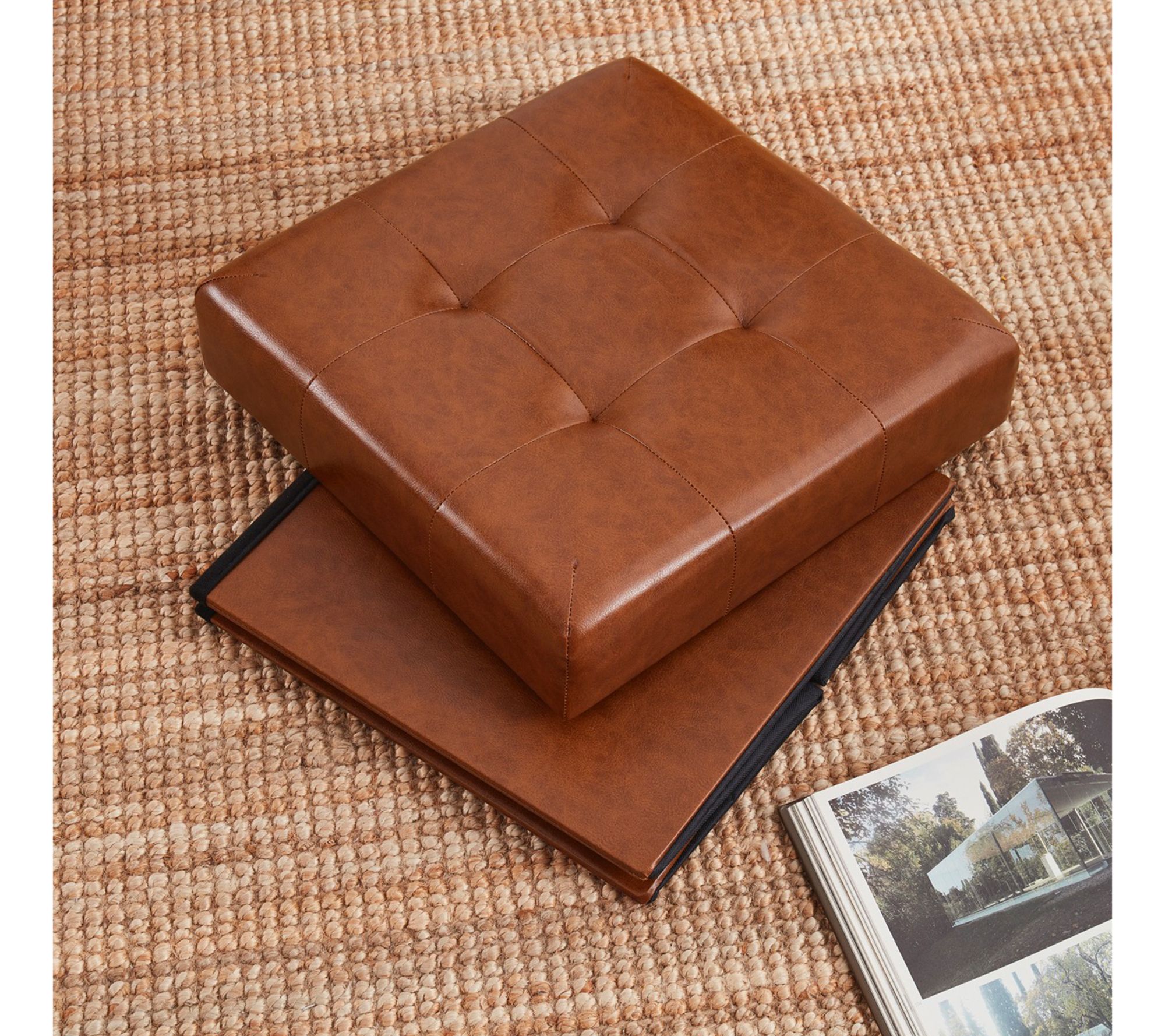 Ornavo Home Tufted Faux Leather Square Cube Storage Ottoman