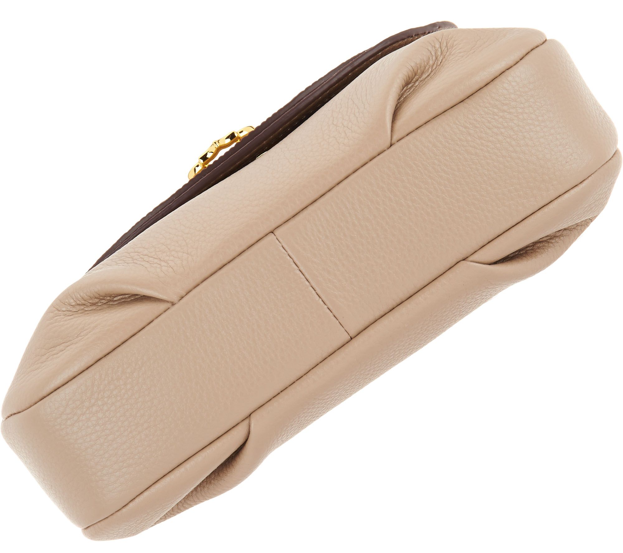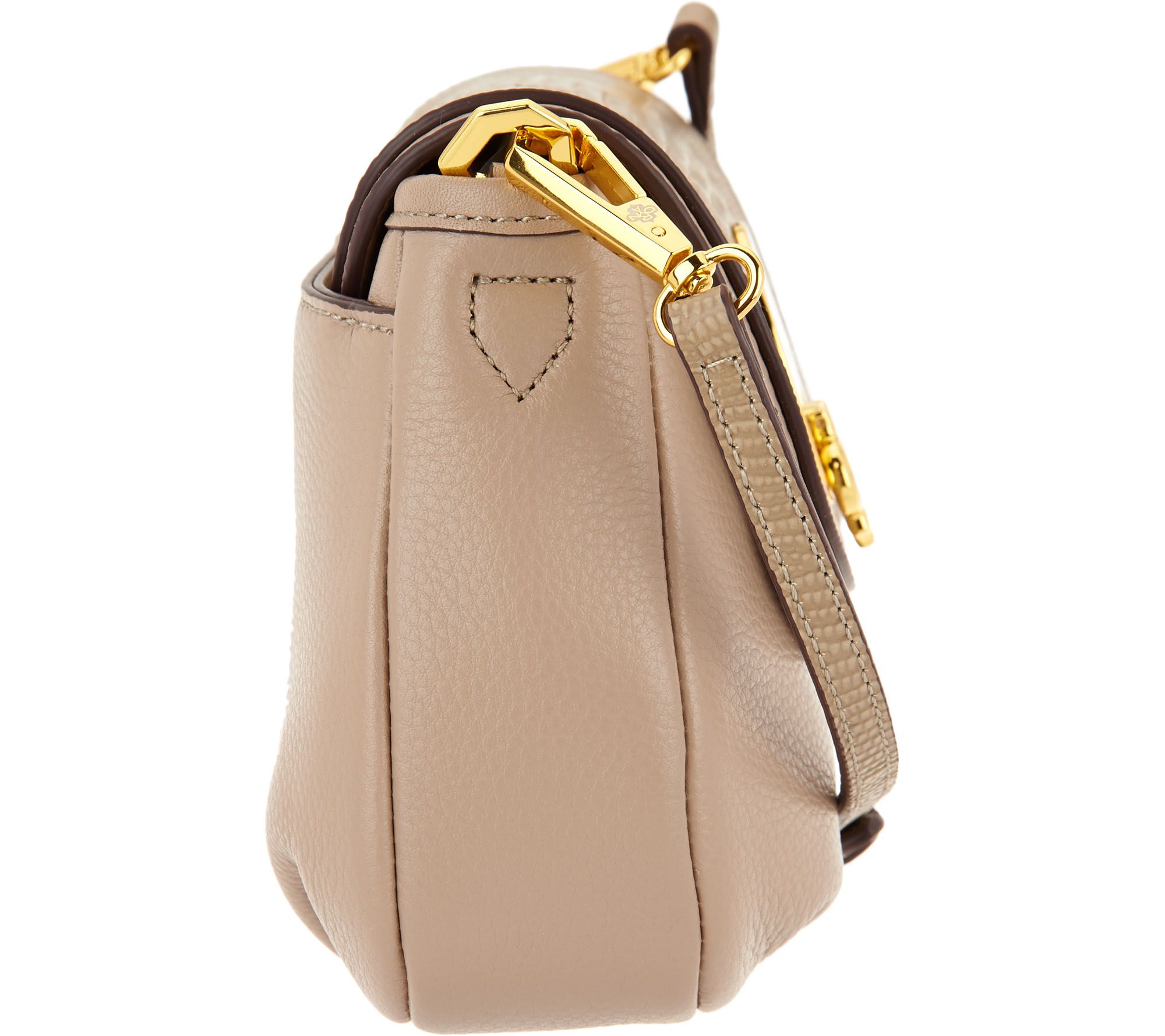 • Pebble leather body, back pocket with magnetic snap closure, signature lock, detachable/adjustable shoulder strap, goldtone hardware