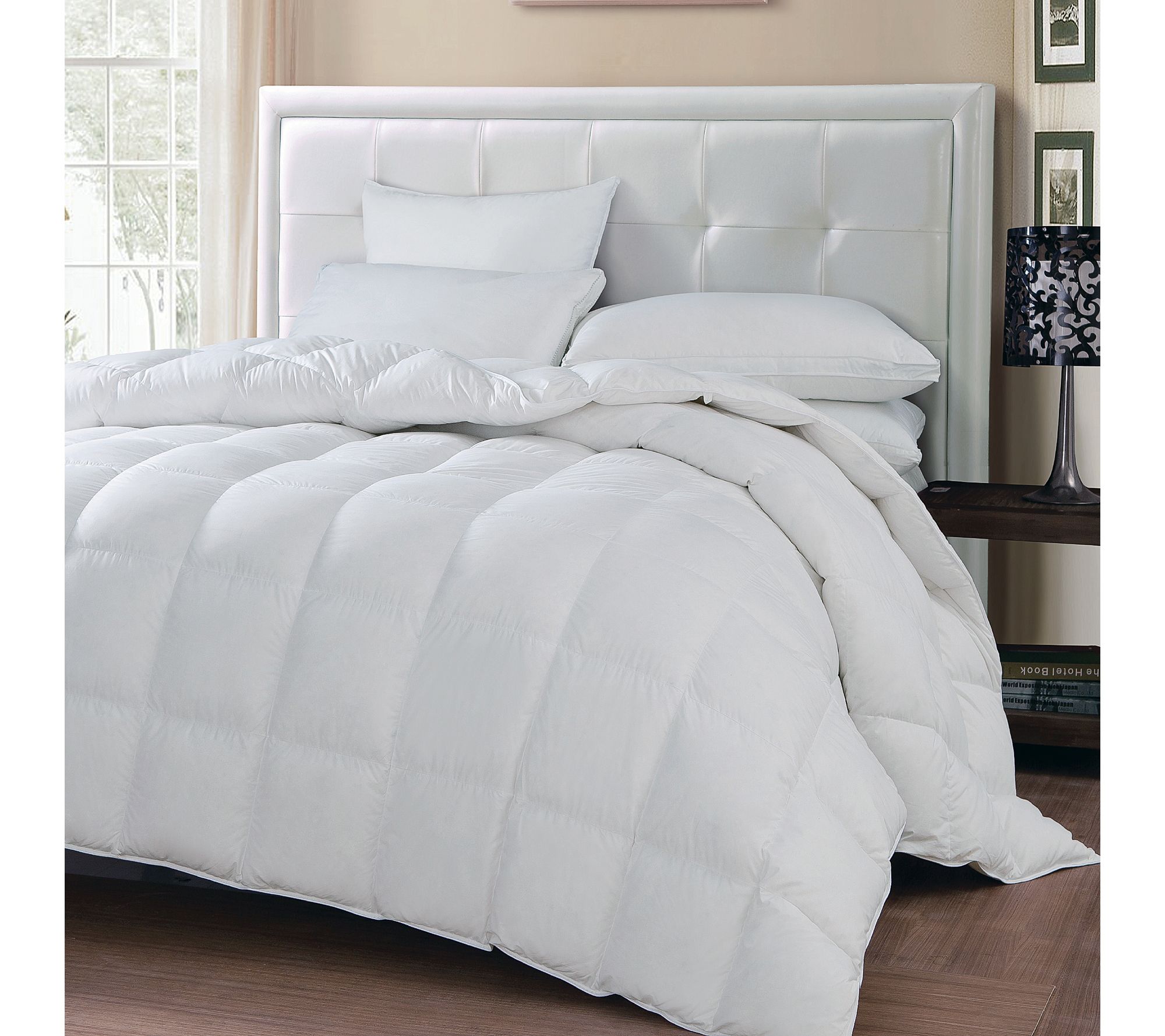 Go ahead and tuck yourself into bed early! With this Oslo white goose down and feather comforter, you'll stay warm and cozy in cooler weather.