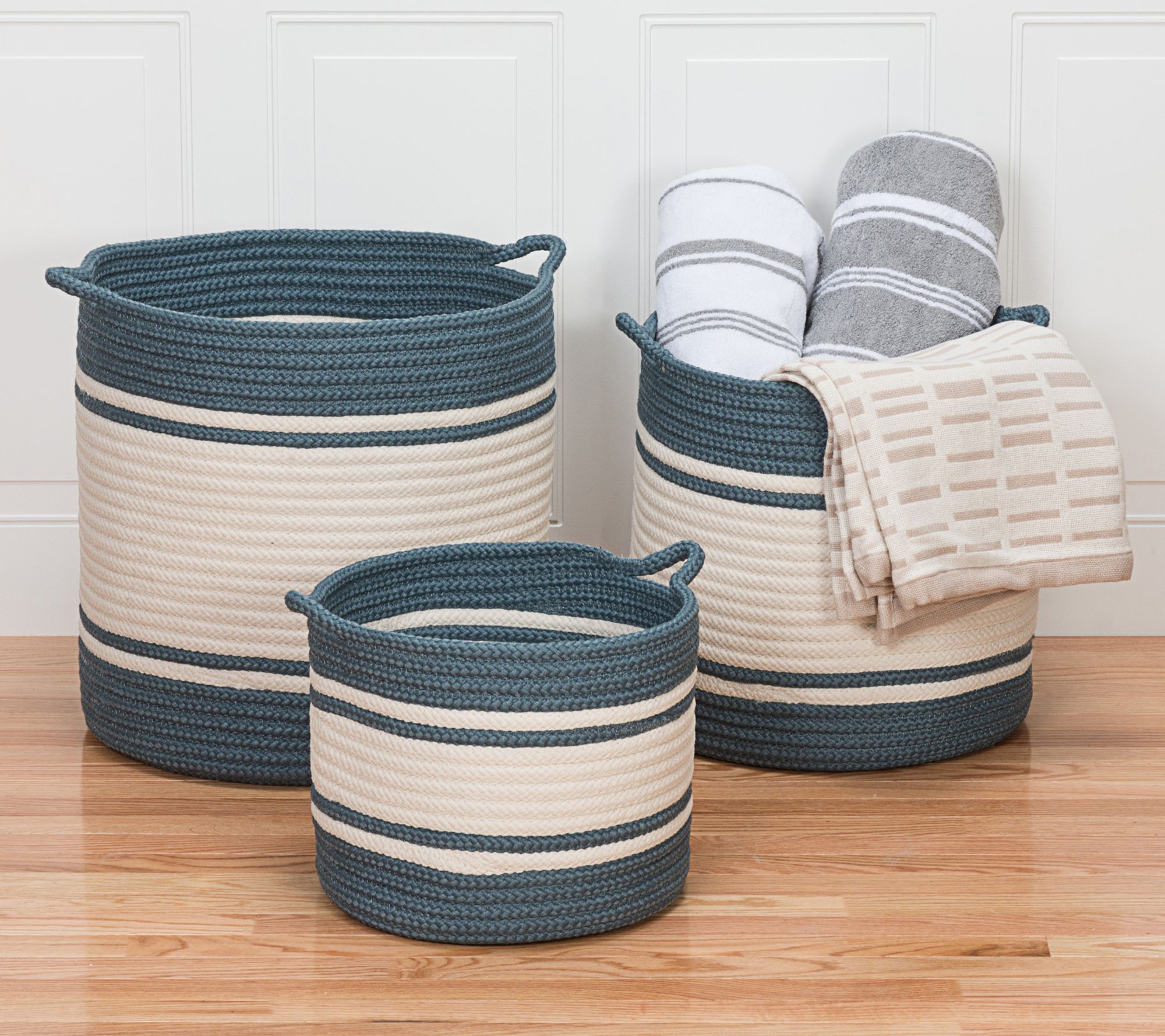 Keep your space tidy with this convenient woven basket that provides the perfect spot to store everything from toys to towels. Not only does it ensure you stay organized, it features convenient handles to easily tote it around. From Colonial Mills.