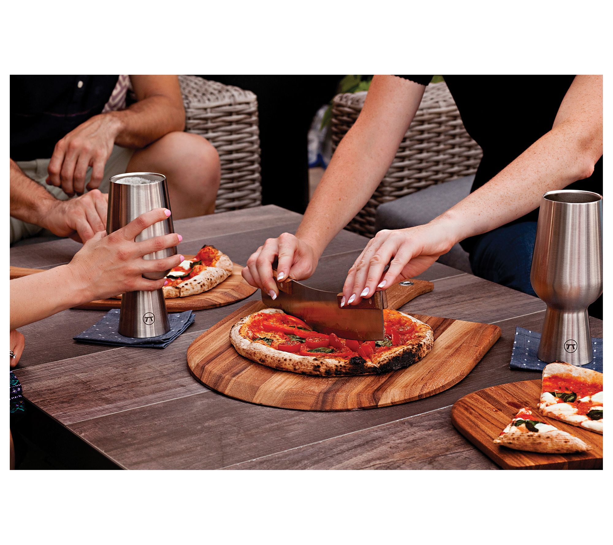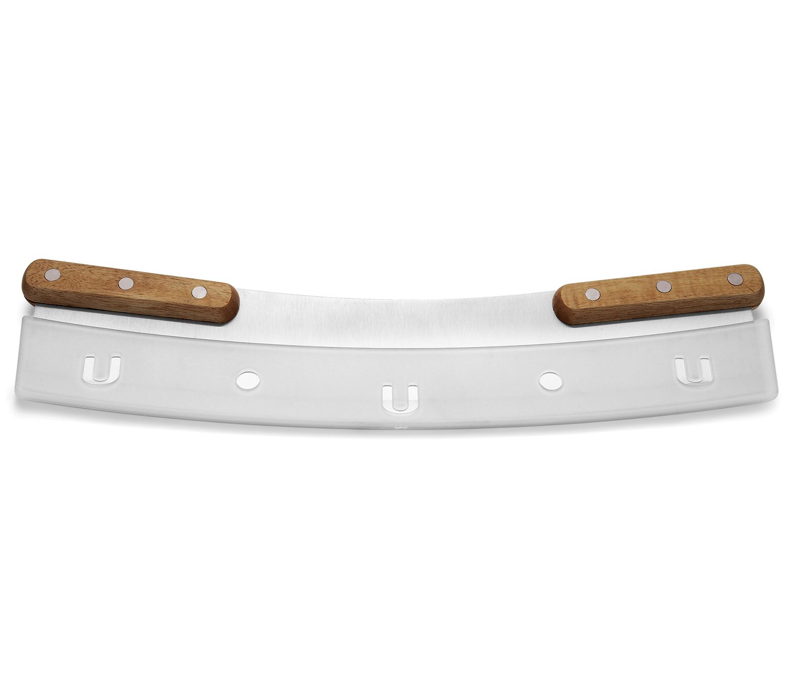With its elegant acacia wood handle and artisan craftsmanship, the Outset acacia pizza cutter is perfect for slicing your favorite pizza pie. The high carbon stainless steel blade measures 13" long and comes with a bonus clear polycarbonate edge protector. Enjoy restaurant-quality pizza cuts in the comfort of your home. From Outset.