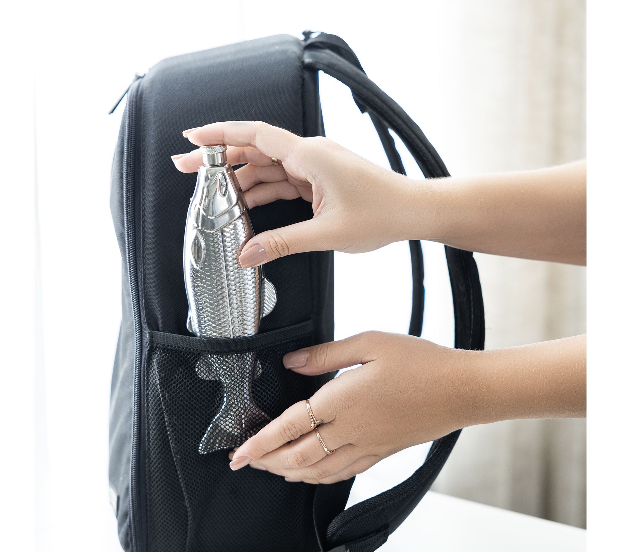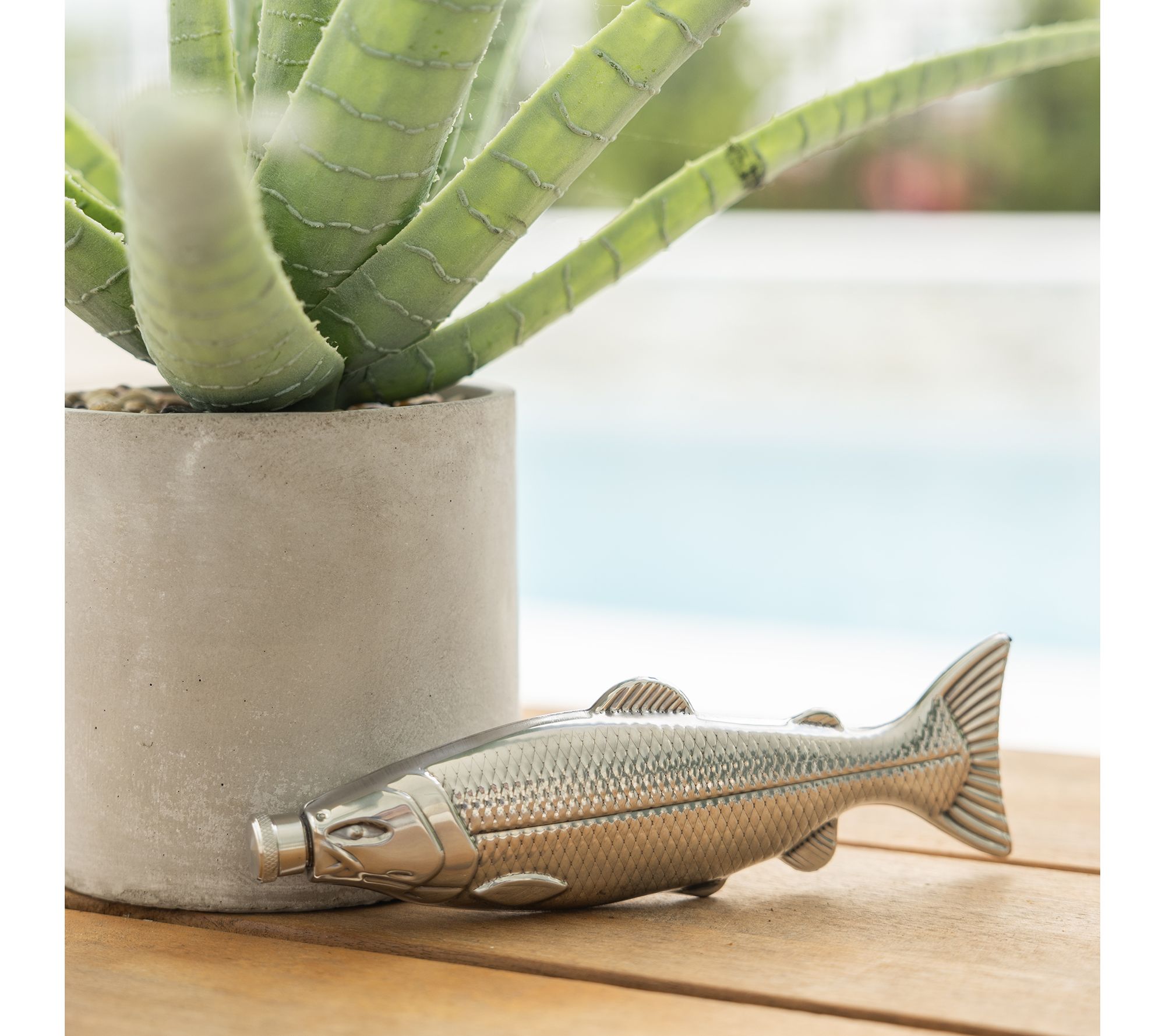 Take your favorite beverages with you on your next fishing trip using the Outset fish travel flask. This cleverly designed stainless steel flask fits easily in a bag or pocket, making it an ideal companion for outdoor enthusiasts. Its fun fish design adds a touch of whimsy to any adventure. From Outset.