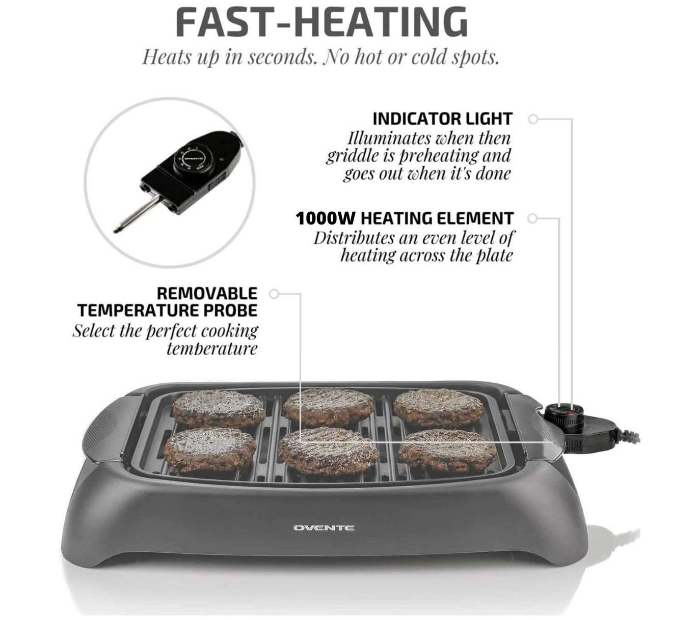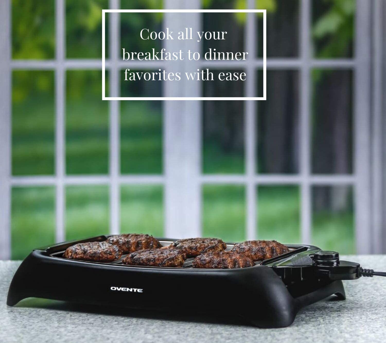 Get grilling wherever you are, even on the road, with this electric grill perfect for indoors. From Ovente.