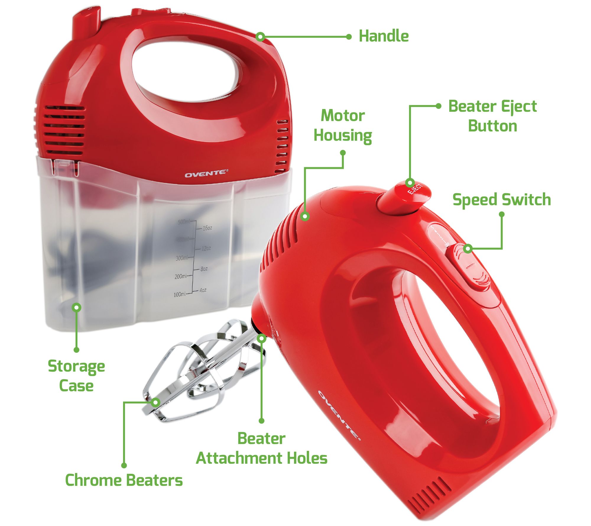• Includes electric mixer, two beaters, and snap-on storage case