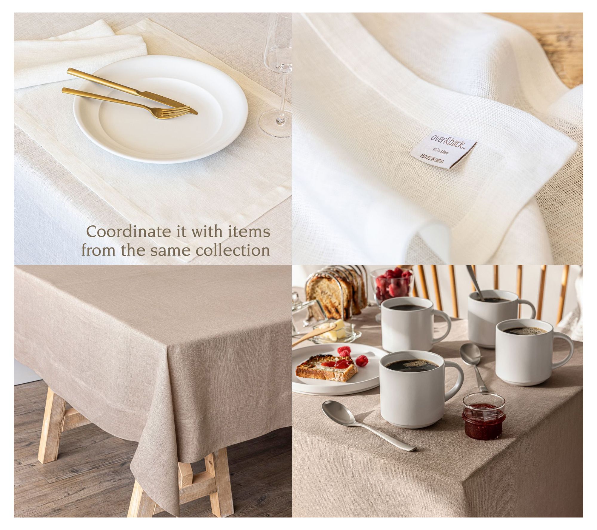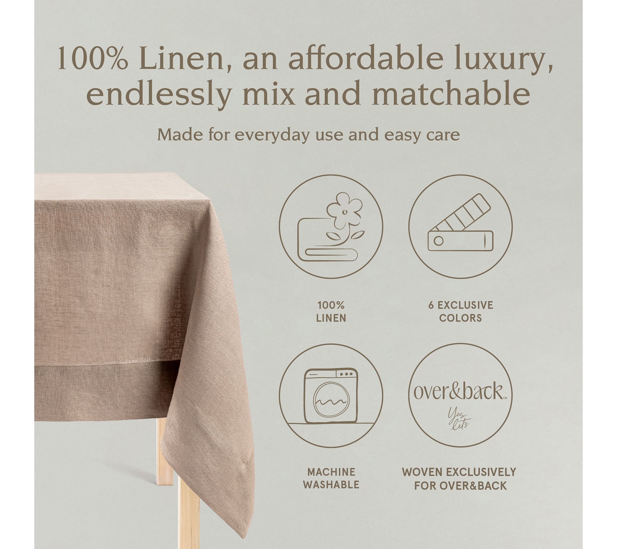 over&back 100%-Linen Woven Tablecloth - MachineWashable