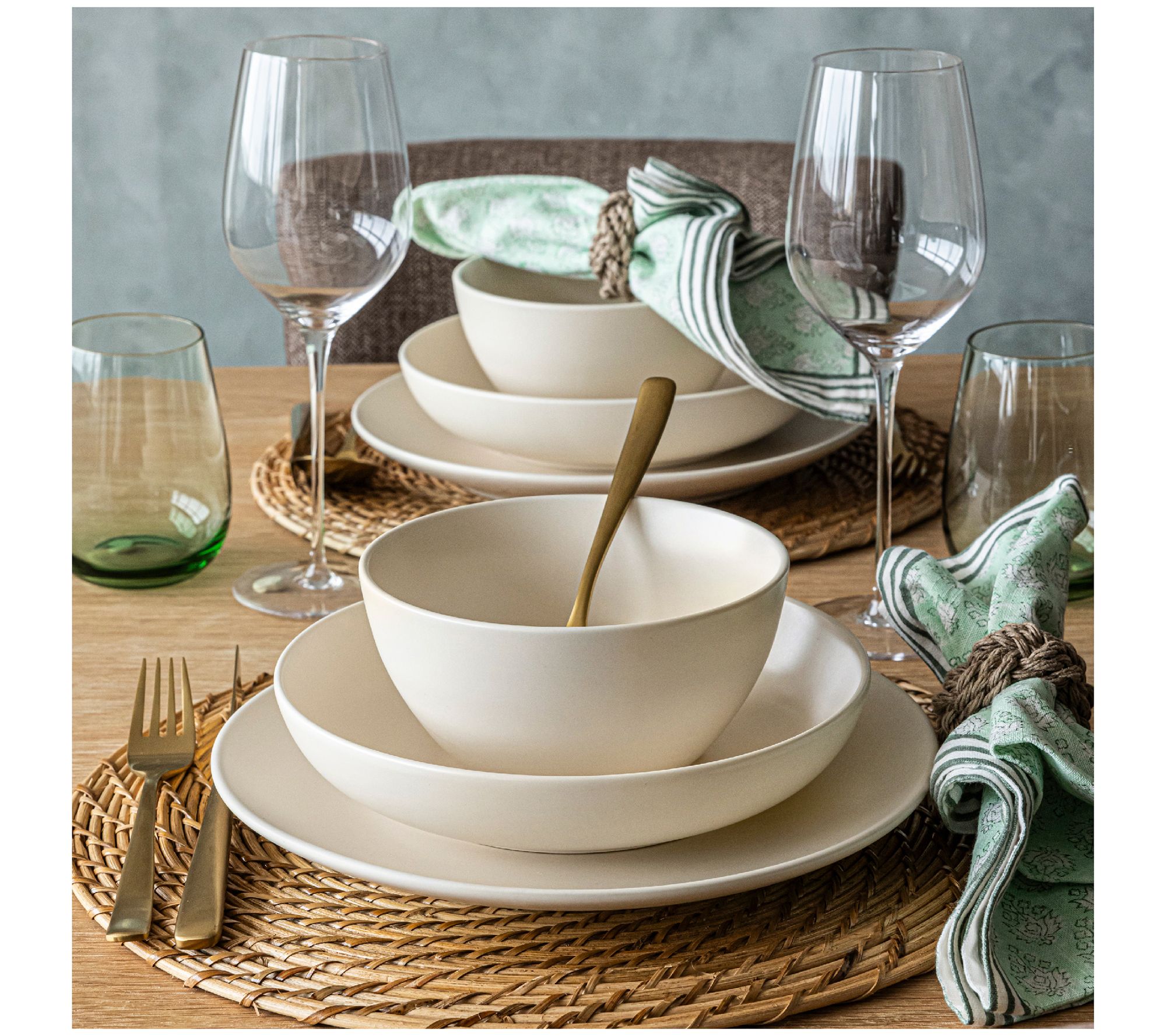 over&back Coupe 12-Piece Semi-Matte Stoneware Dinnerware Set